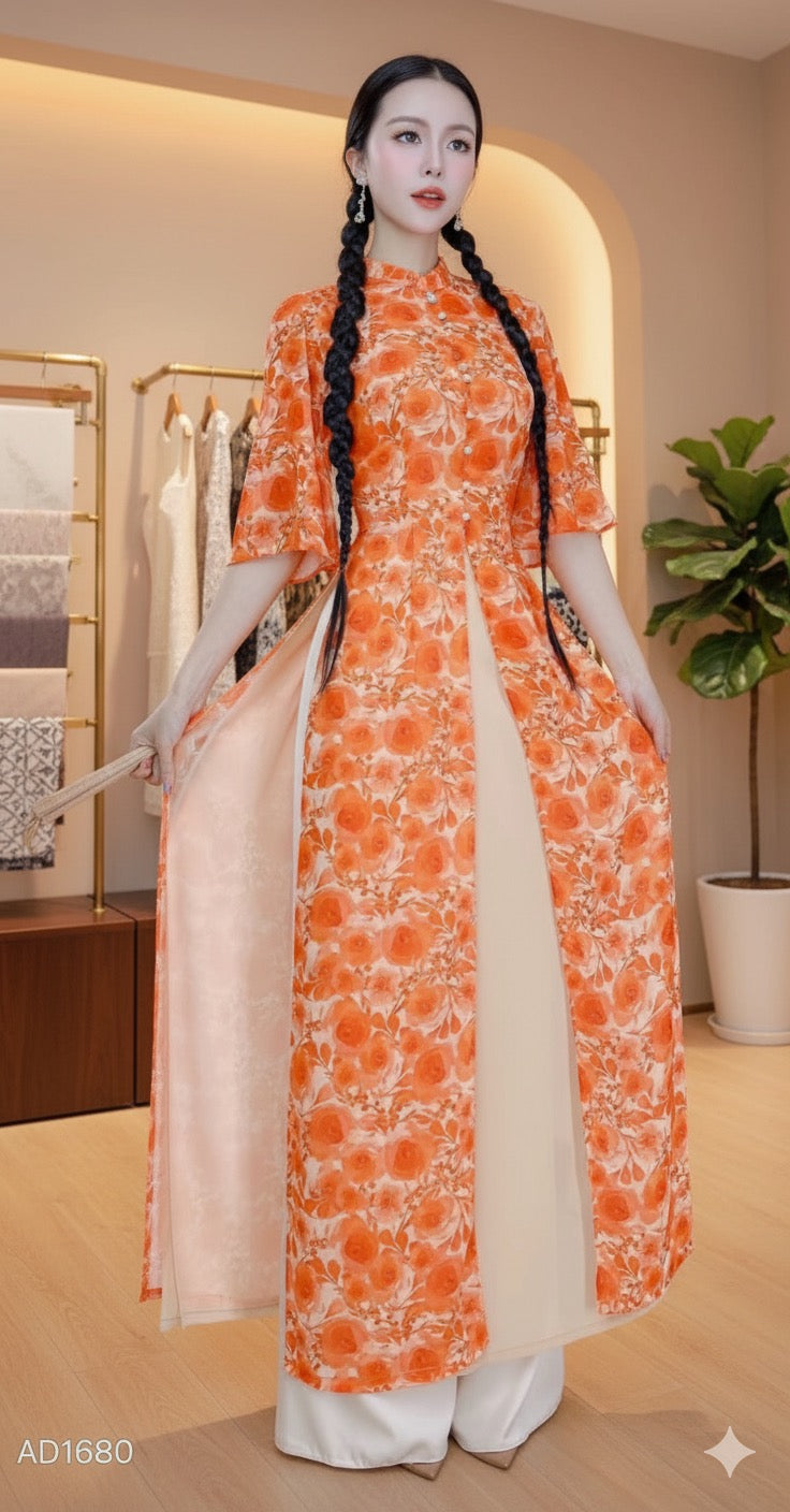 AD1680 Áo only - Áo dài tứ thân hoa đá 3 tà