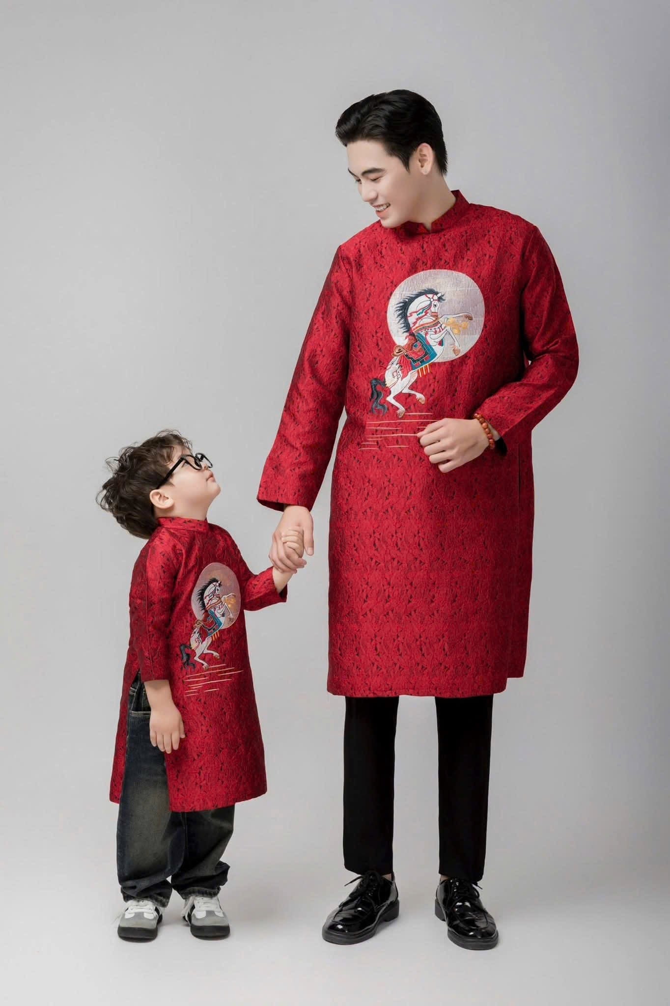 B118 1761 Áo only - Áo dài bố gấm thêu ngựa màu đỏ
