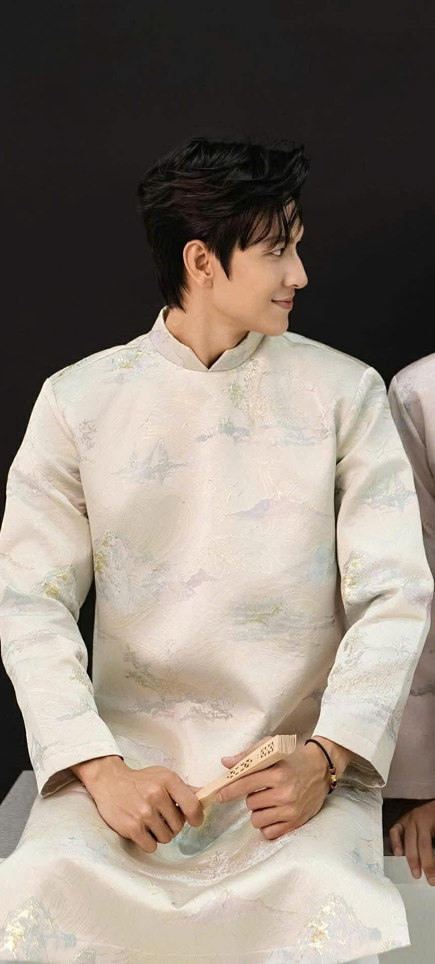 B120 2091 Áo only - Áo dài nam gấm trắng