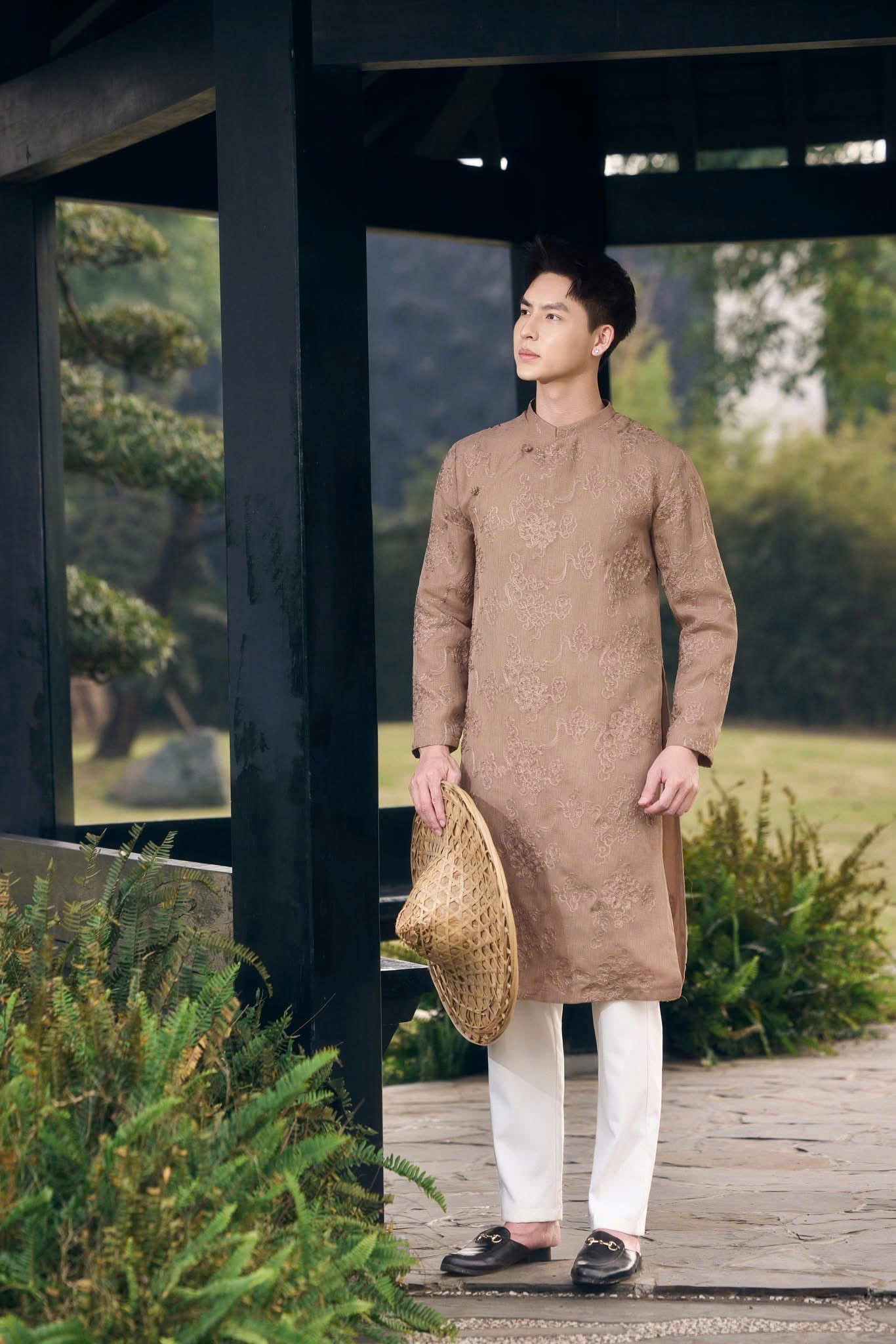B126 2185 Áo only - Áo dài nam nâu