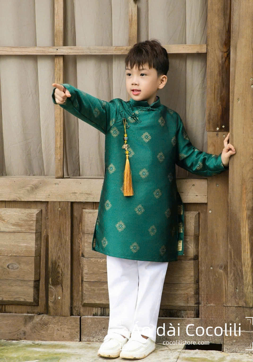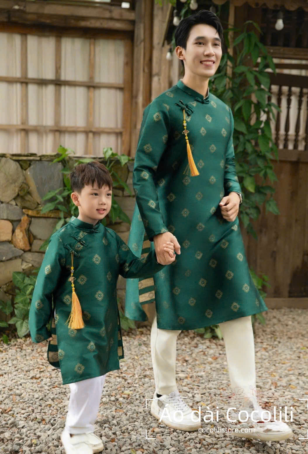 B142 BT61 Bố + bé trai - Áo dài bố và bé trai Tuyết Mai xanh lá