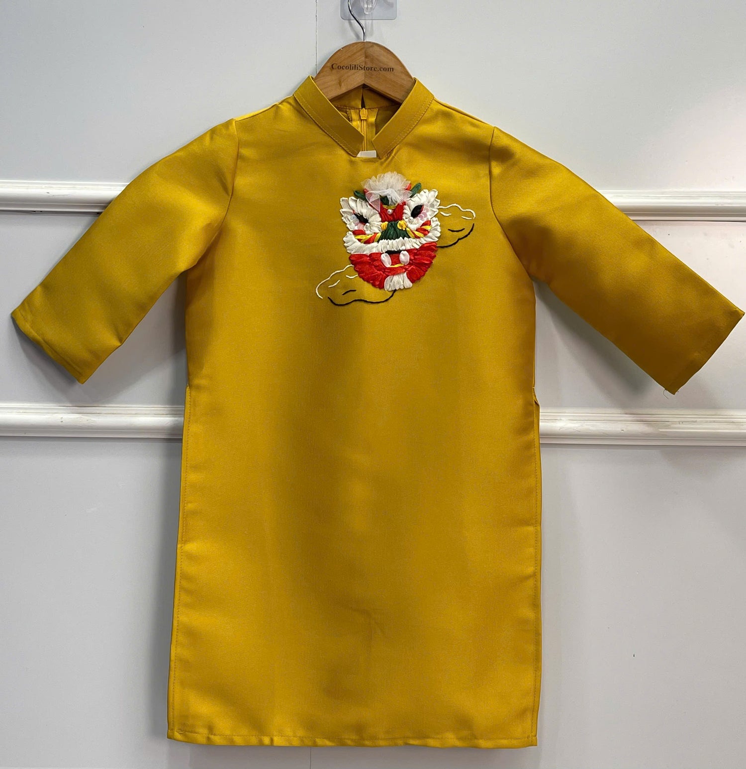 BT56 Áo only - Áo dài bé trai vải tafta màu vàng