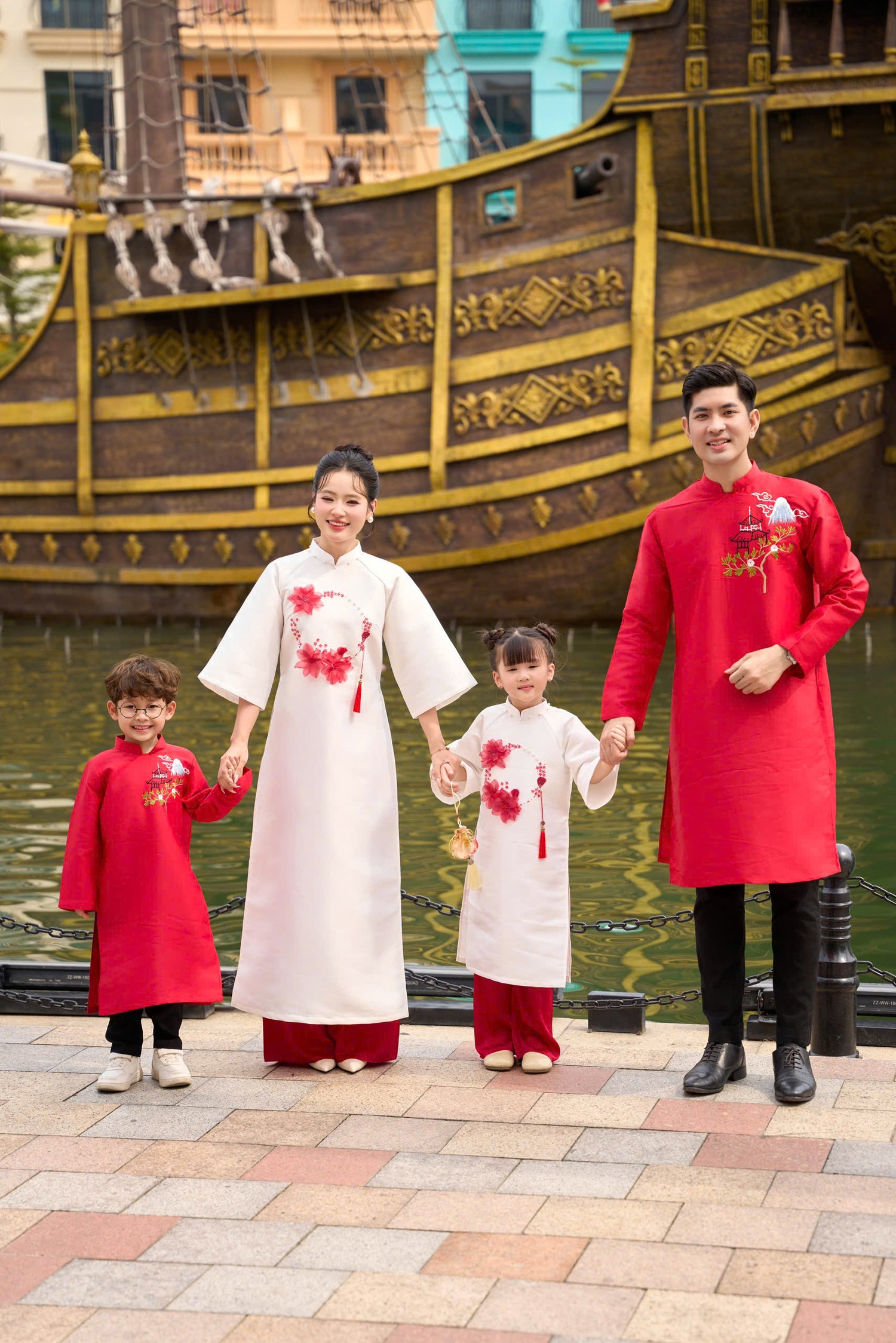 BT58 - Áo dài gia đình bé trai Sum Vầy màu đỏ