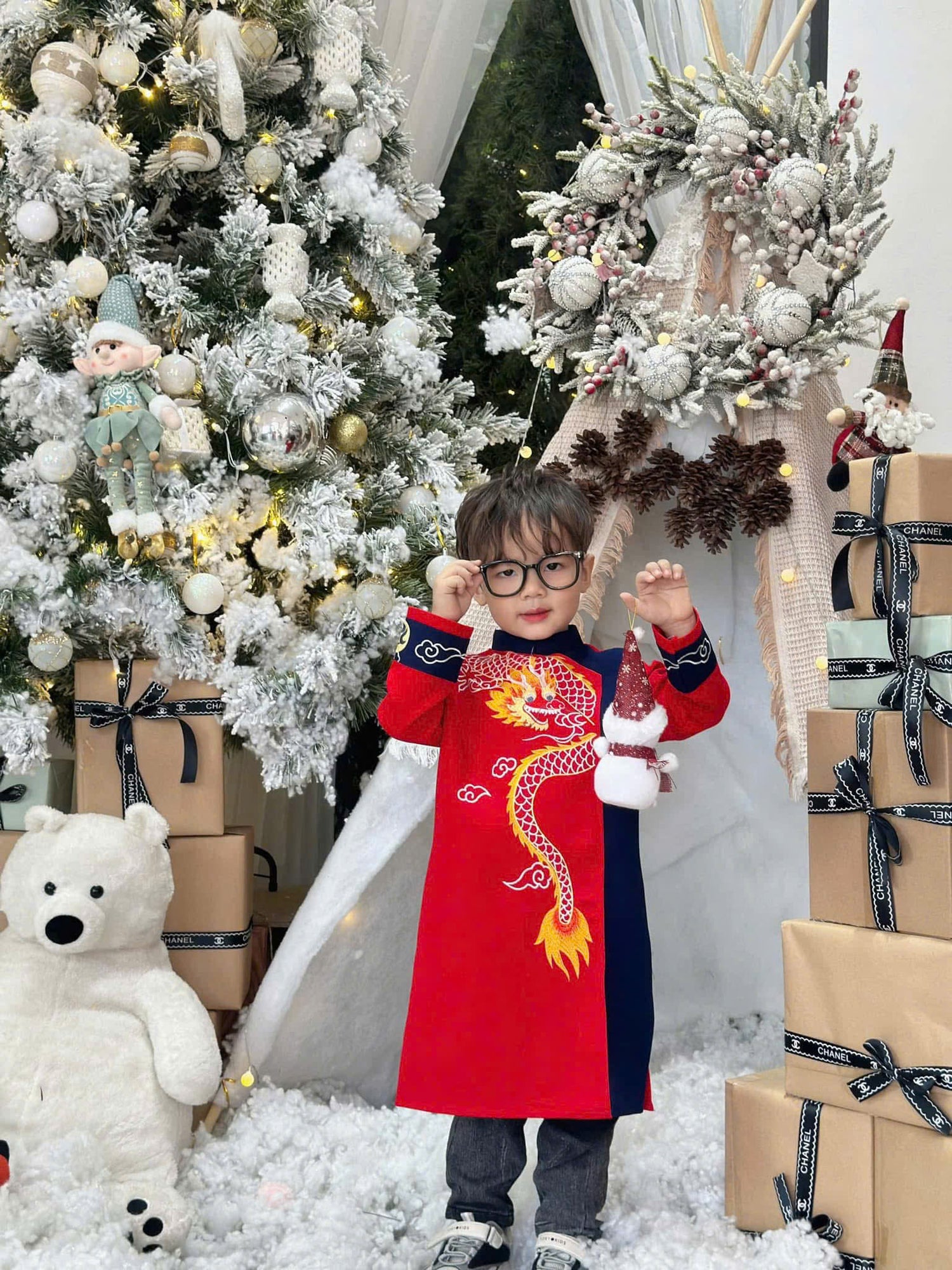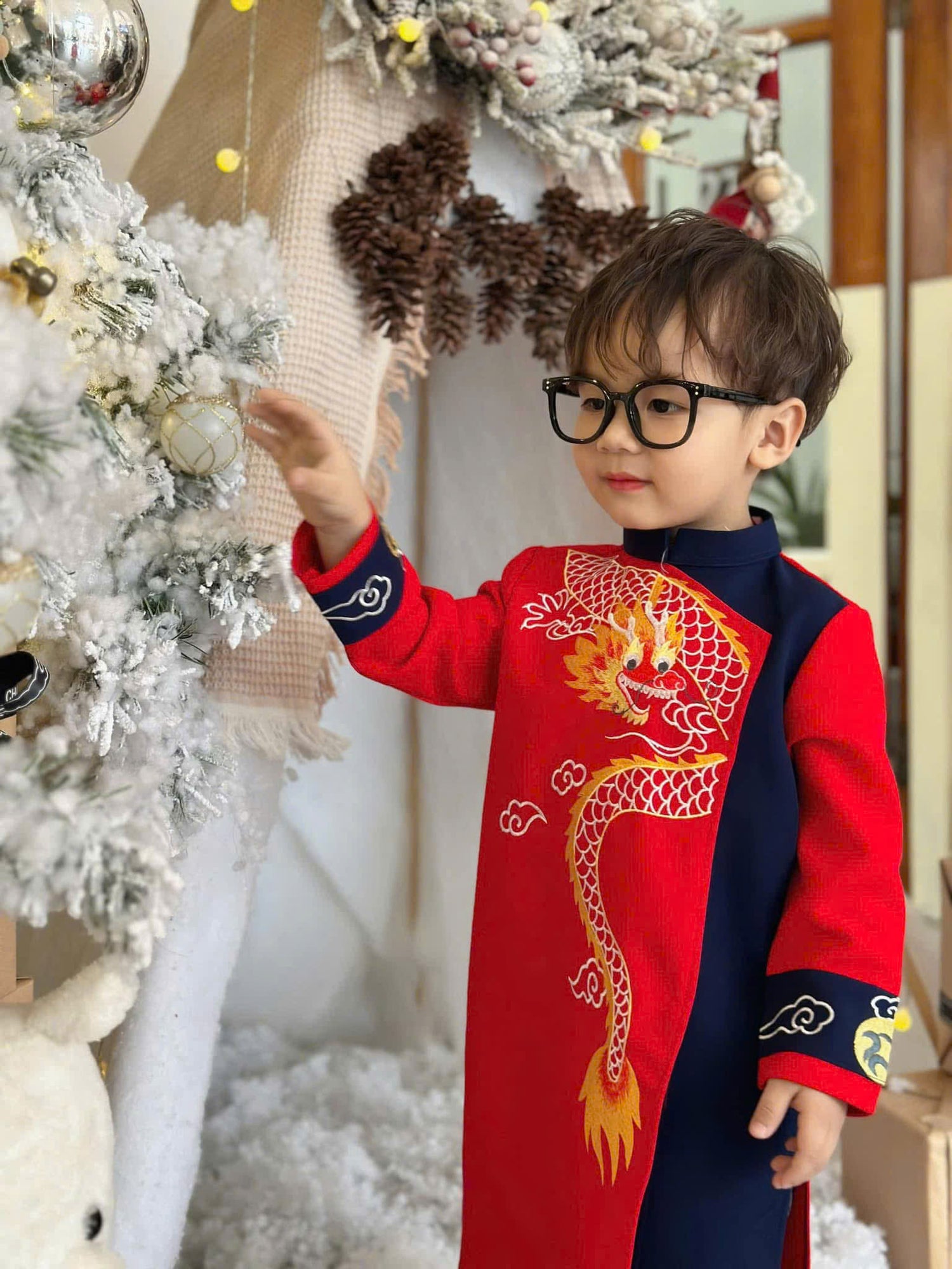 BT68 1991 Áo only - Áo dài bé trai thêu rồng màu đỏ