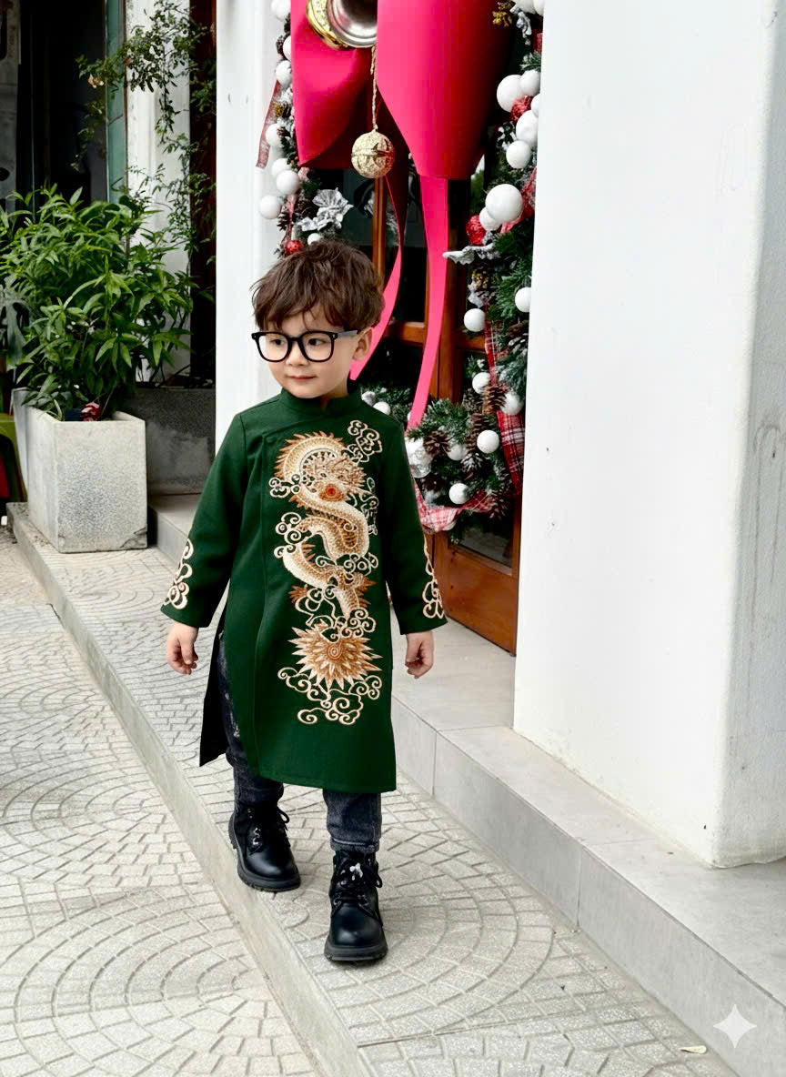 BT69 1992 Áo only - Áo dài bé trai thêu rồng màu xanh lá