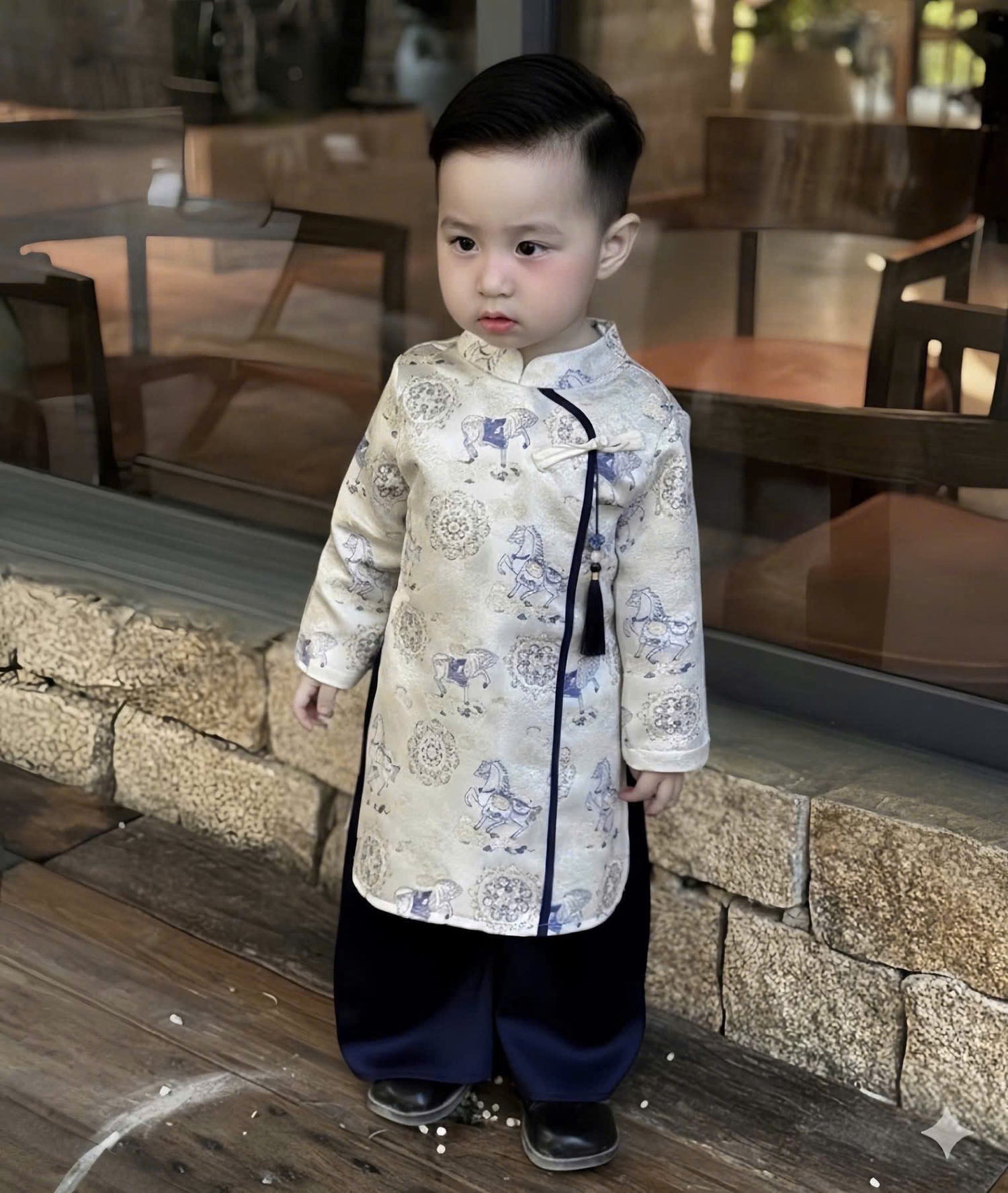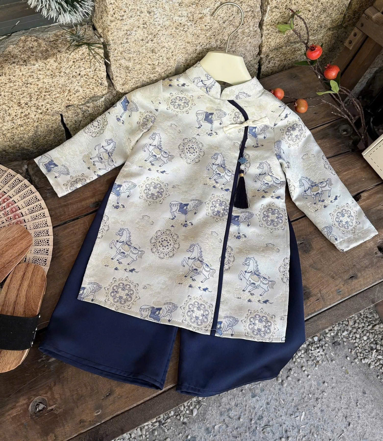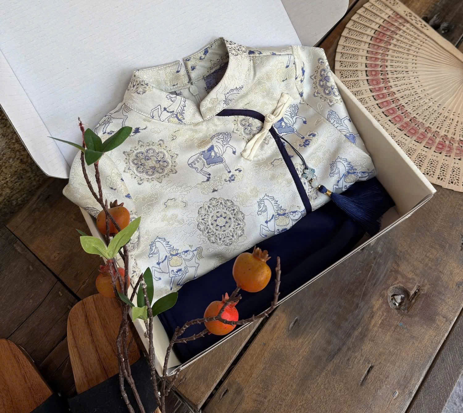 BT70 1993 Áo + quần - Áo dài bé trai gấm màu trắng