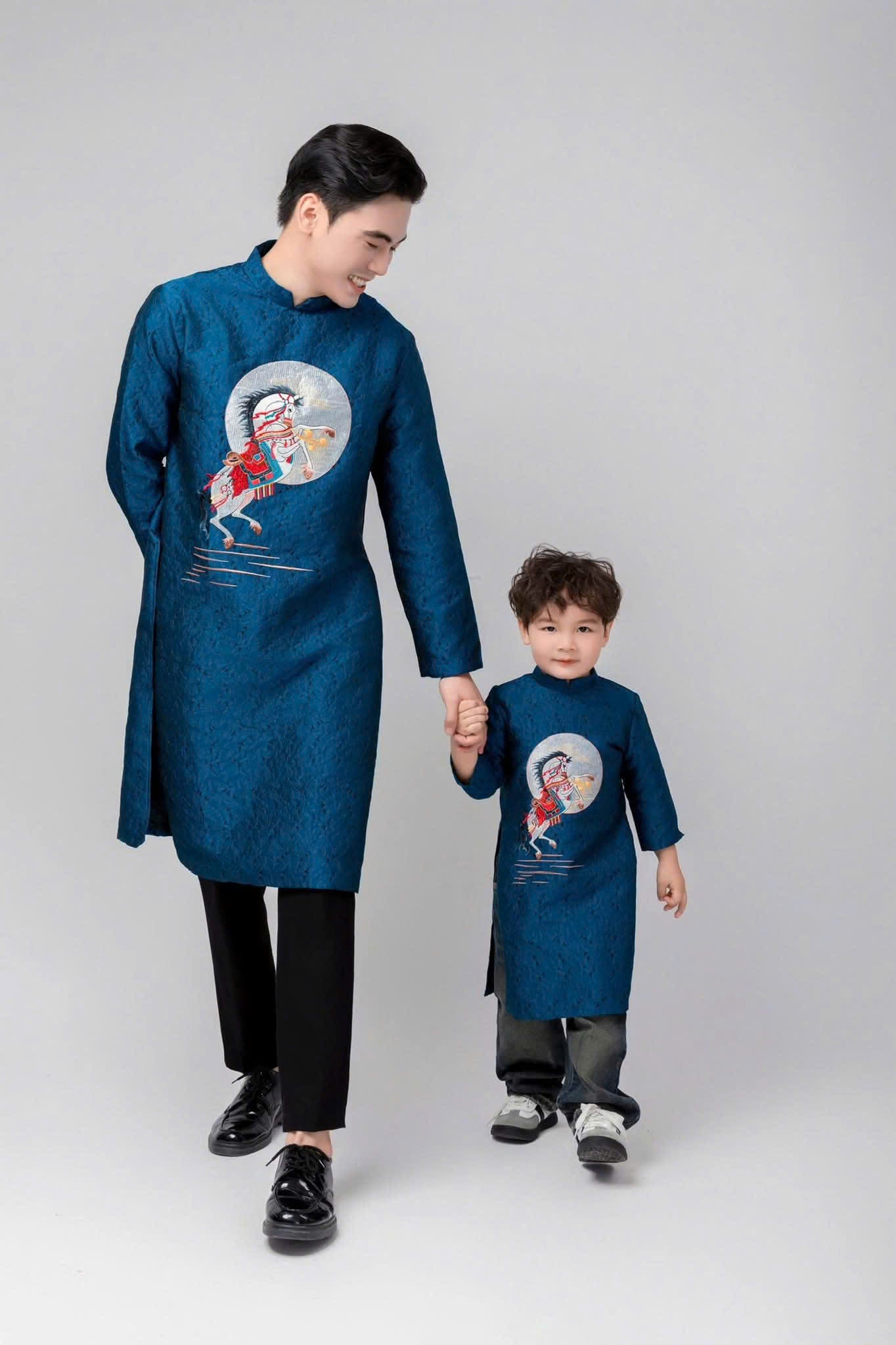 BT72 2120 Áo only - Áo dài bé trai thêu ngựa màu xanh dương