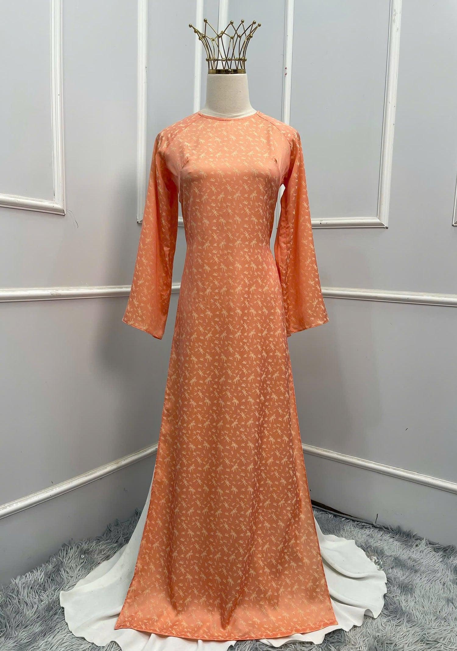 H120- Áo dài Lụa chuồn chuồn màu cam -Dáng suông