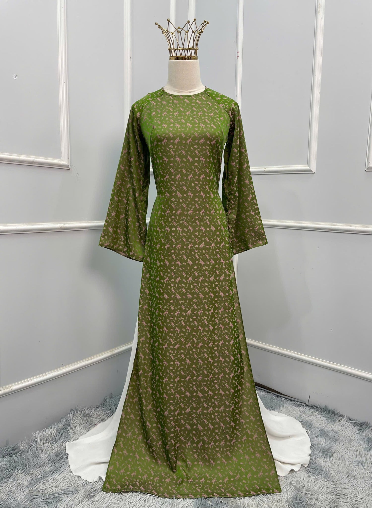 H121- Áo dài Lụa chuồn chuồn màu xanh lá -Dáng suông