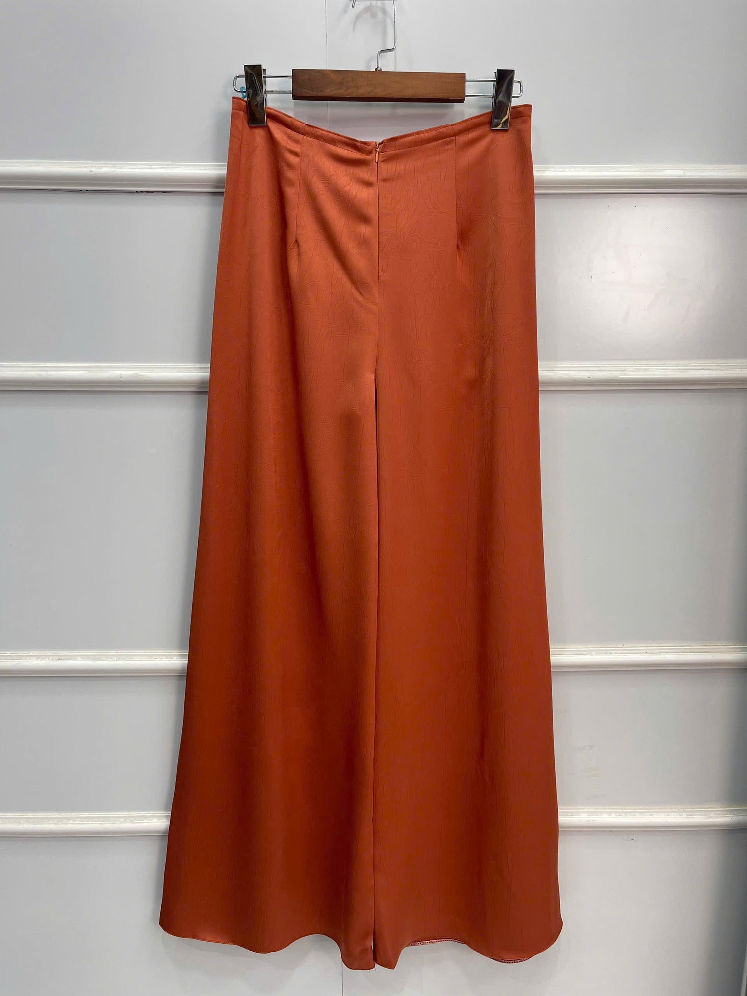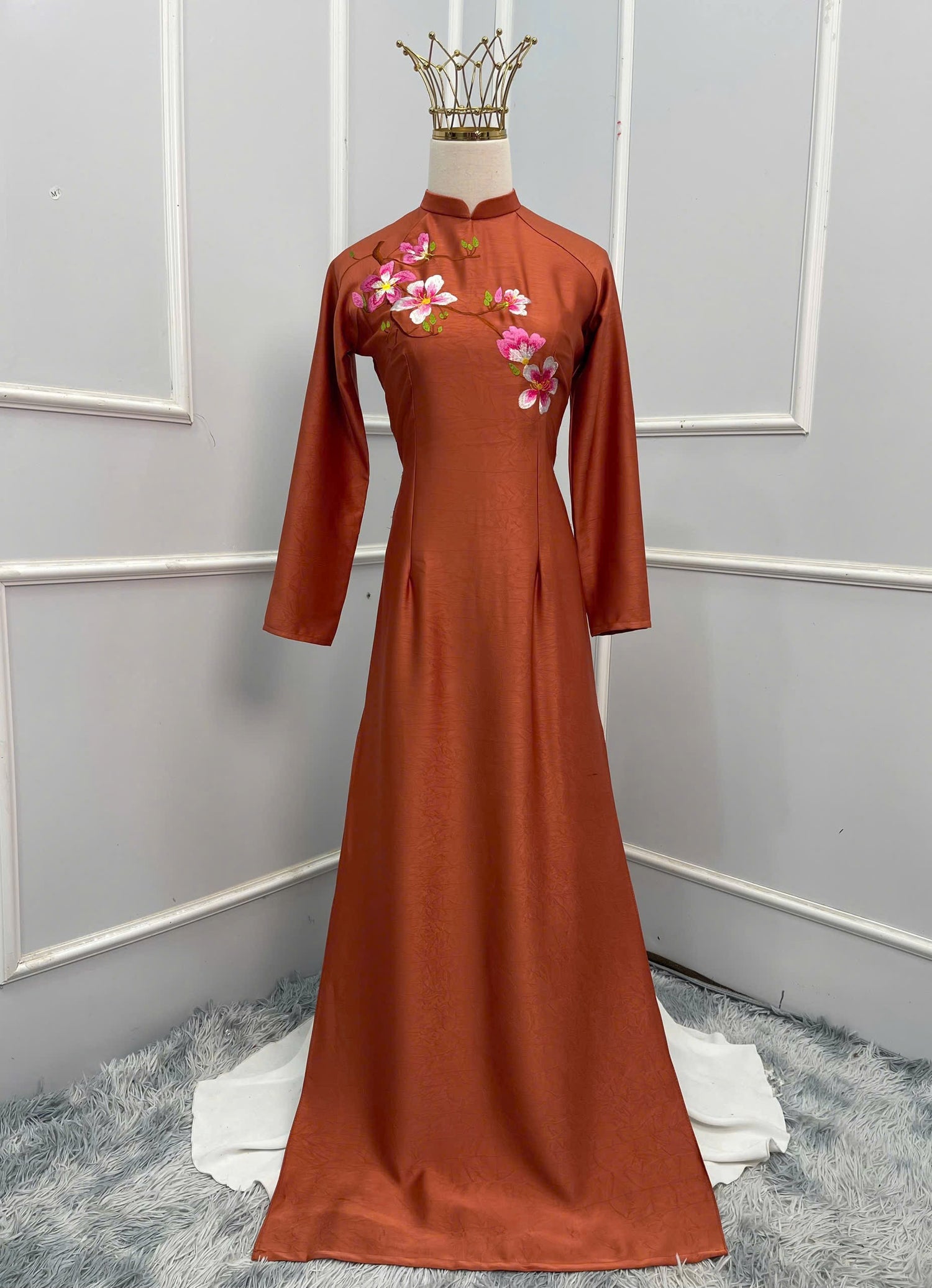 H123 - Áo dài Lụa Hà Lan thêu hoa màu nâu cam + quần cùng chất
