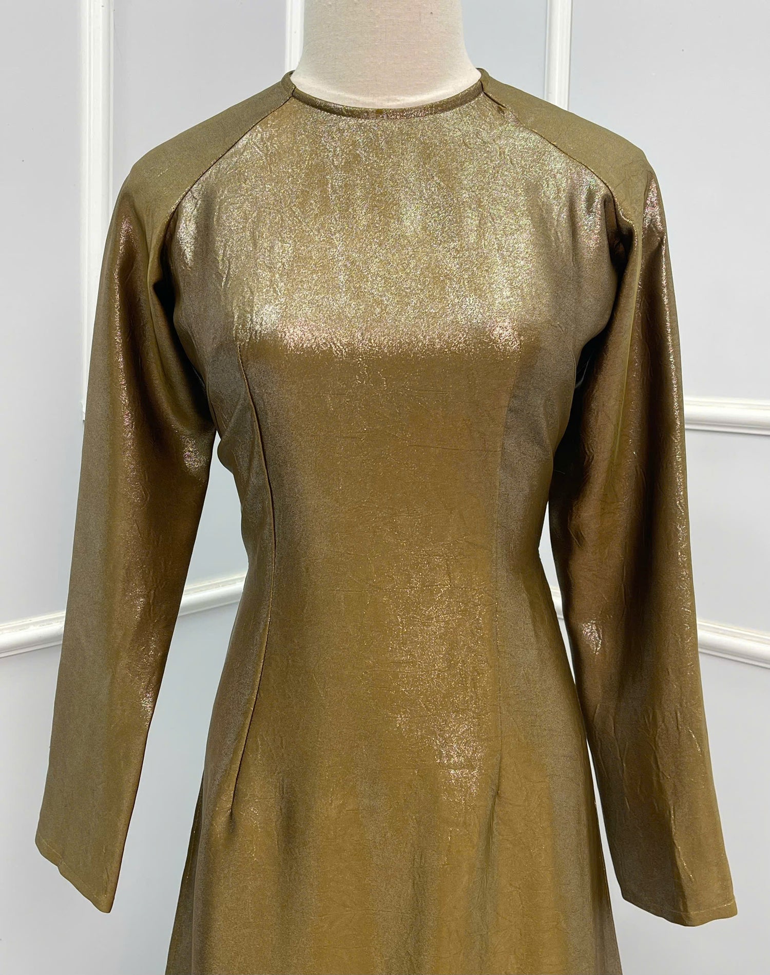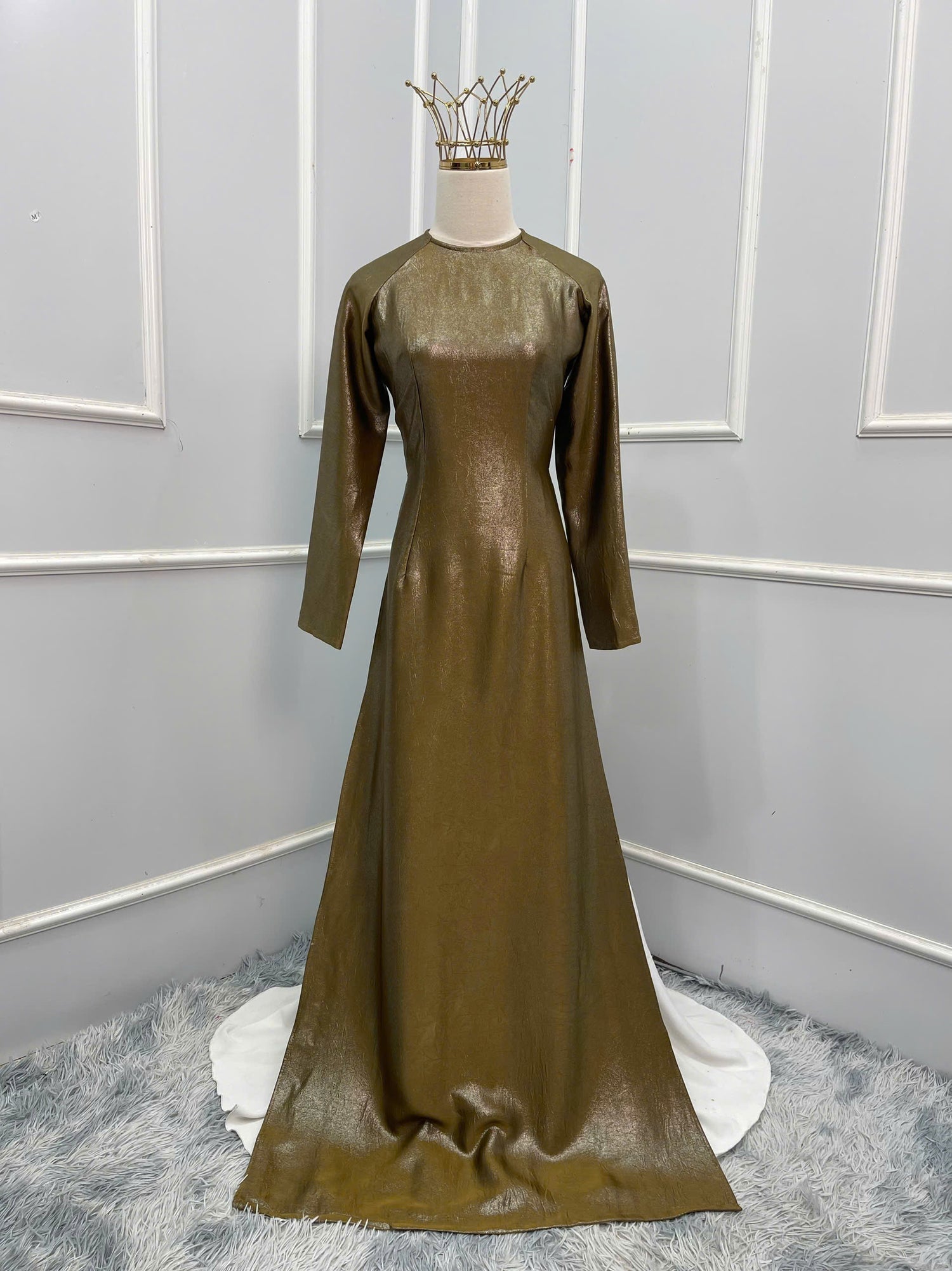 H125 Áo only - Áo dài lụa Hà lan màu oliu