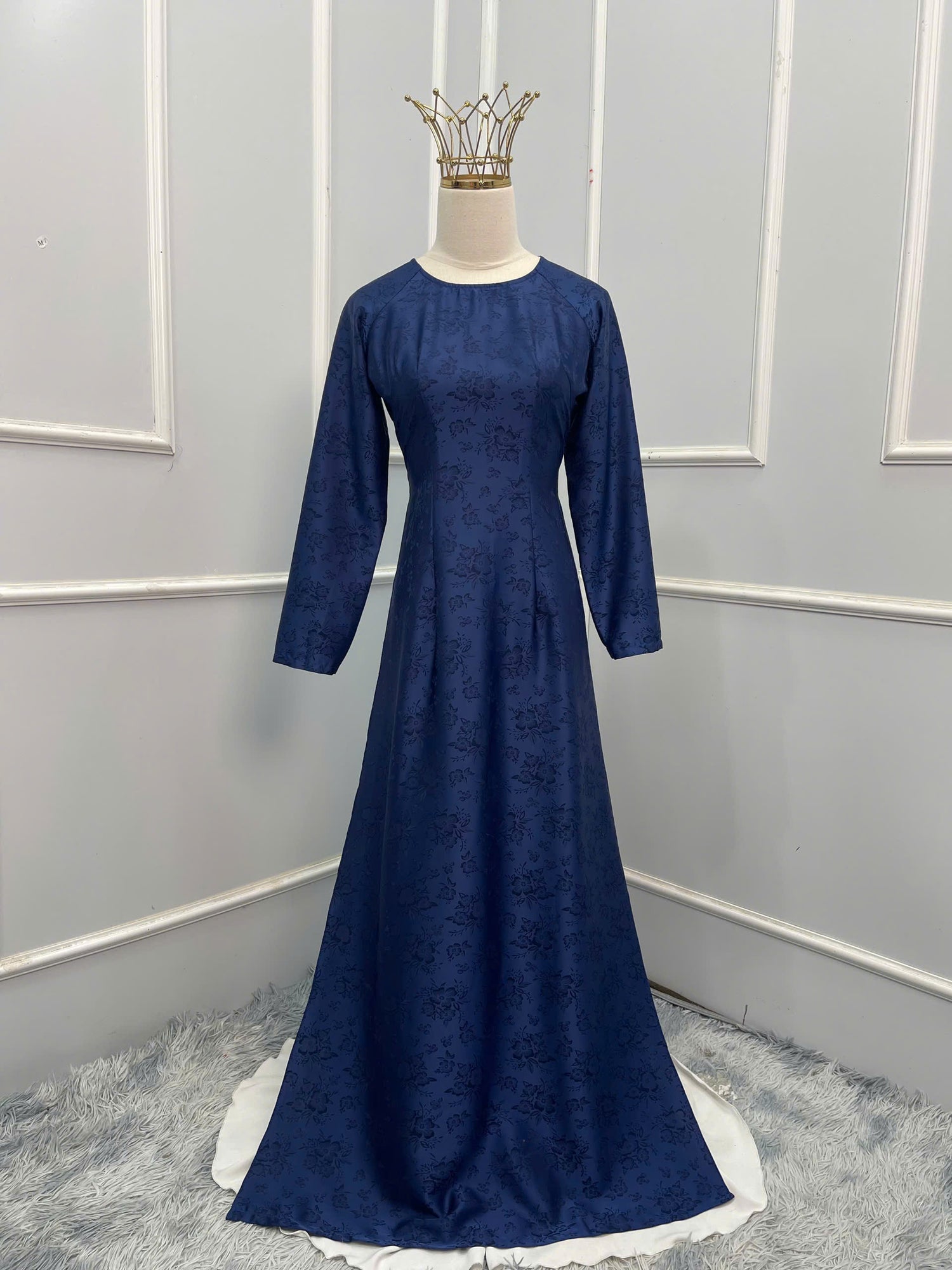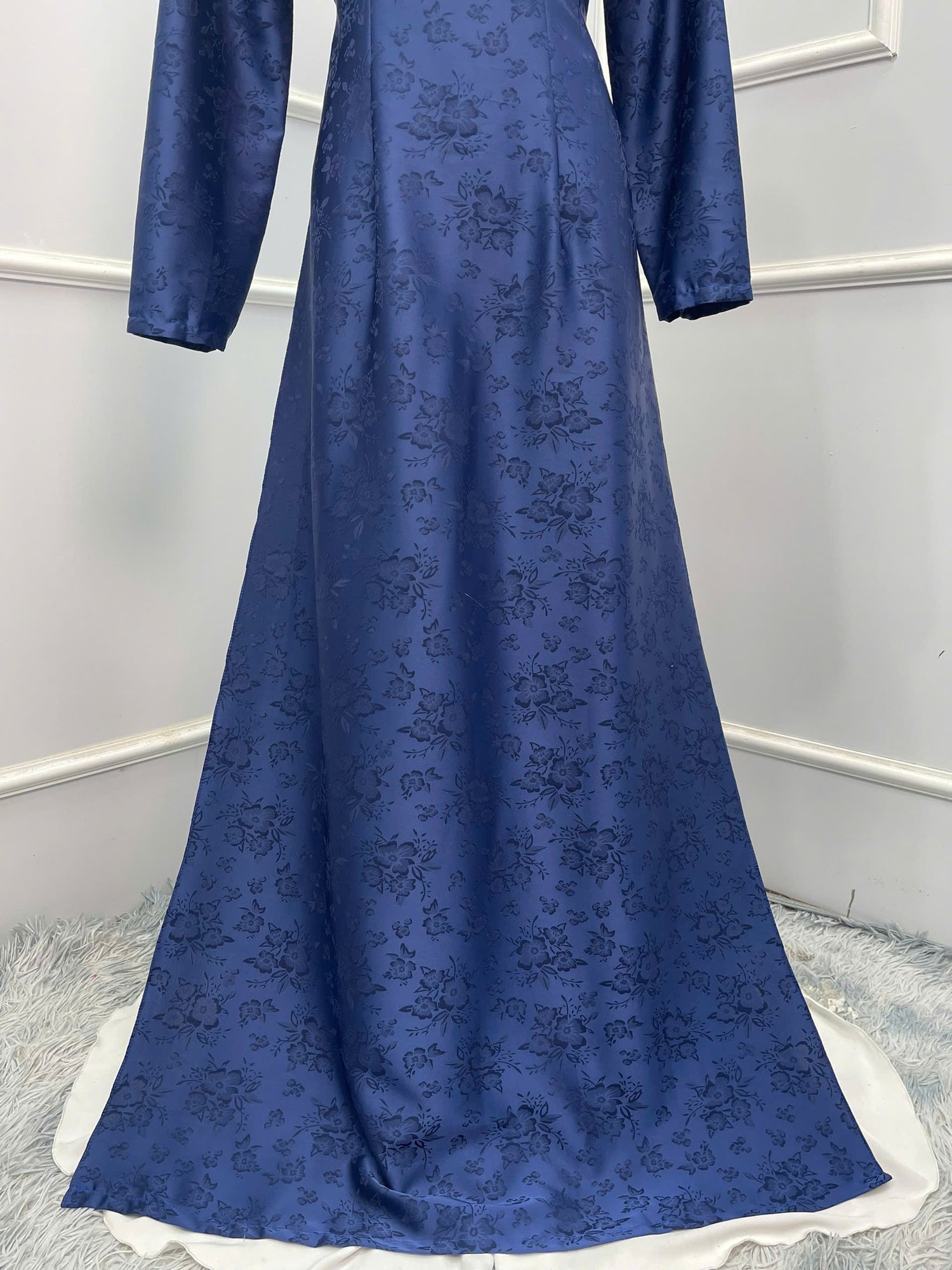 H126 Áo only - Áo dài màu xanh than hoạ tiết hoa