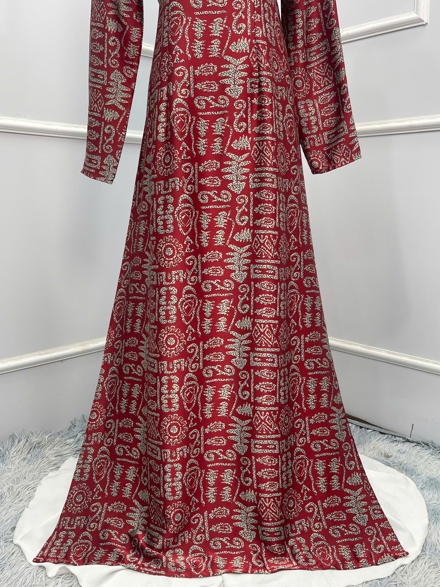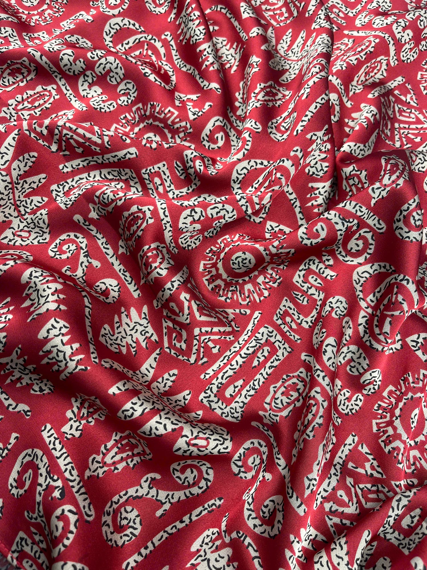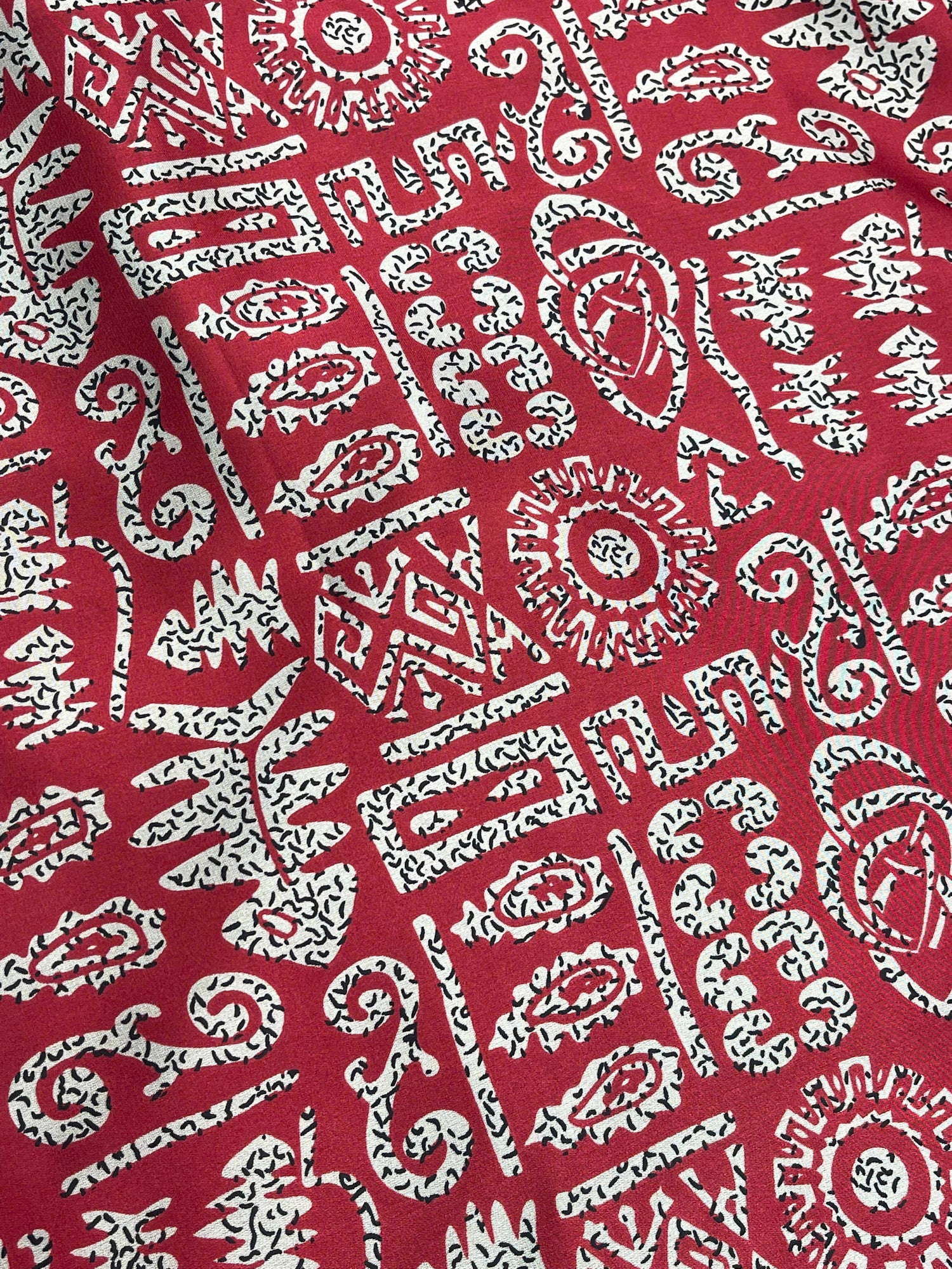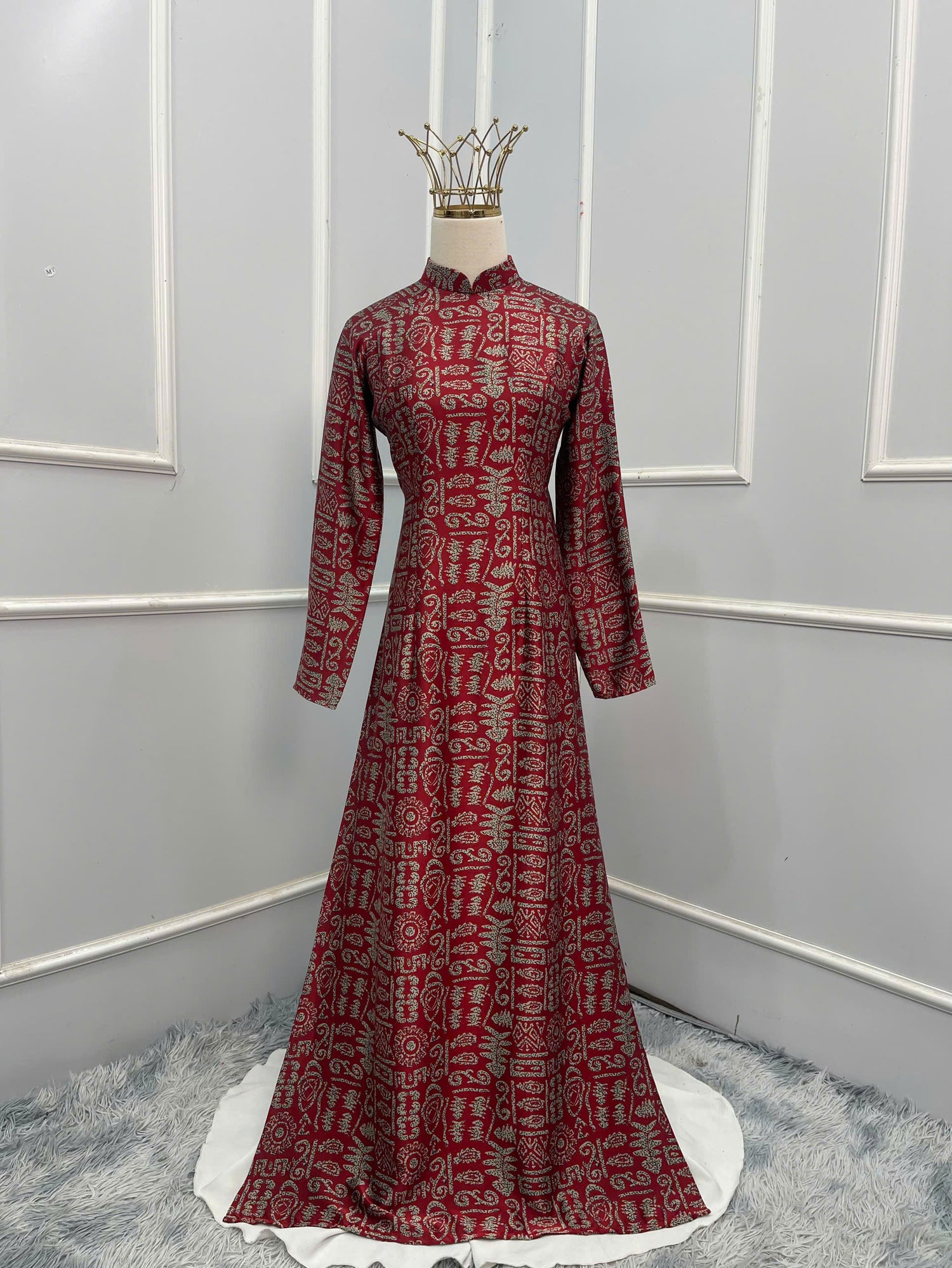 H142 Áo only - Áo dài đỏ họa tiết thư pháp