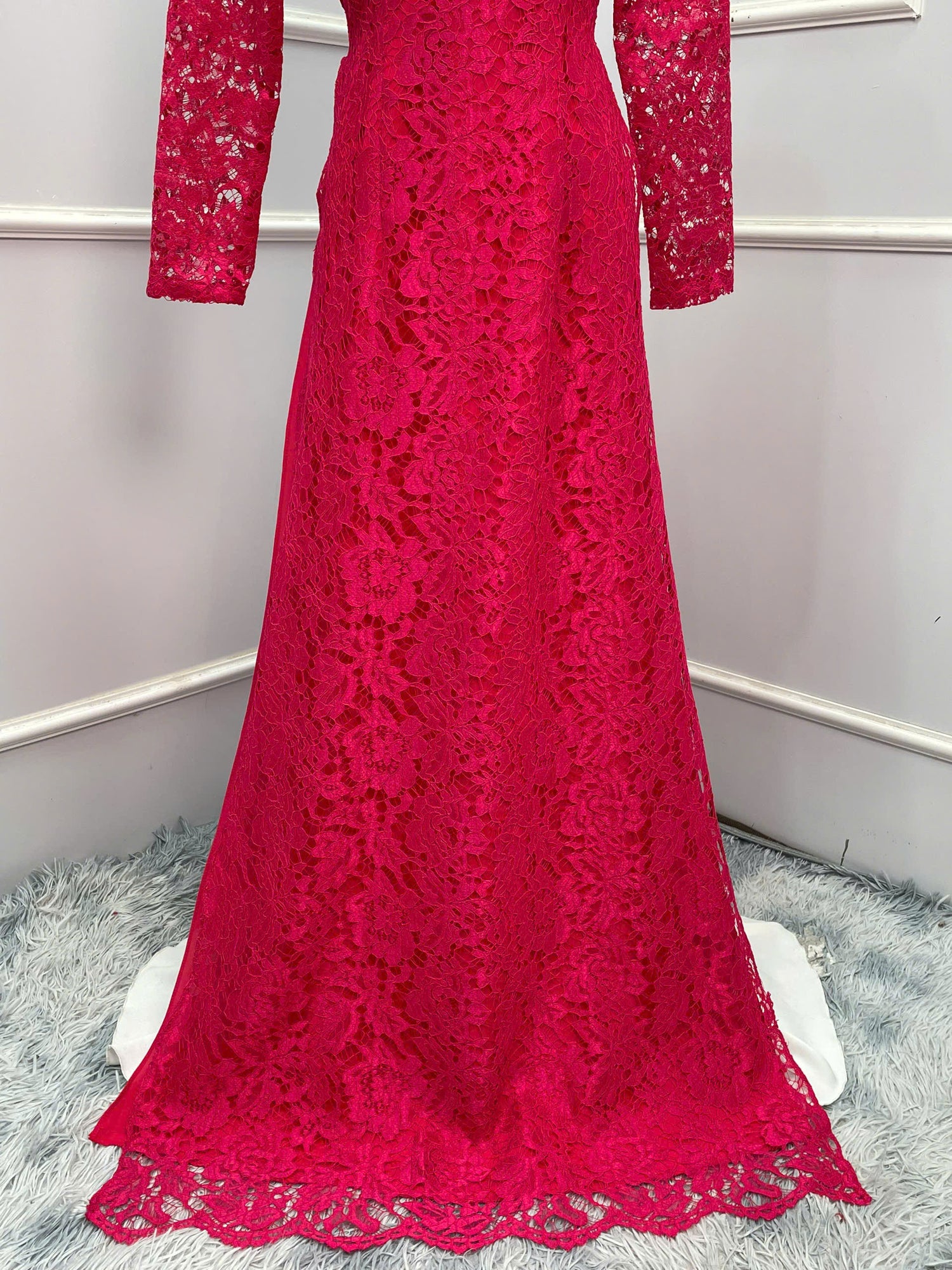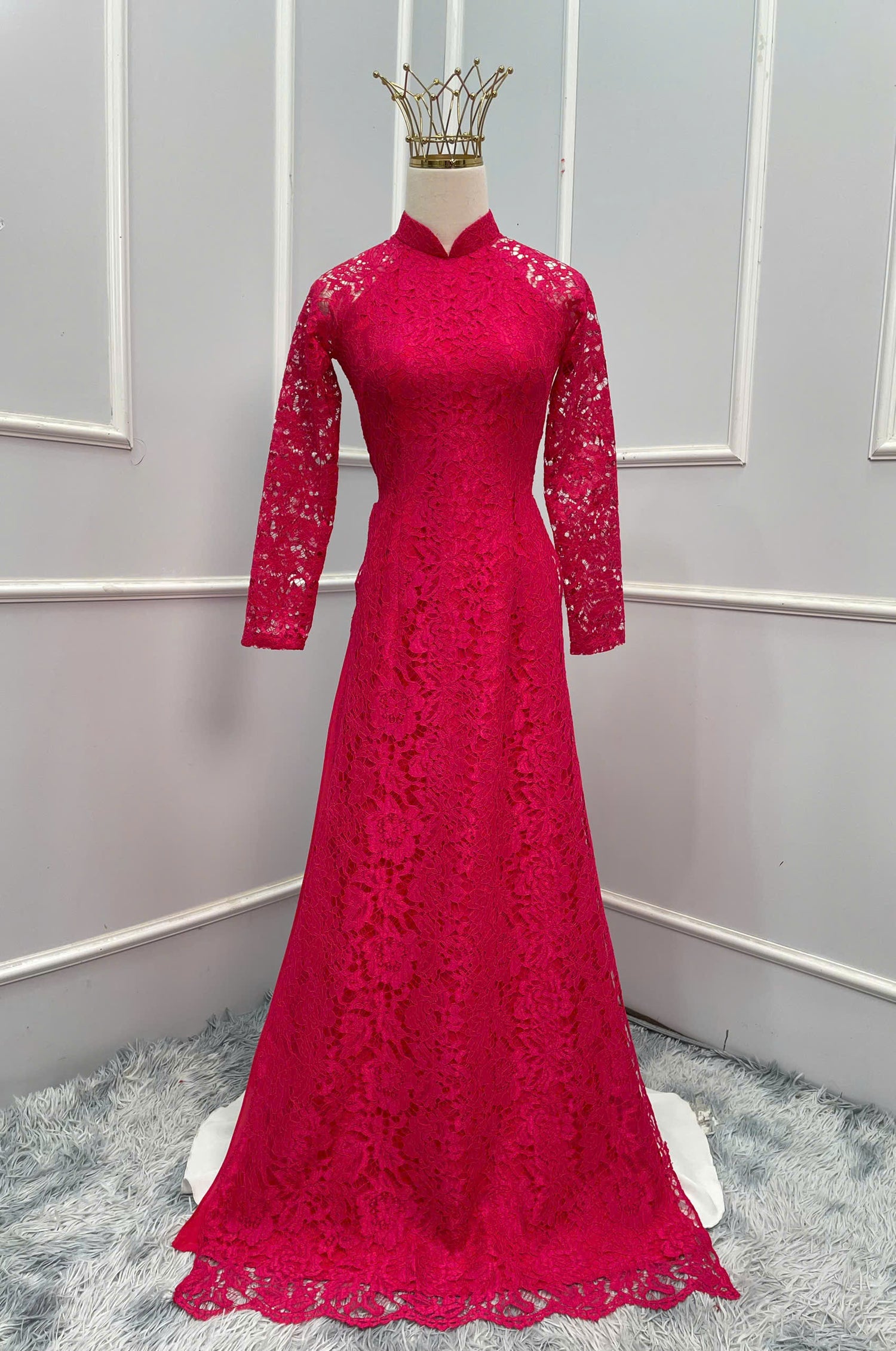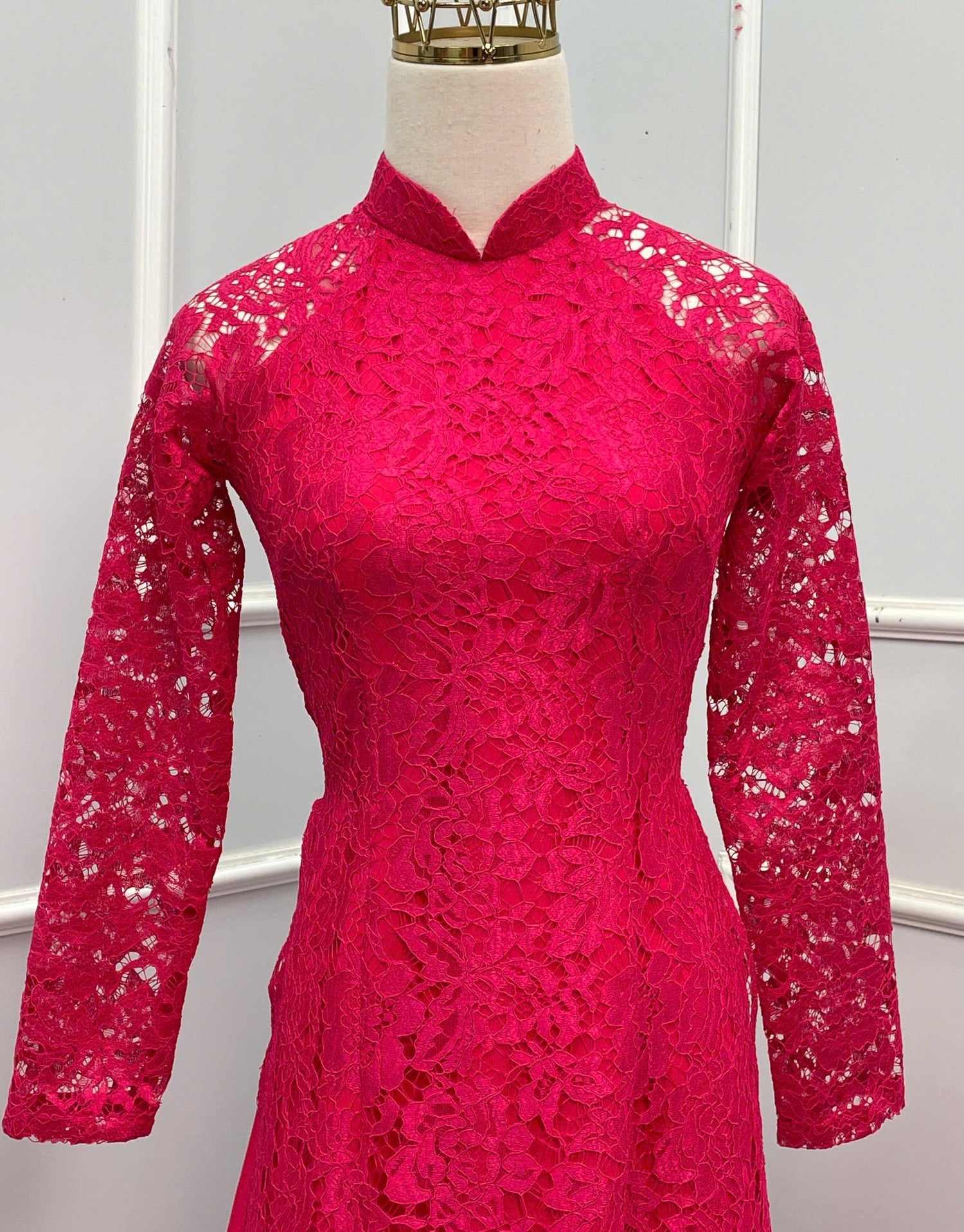 H155 Áo only - Áo dài ren 4 tà màu hồng sen