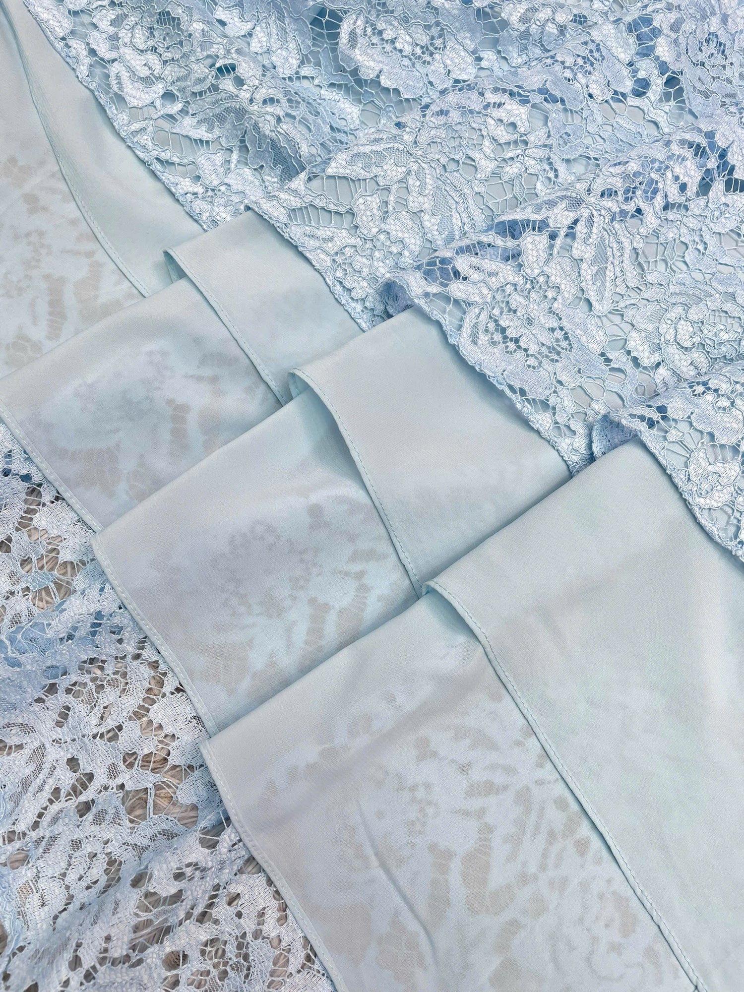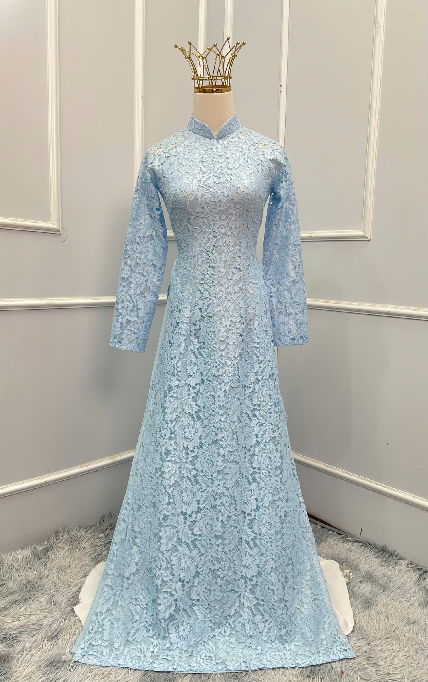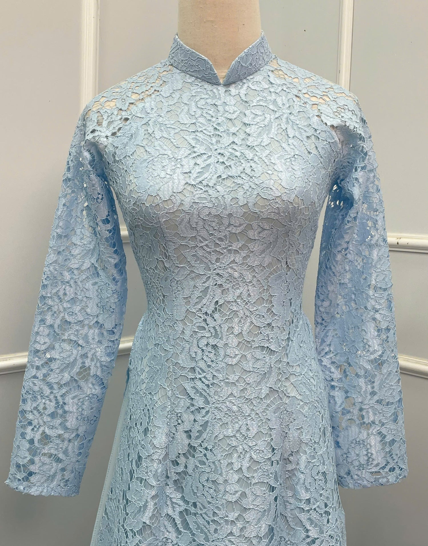 H157 Áo only - Áo dài ren 4 tà màu xanh da trời