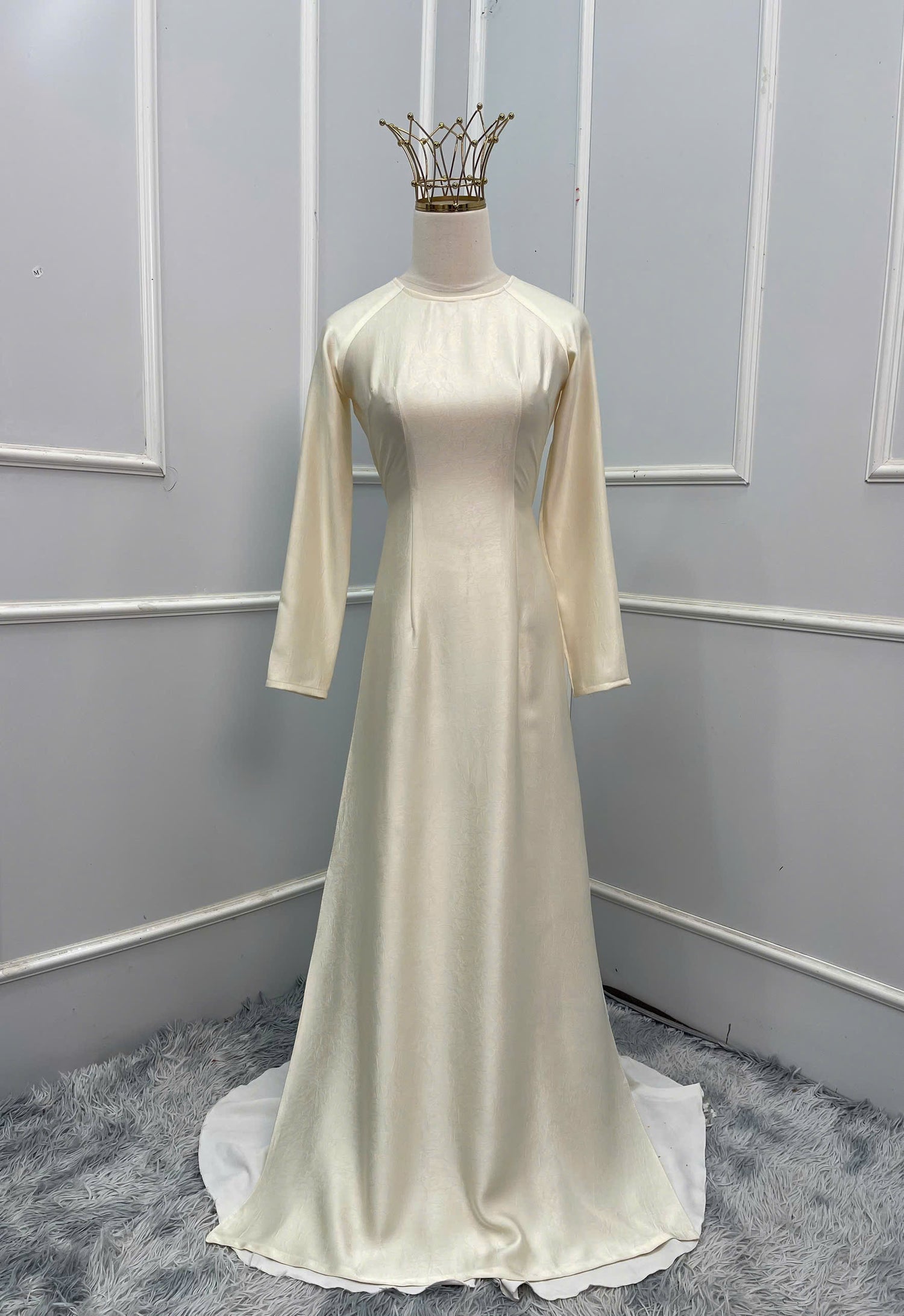 H164 Áo only - Áo dài lụa Hà Lan màu kem