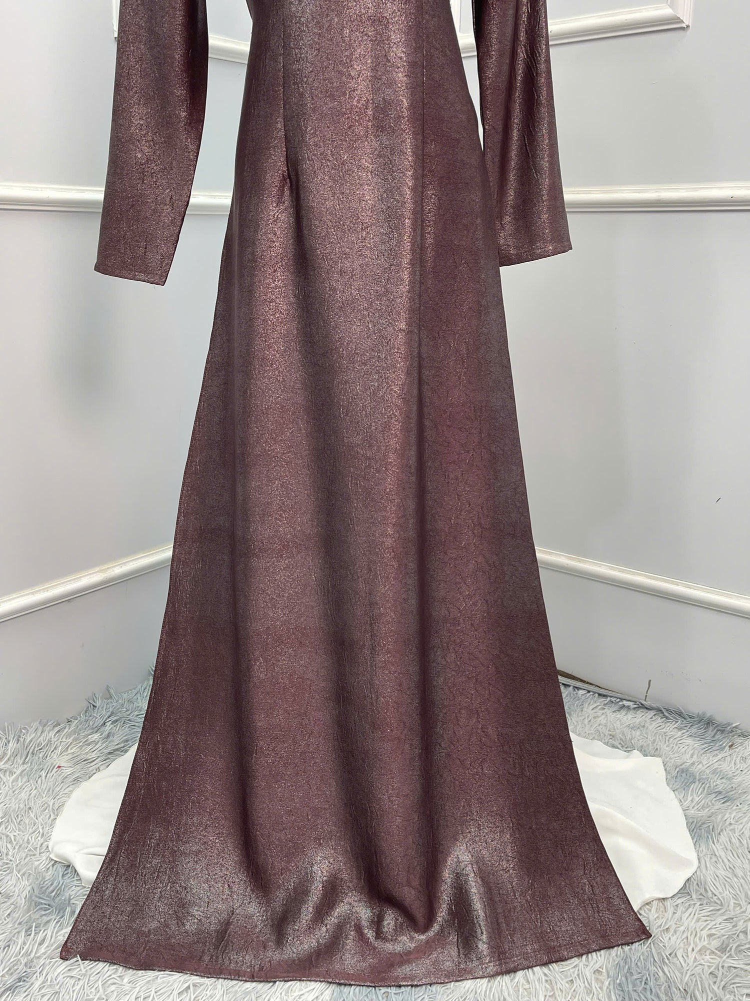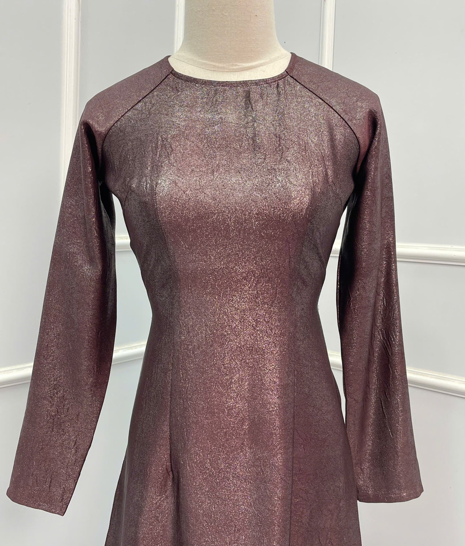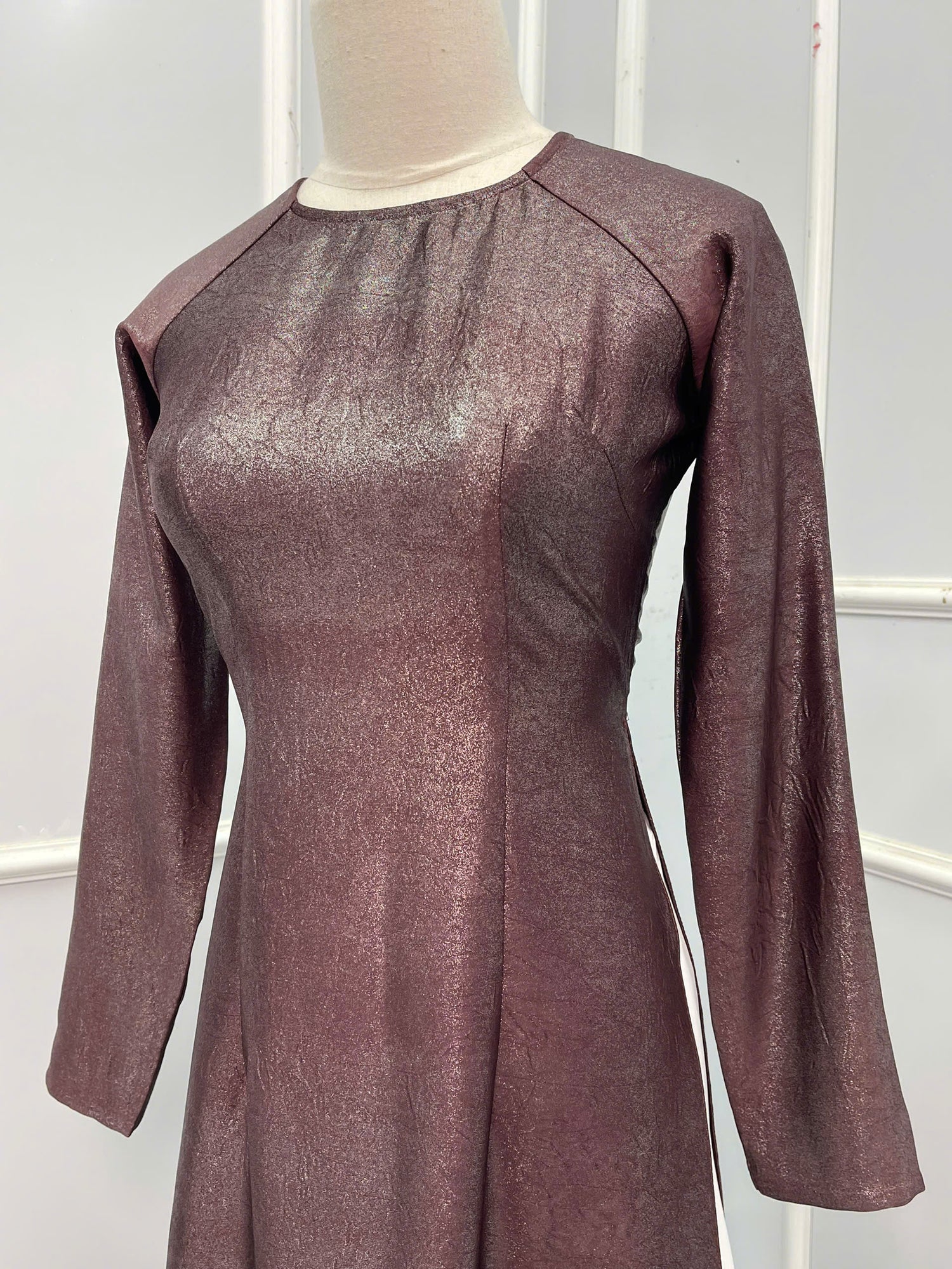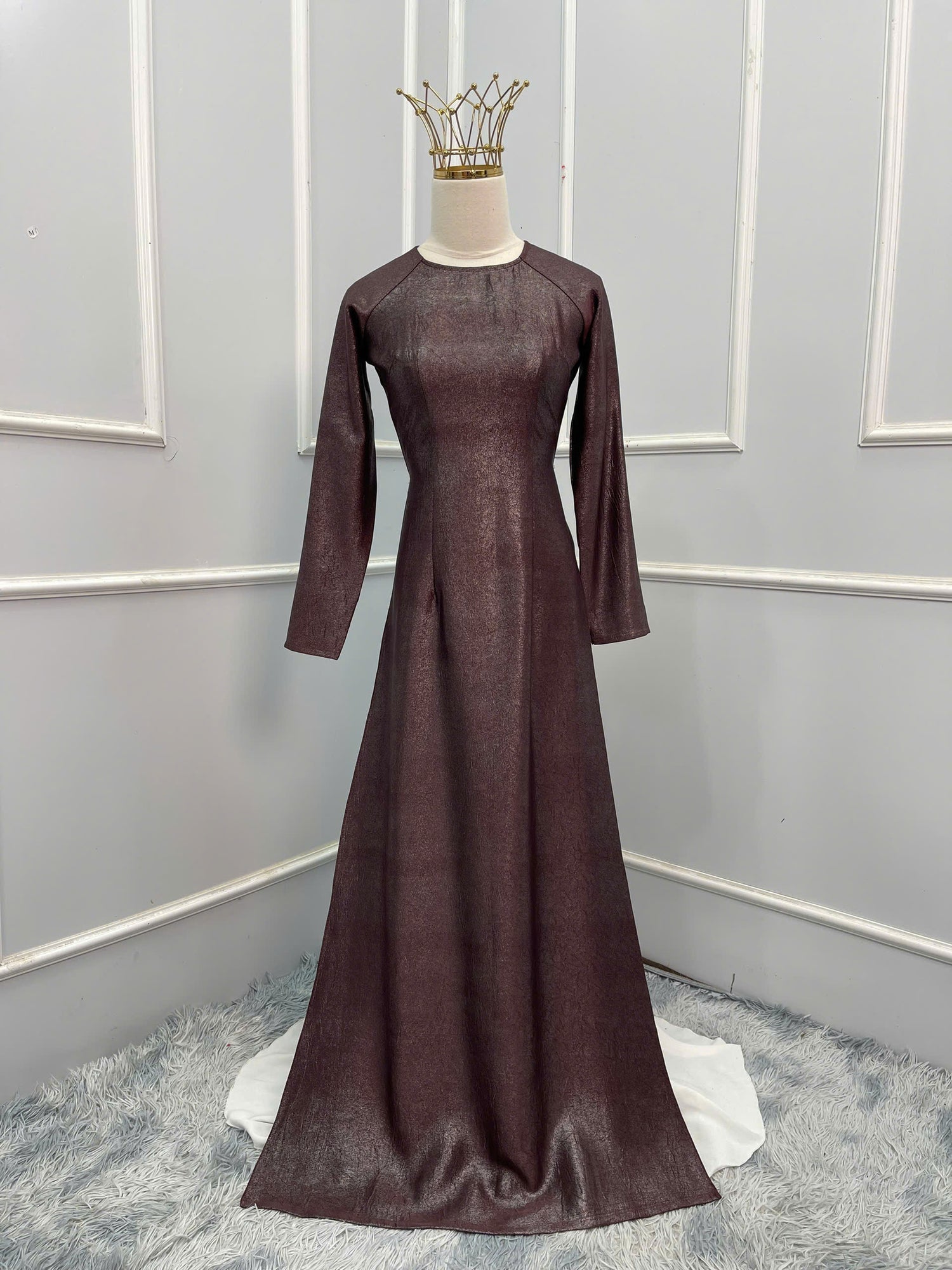 H166 Áo only - Áo dài gấm nhũ màu nâu tây
