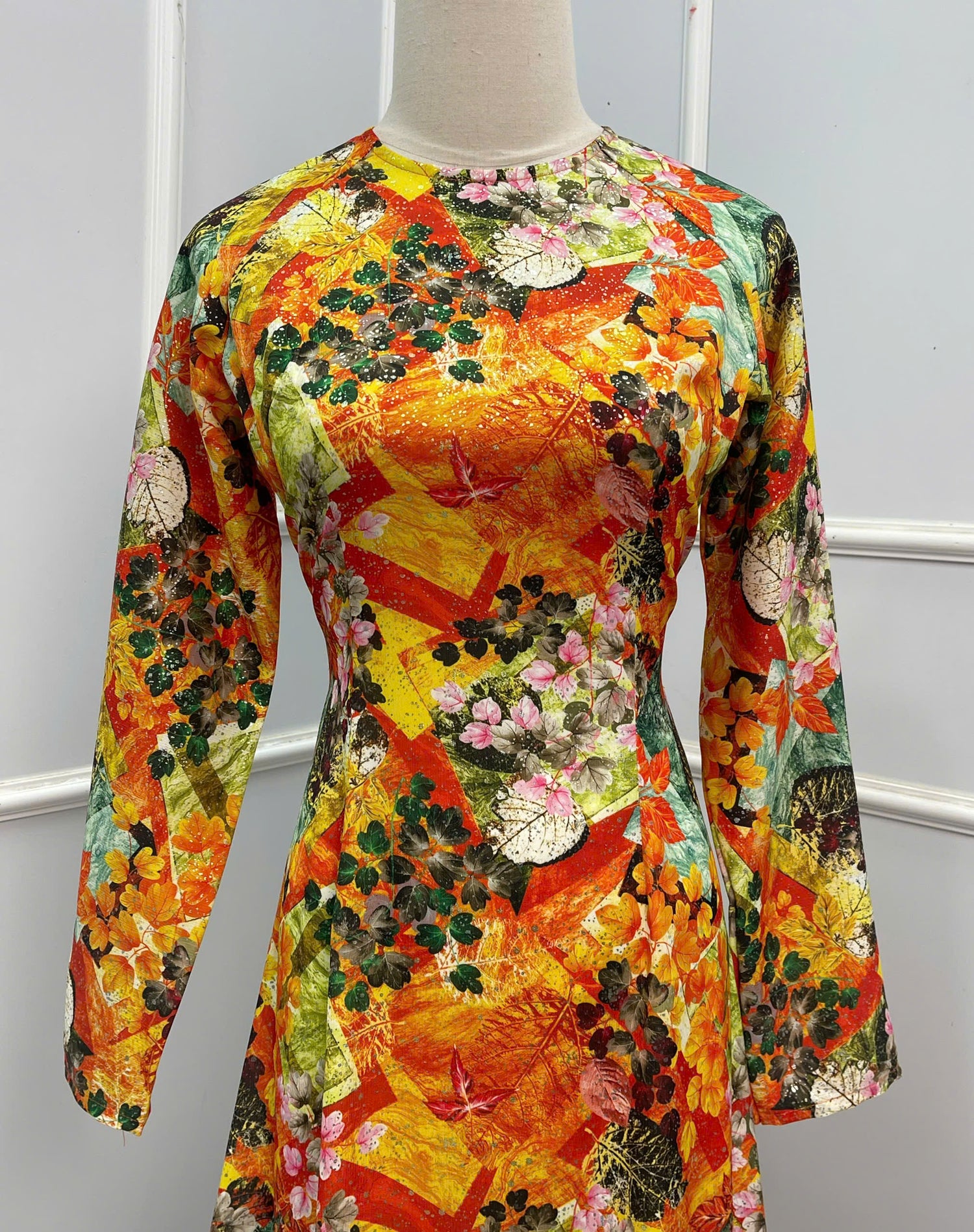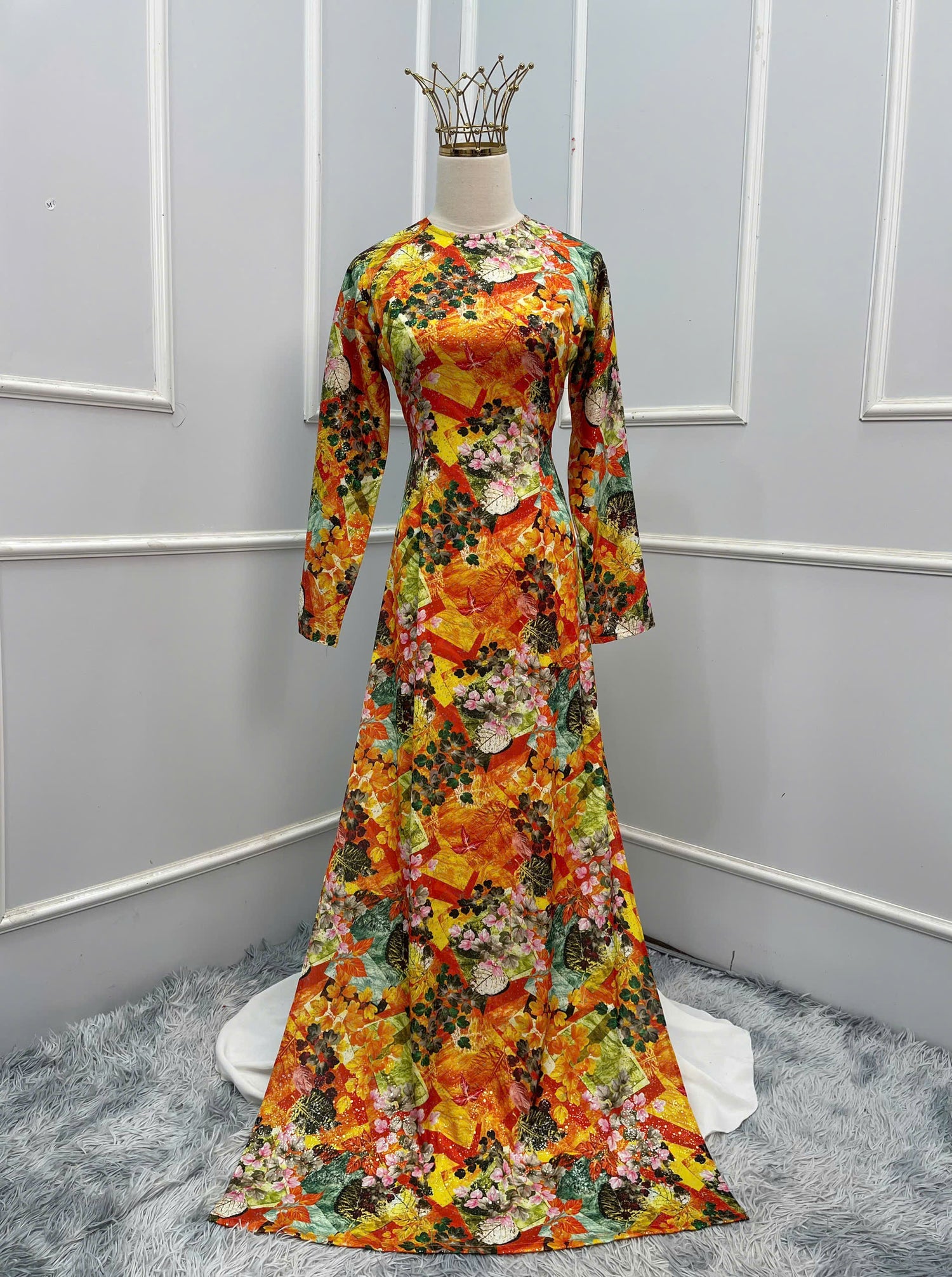 H167 Áo only - Áo dài lụa sắc màu kim tuyến