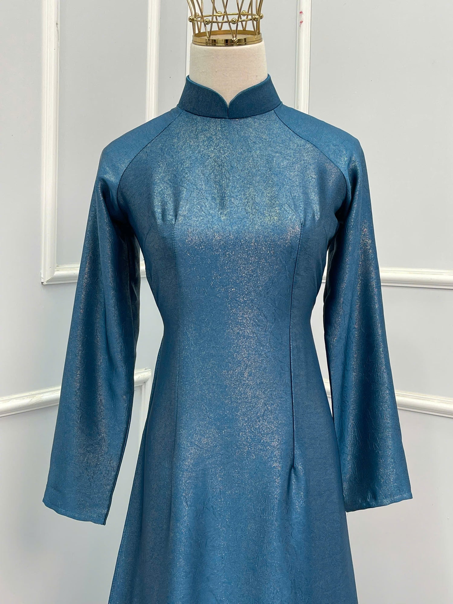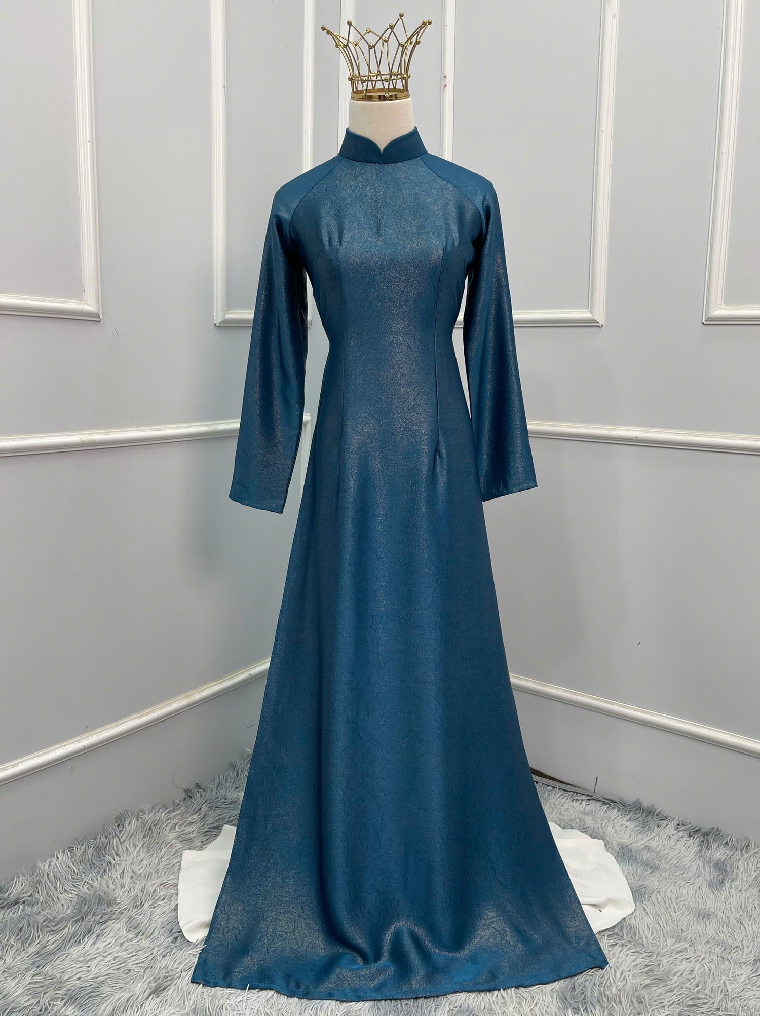 H170 Áo only - Áo dài lụa dubai màu xanh cổ vịt