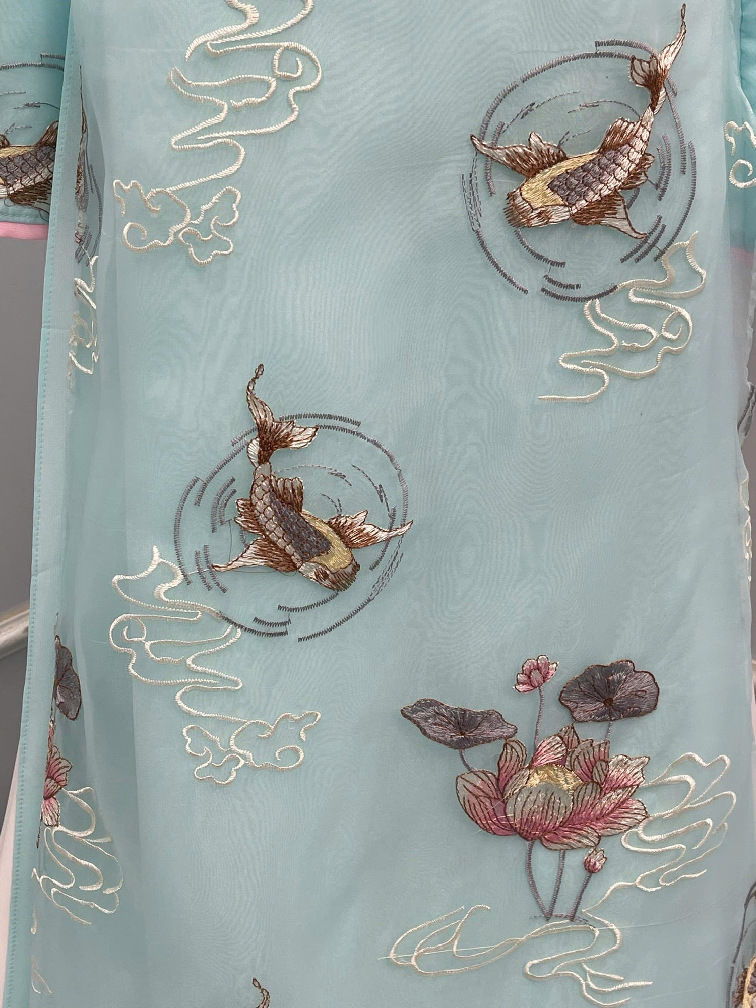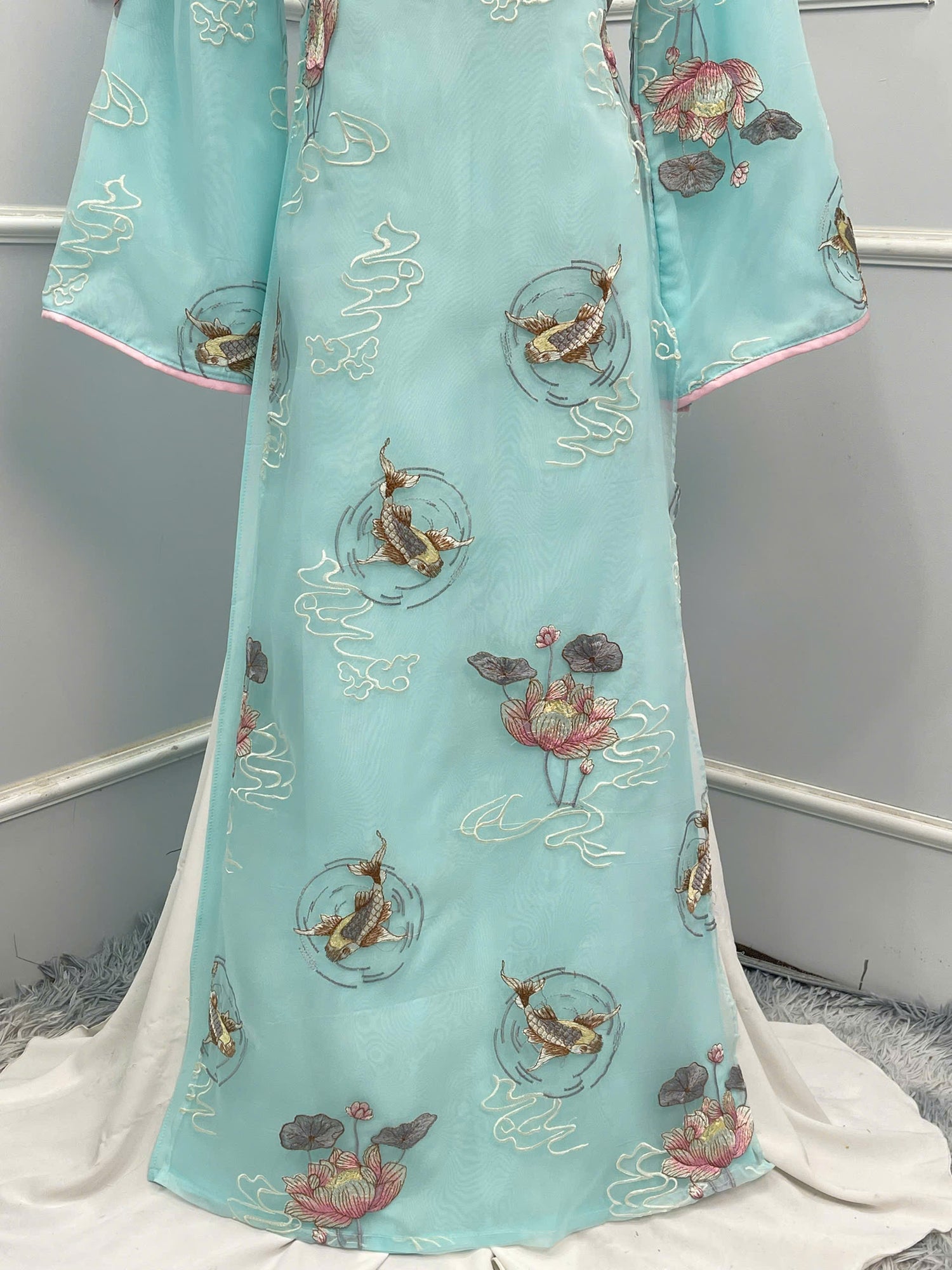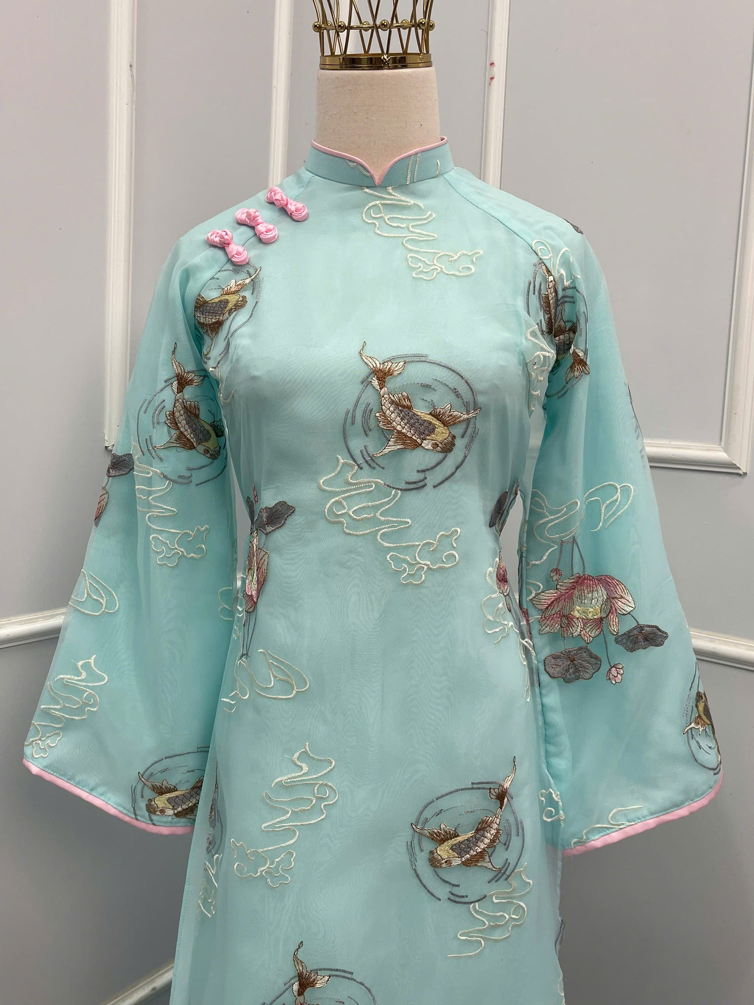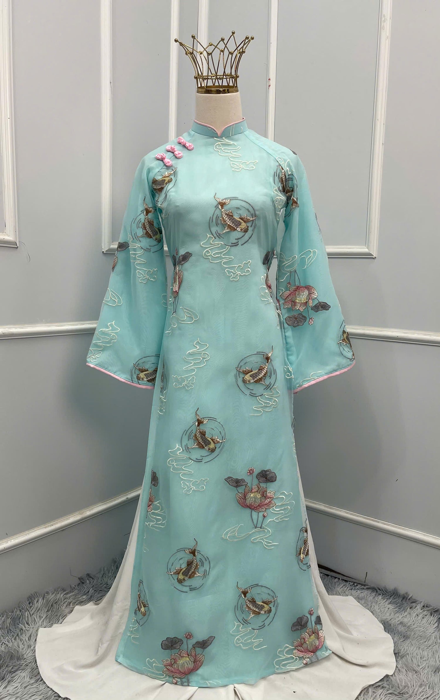 H172 Áo only - Áo dài cách tân tơ 4 tà Liên Ngư