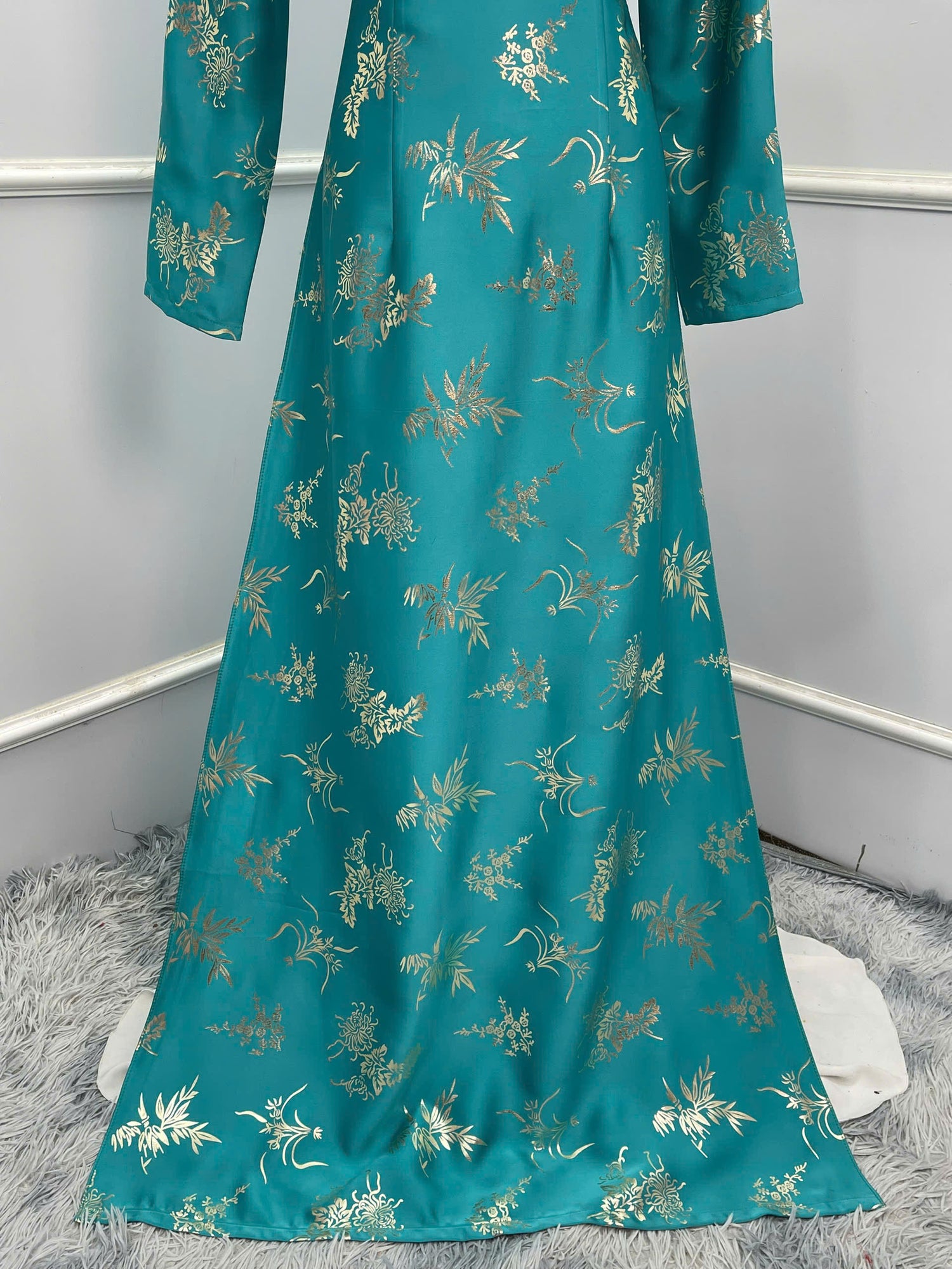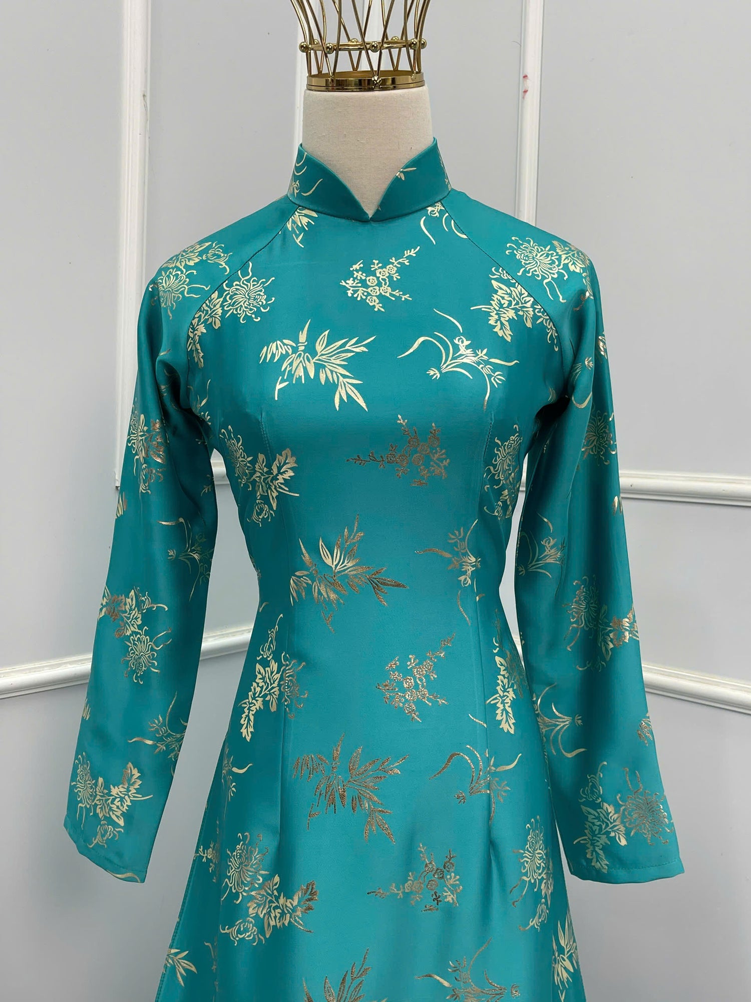 H174 Áo only - Áo dài lụa dubai màu xanh lý