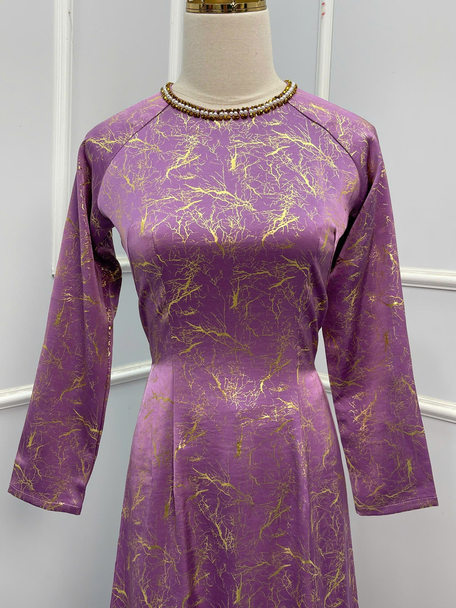 H185 Áo only - Áo dài lụa Dubai đính ngọc