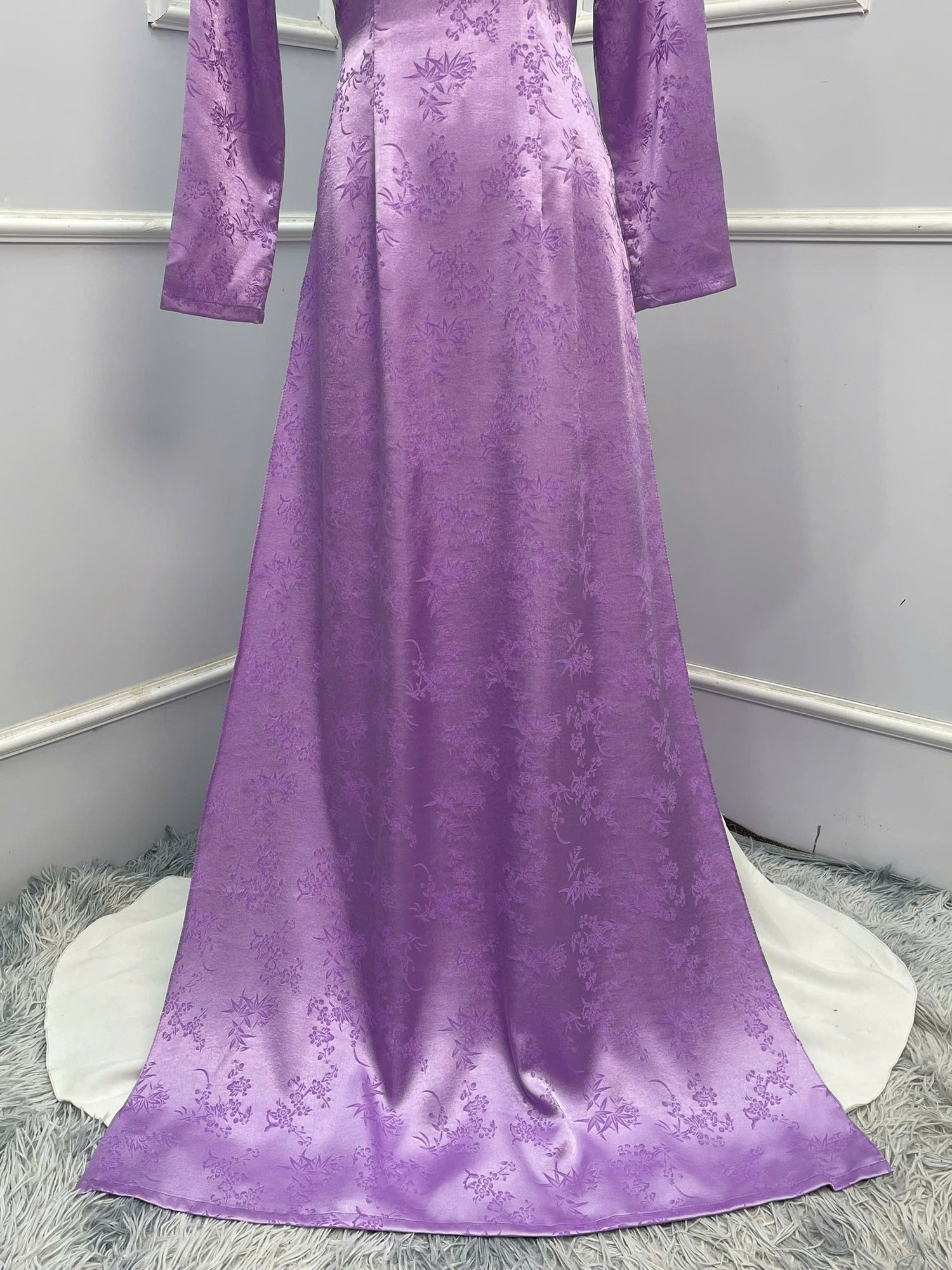 H192 1342 Áo only - Áo dài lụa gấm màu tím