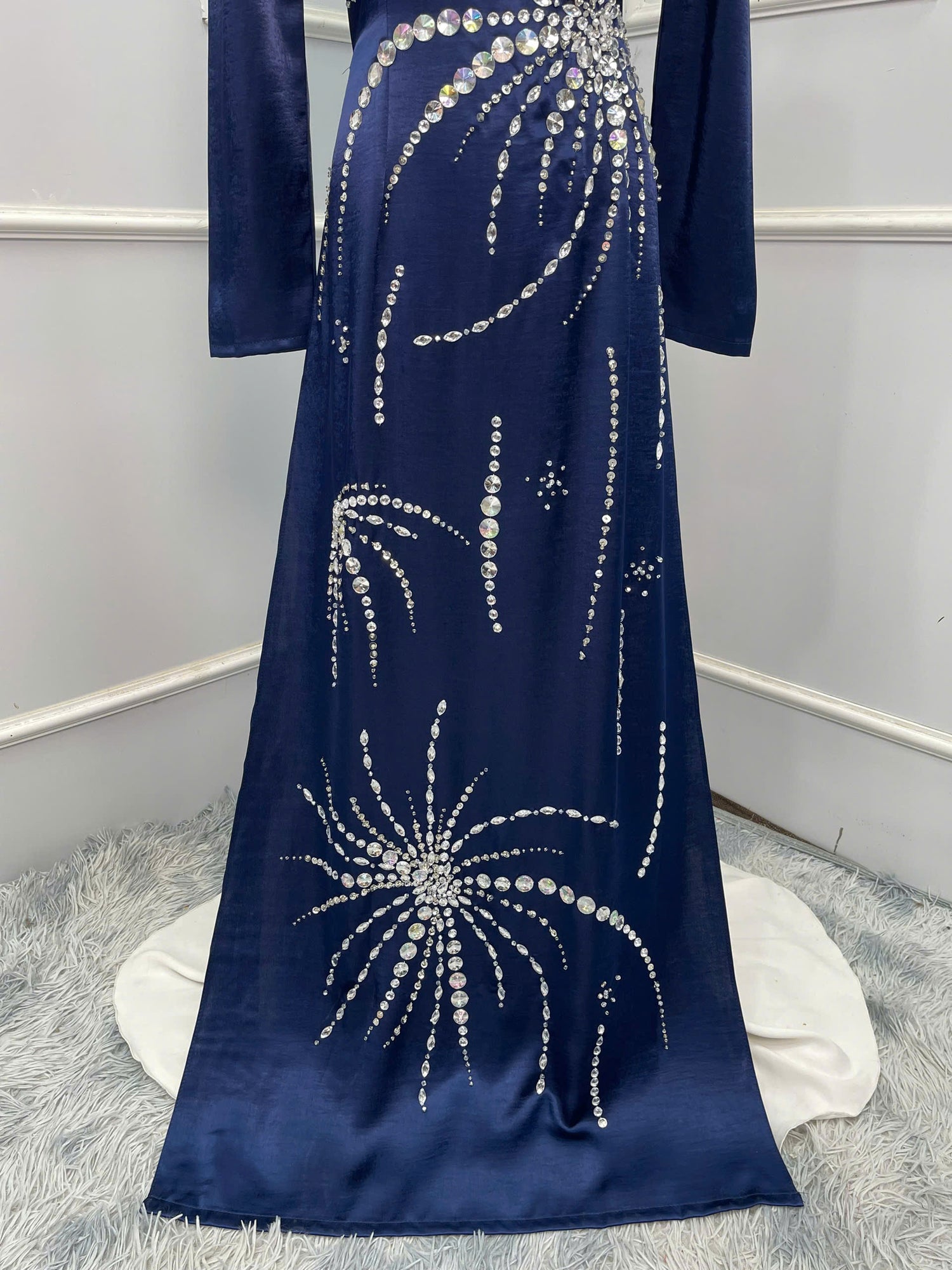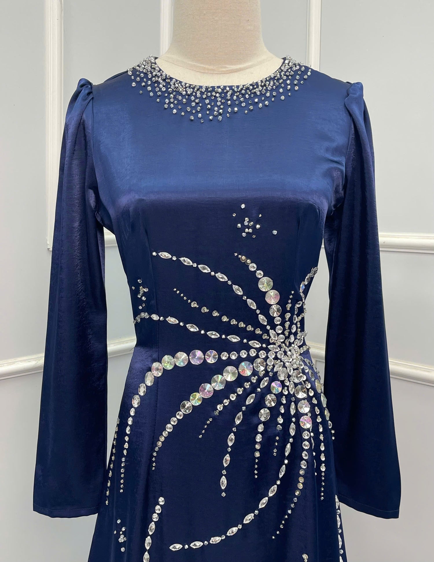 H195 Áo only - Áo dài lụa valentino xanh than đính kết