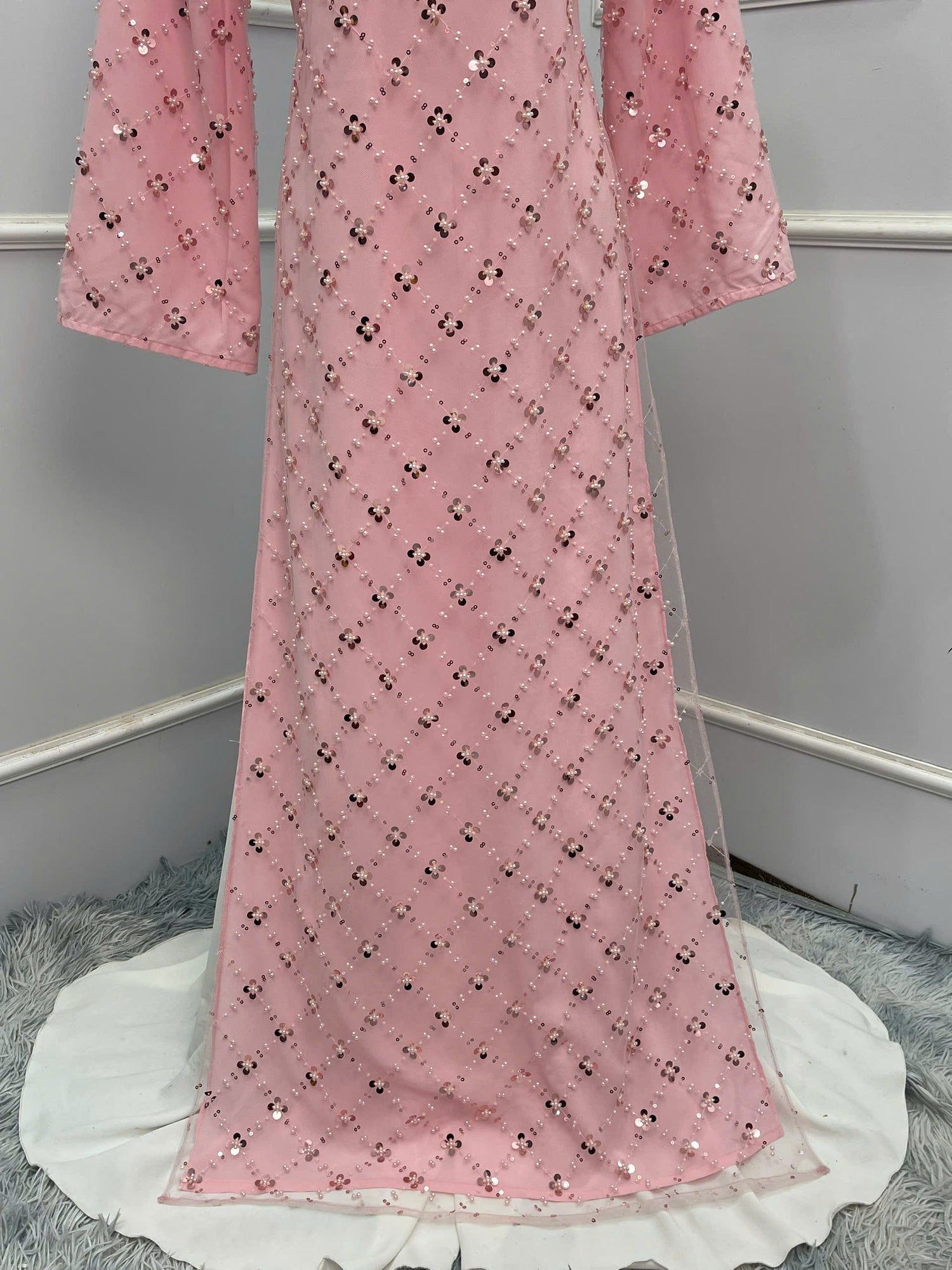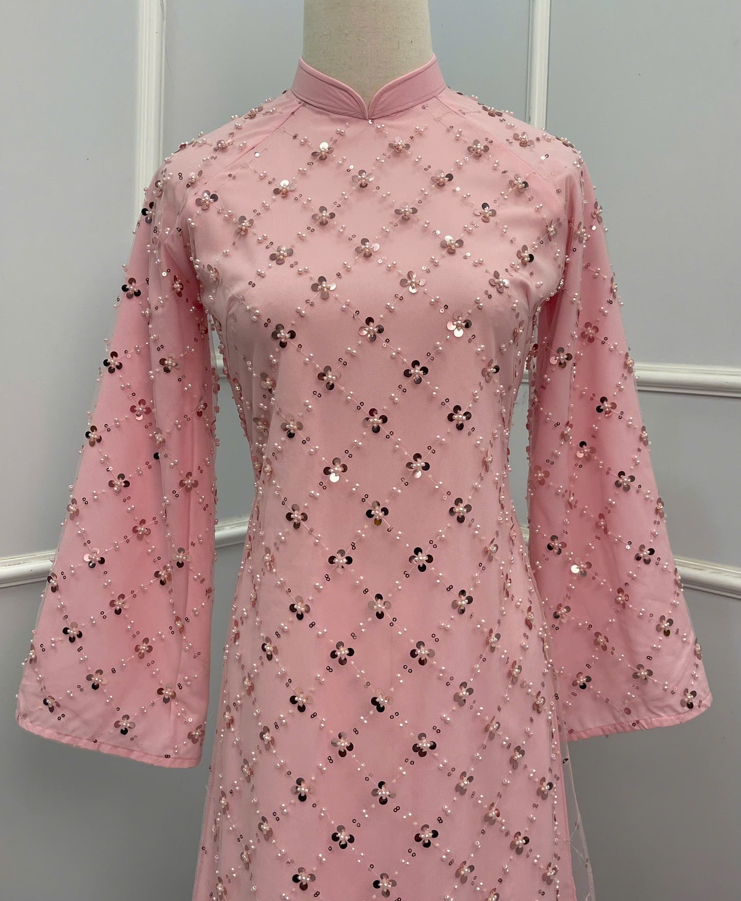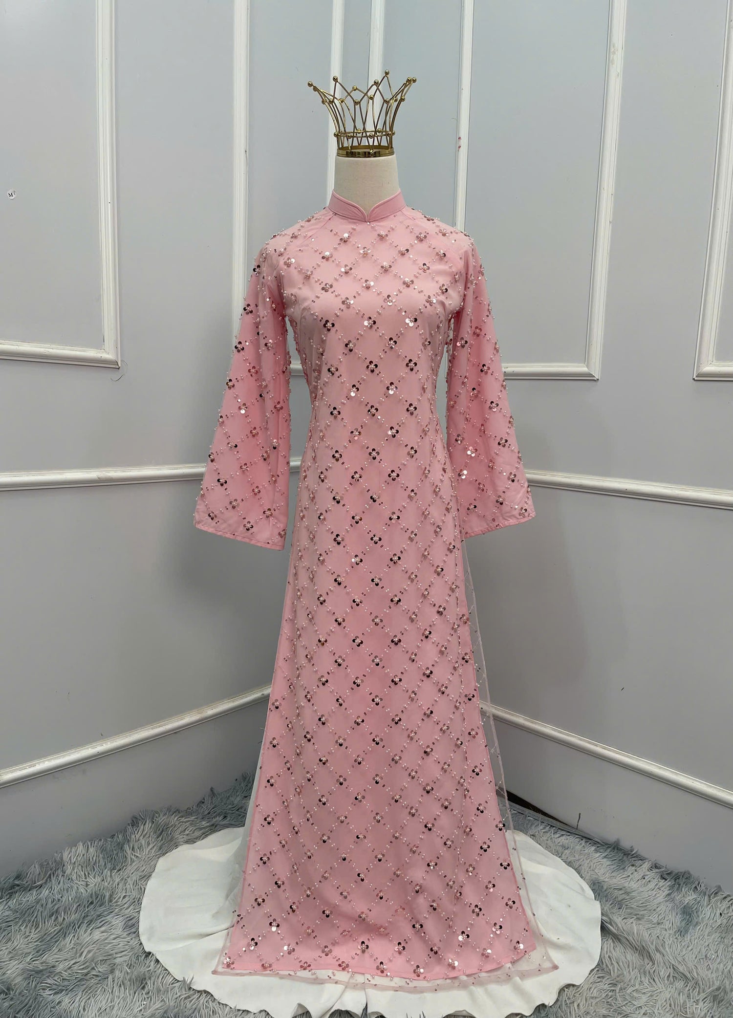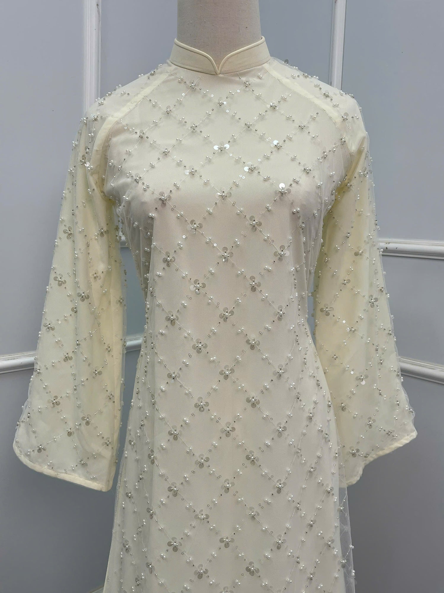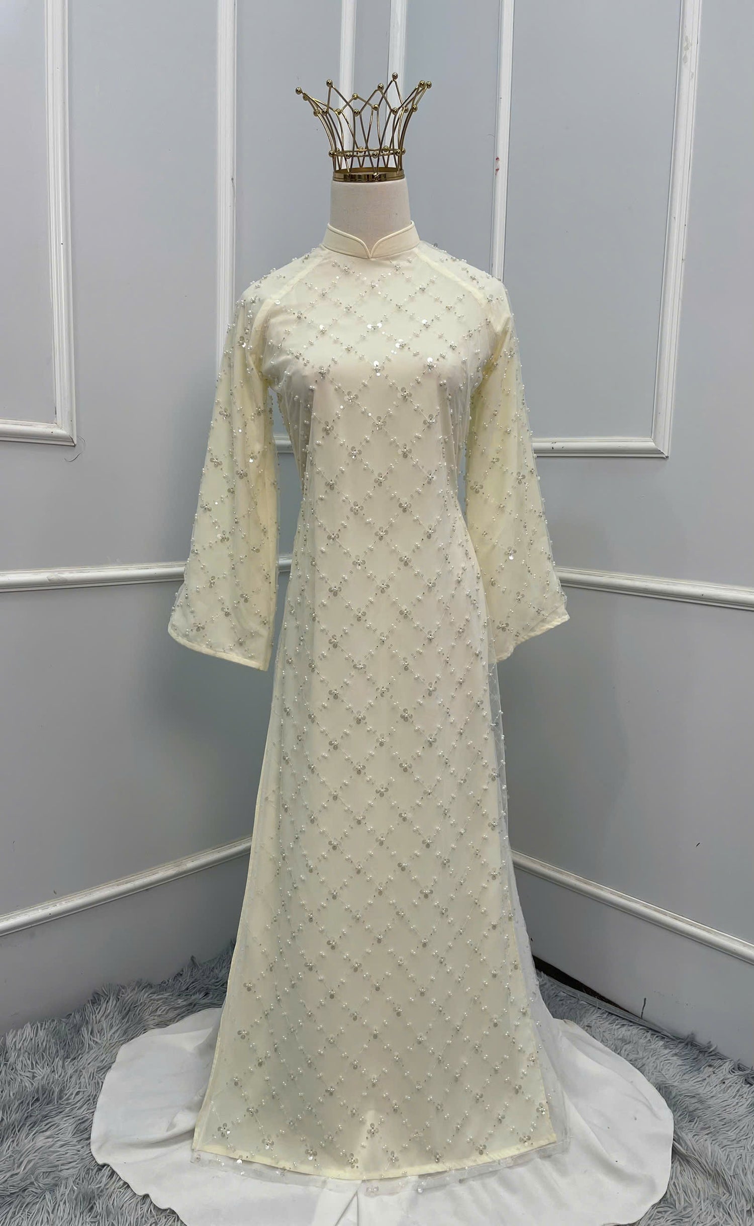 H199 H200 1339 - Áo dài lụa tơ voan đính ngọc