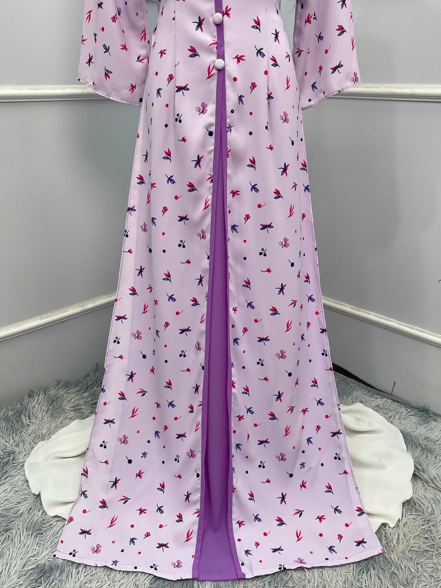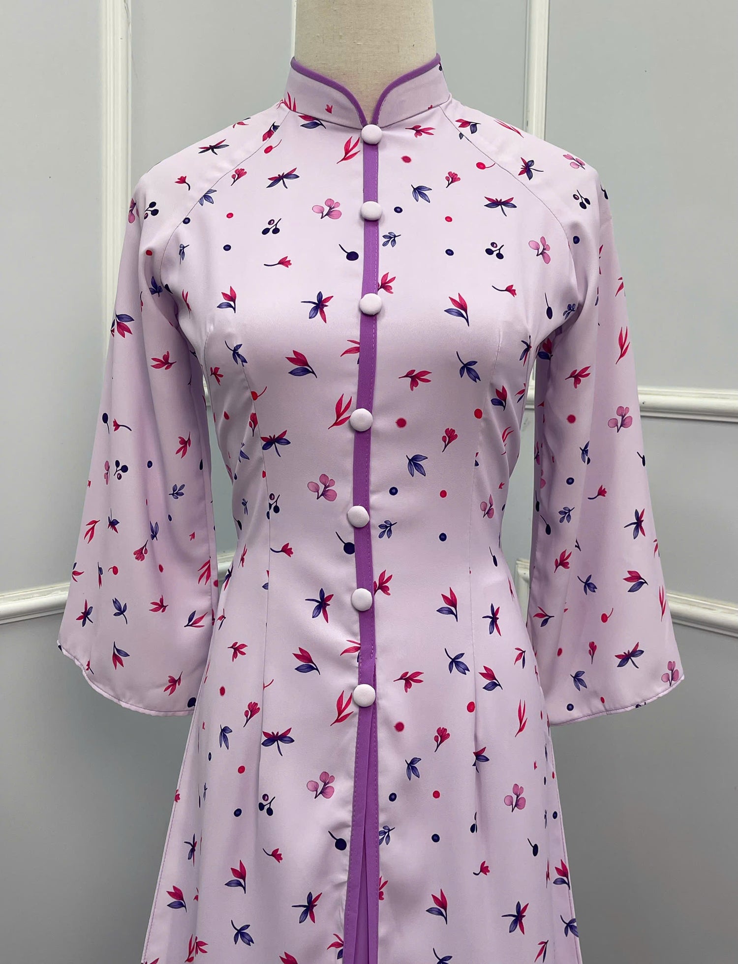 H213 1350 Áo + quần - Áo dài lụa 4 tà đính cúc bọc + quần tím cà