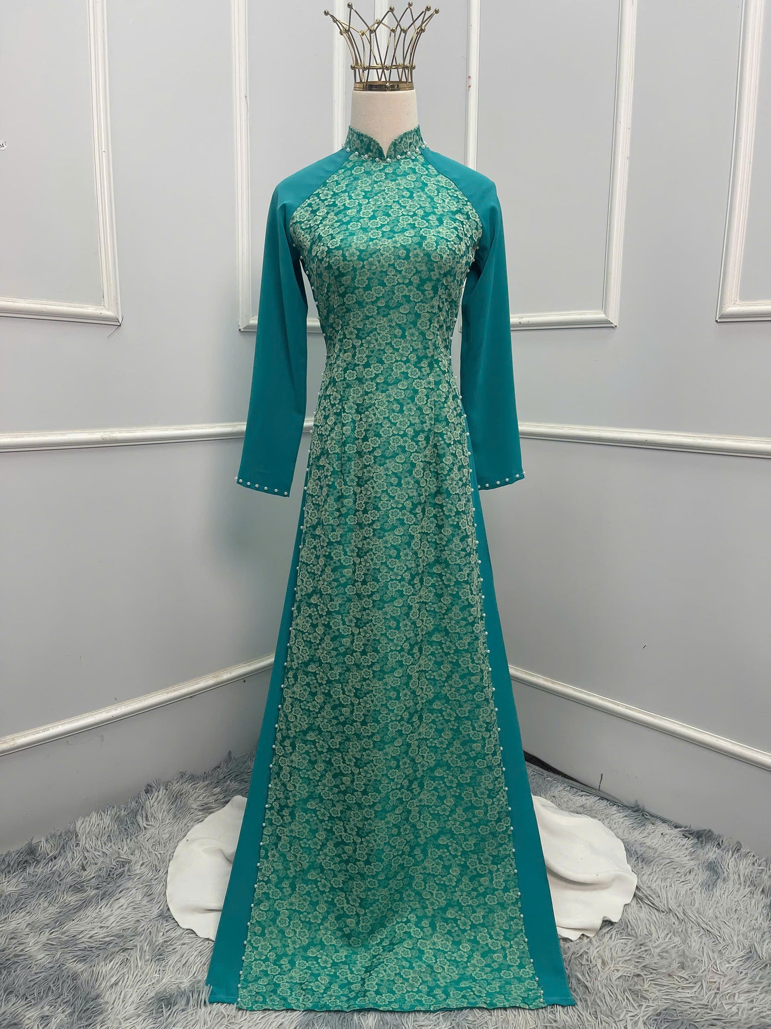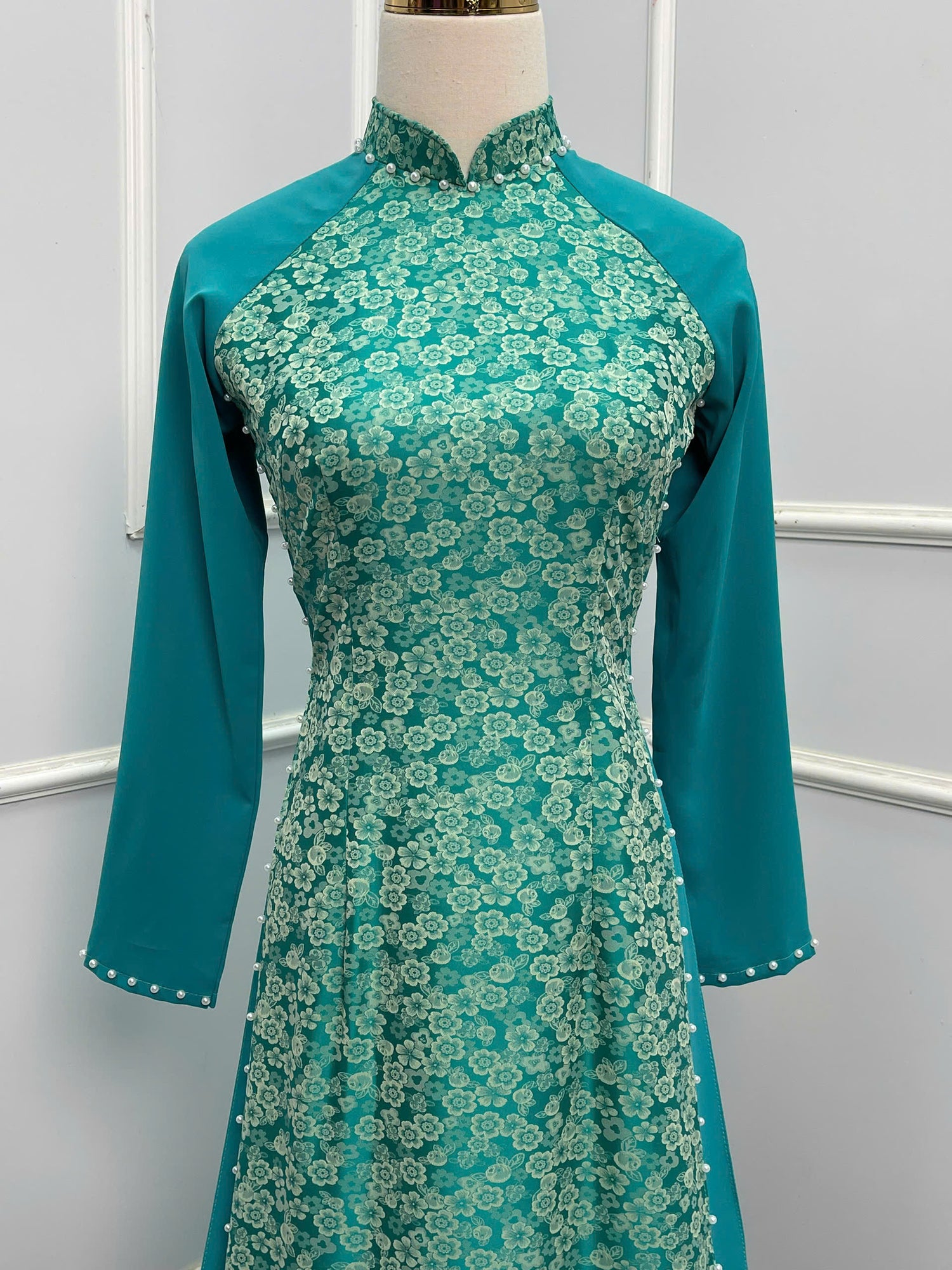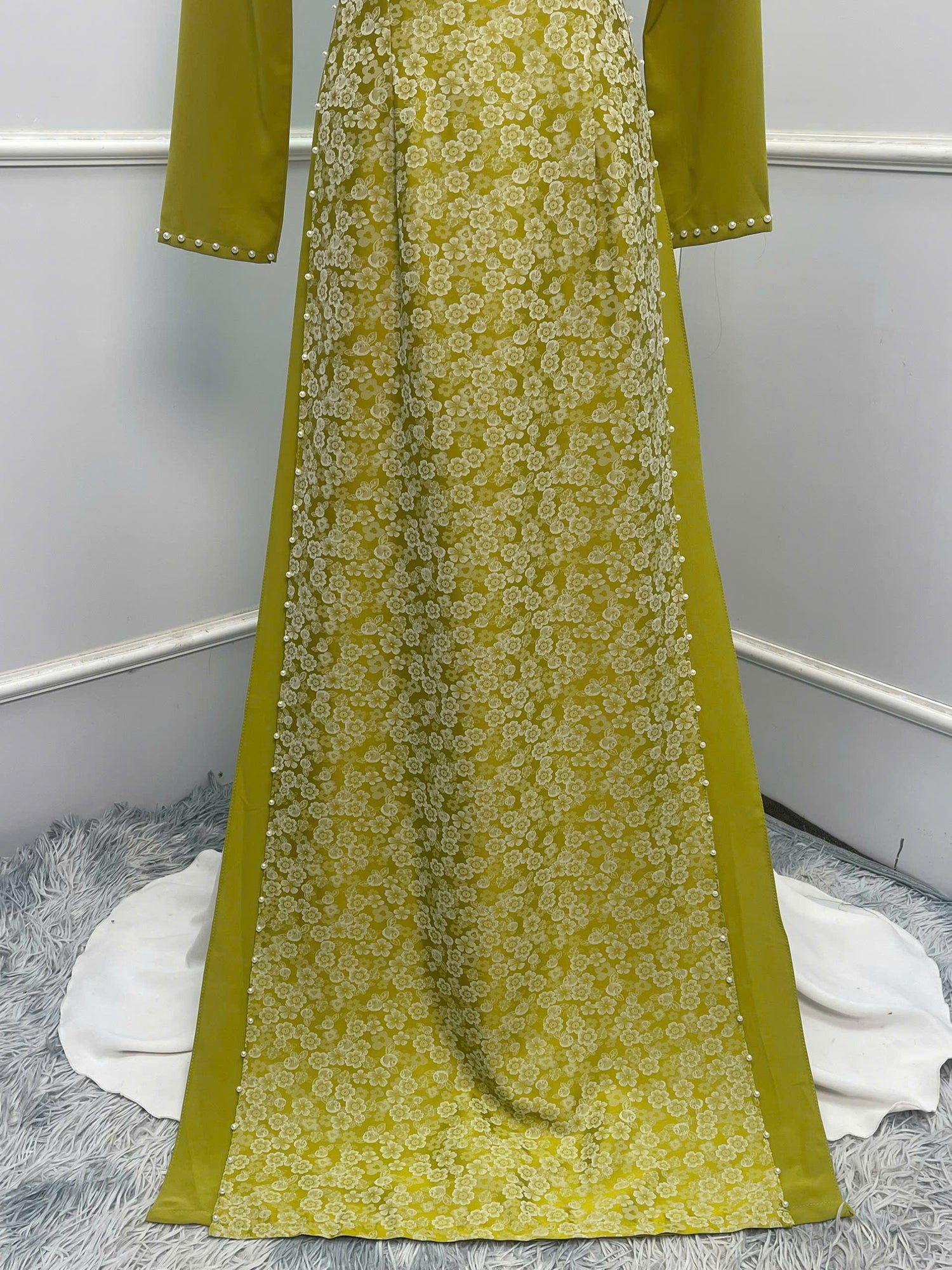 H214 H215 1351 Áo + quần - Áo dài lụa 4 tà đính ngọc + quần cùng màu