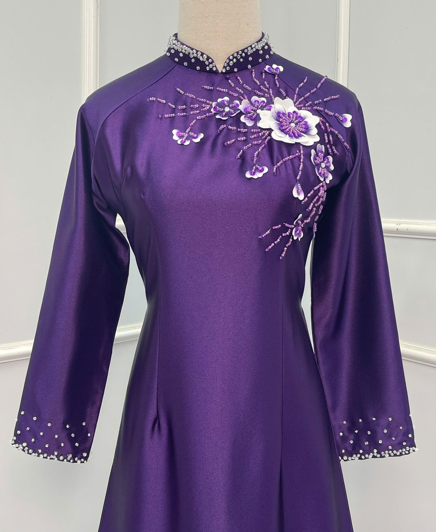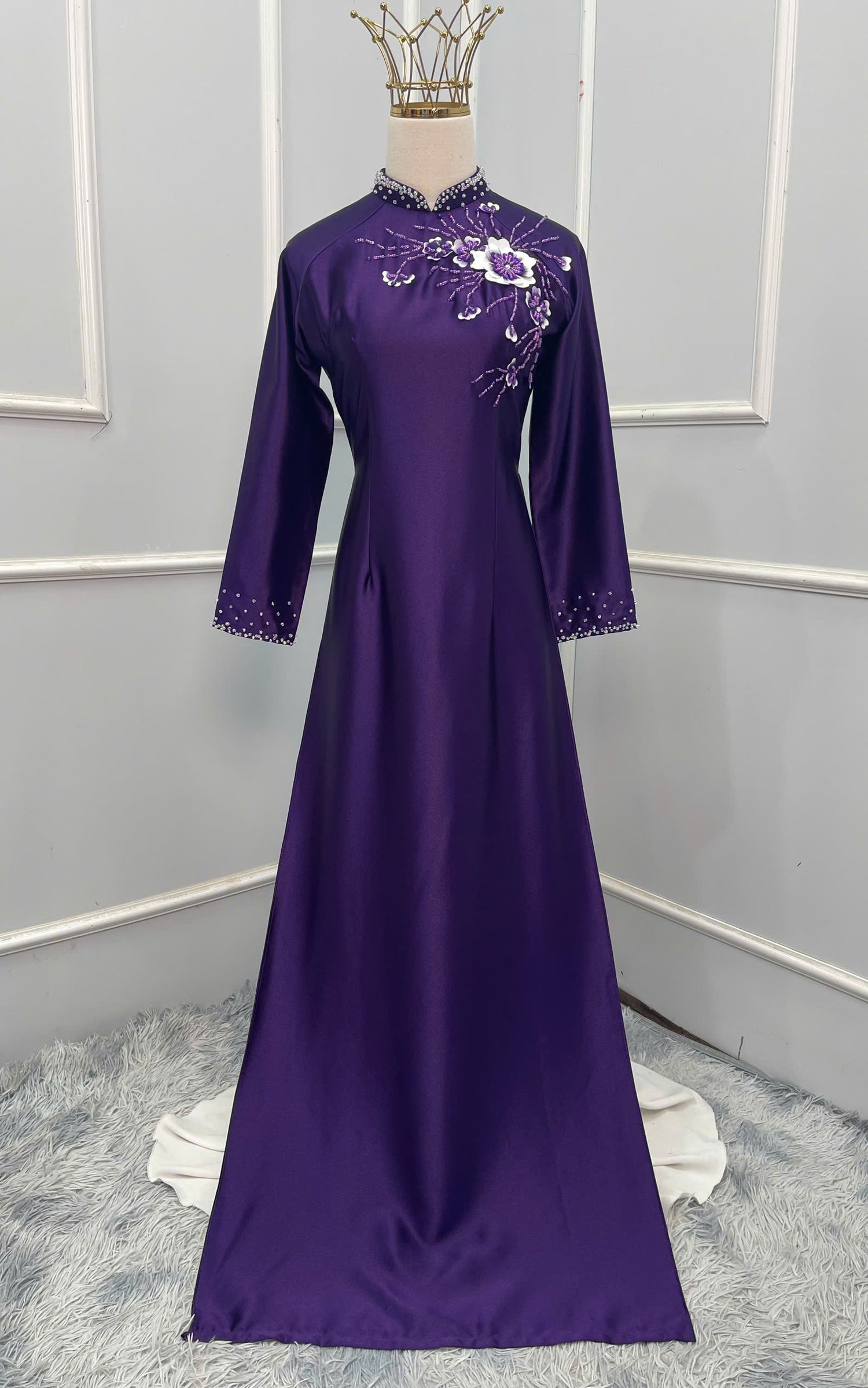 H234 1381 Áo only - Áo dài lụa valentino đính kết màu tím
