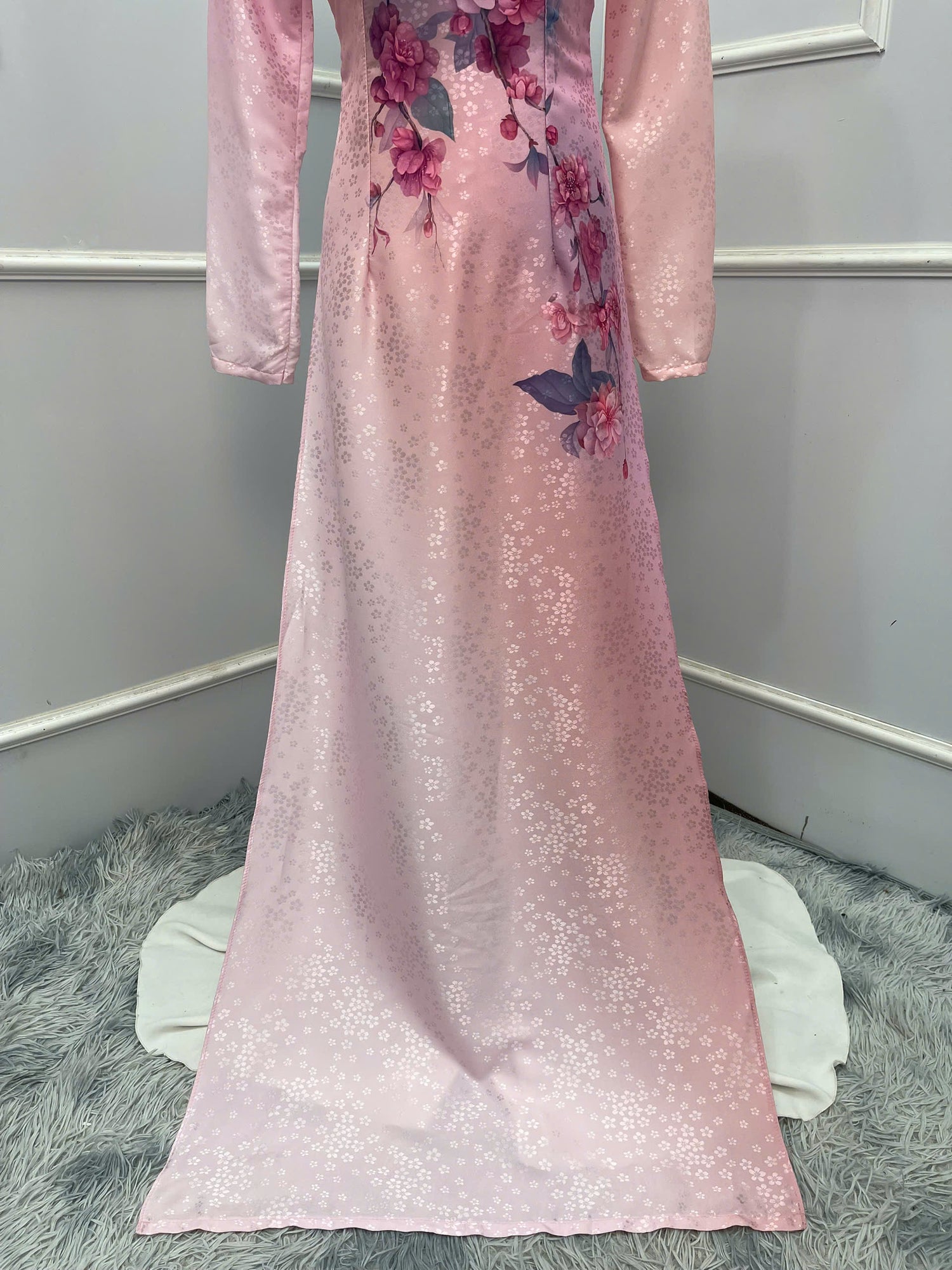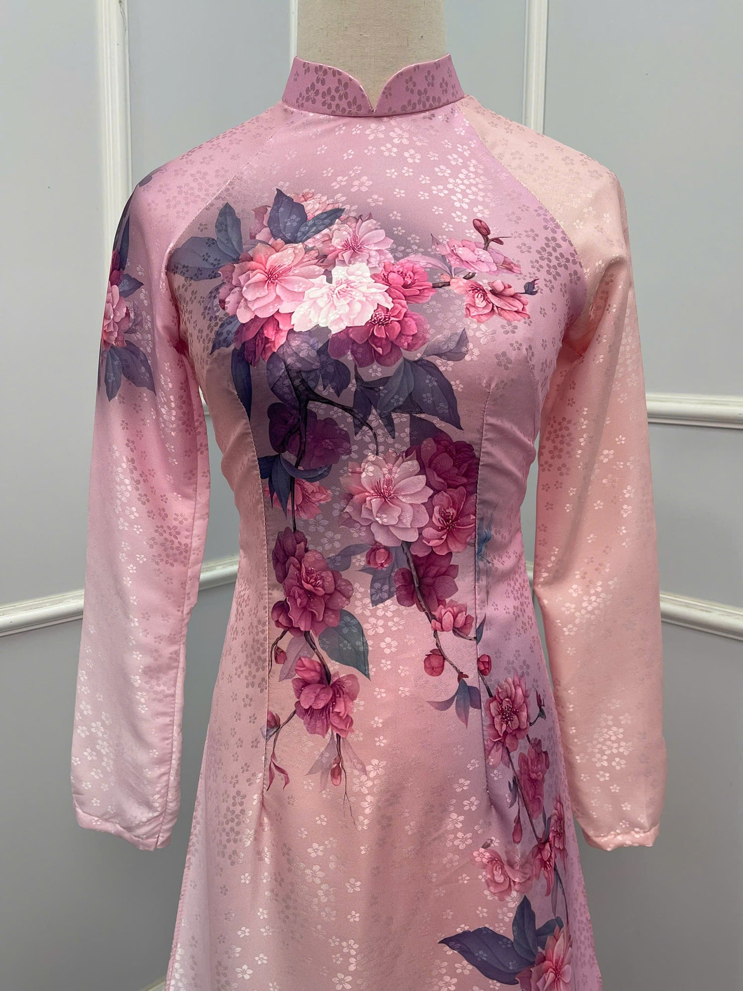H238 1385 Áo only - Áo dài lụa hoa mai hoạ tiết hoa