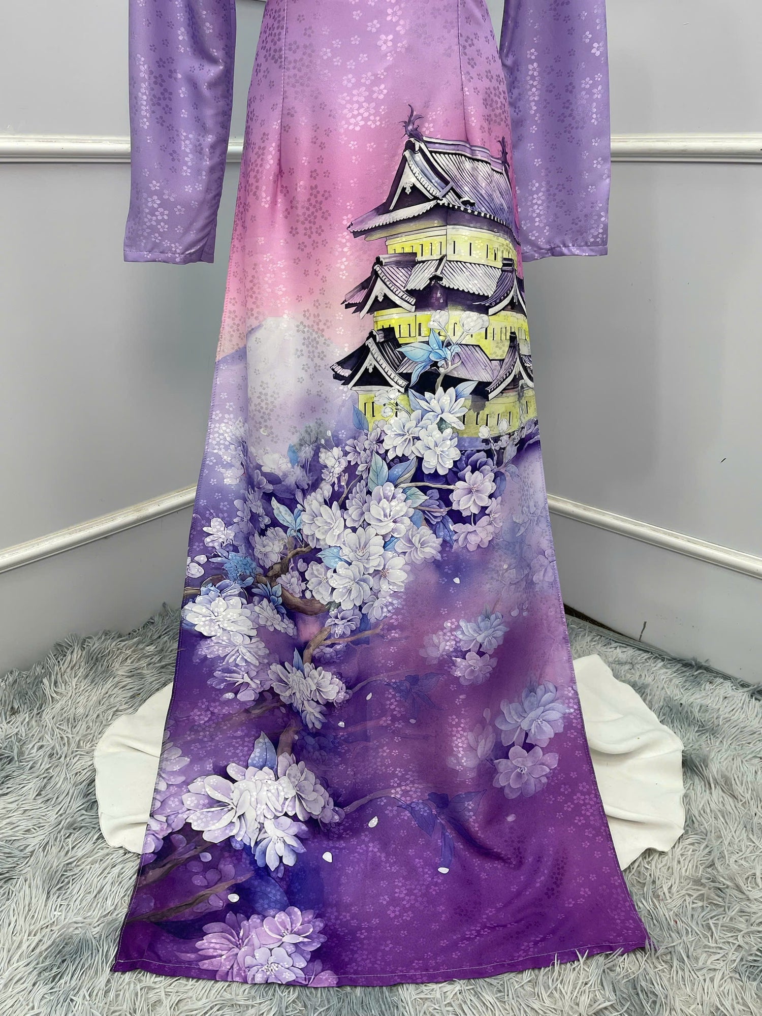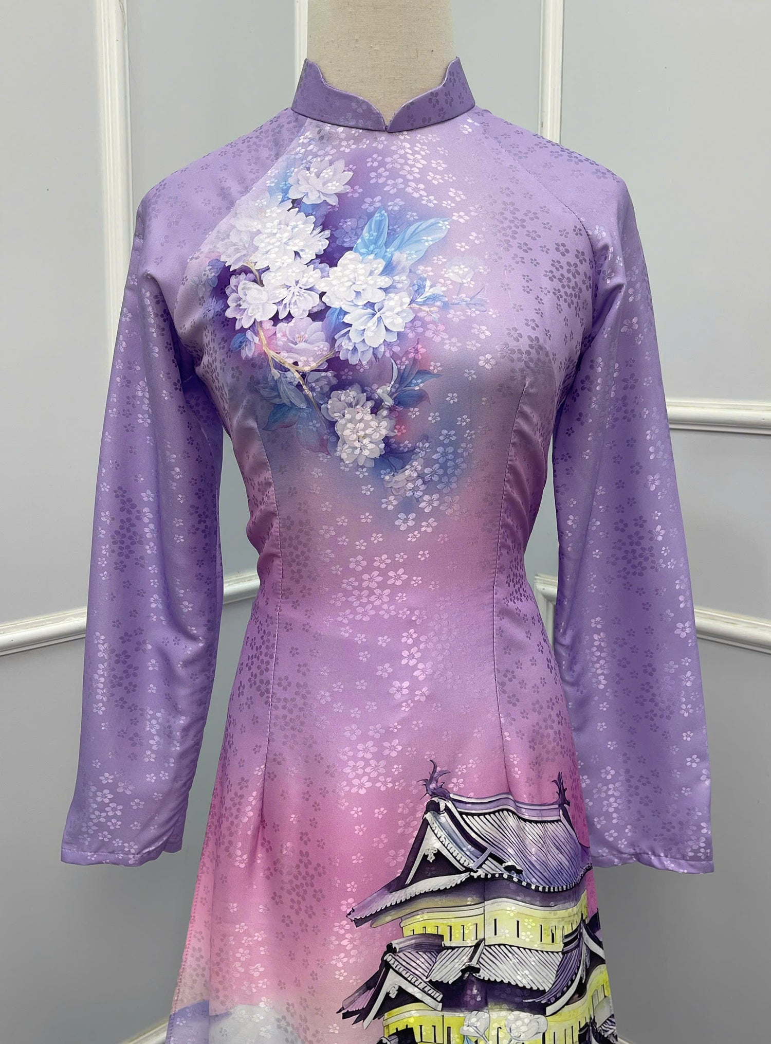 H244 1391 Áo only - Áo dài lụa hoa mai in cúc đại đoá