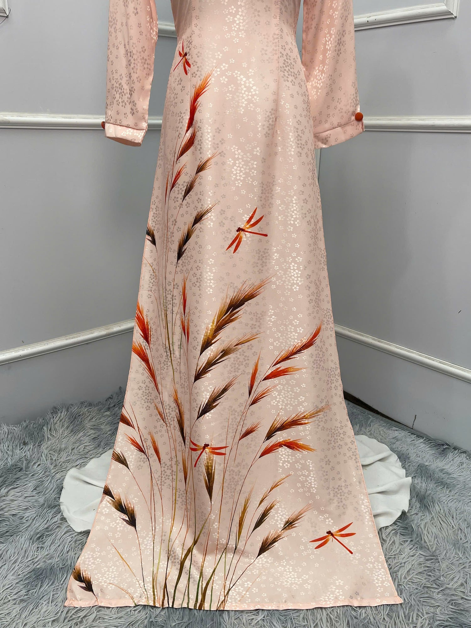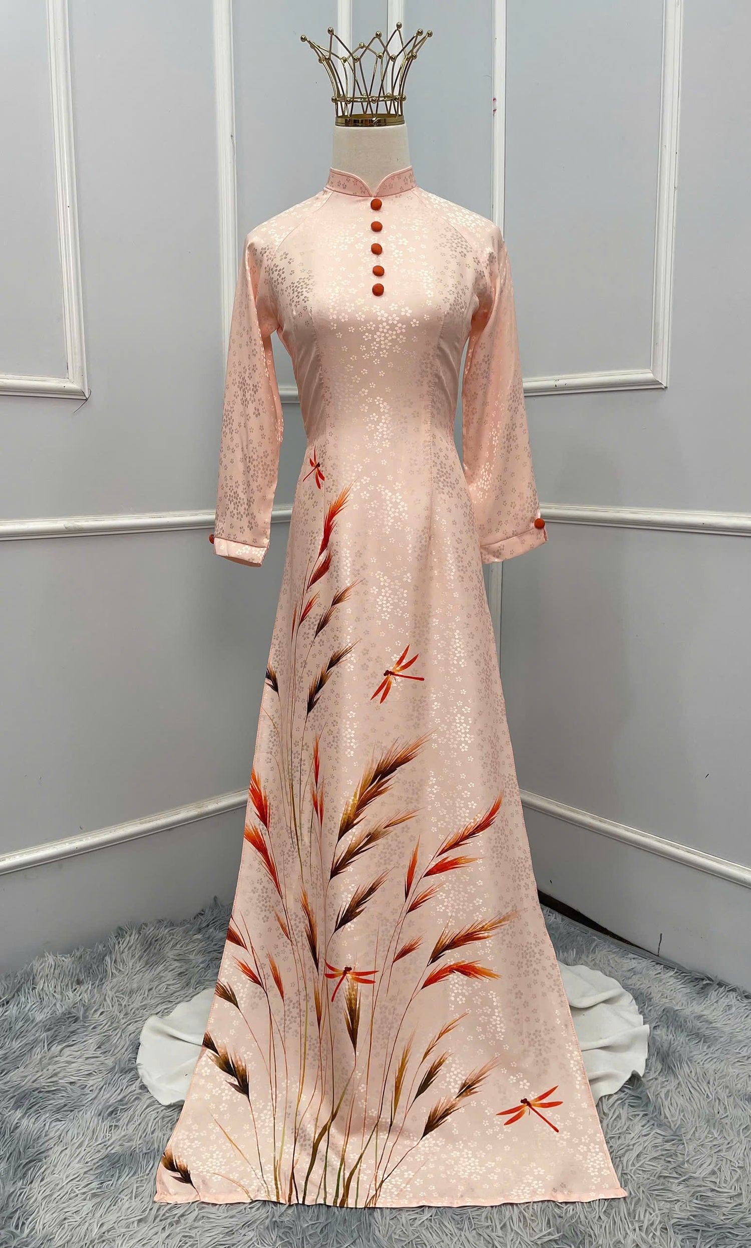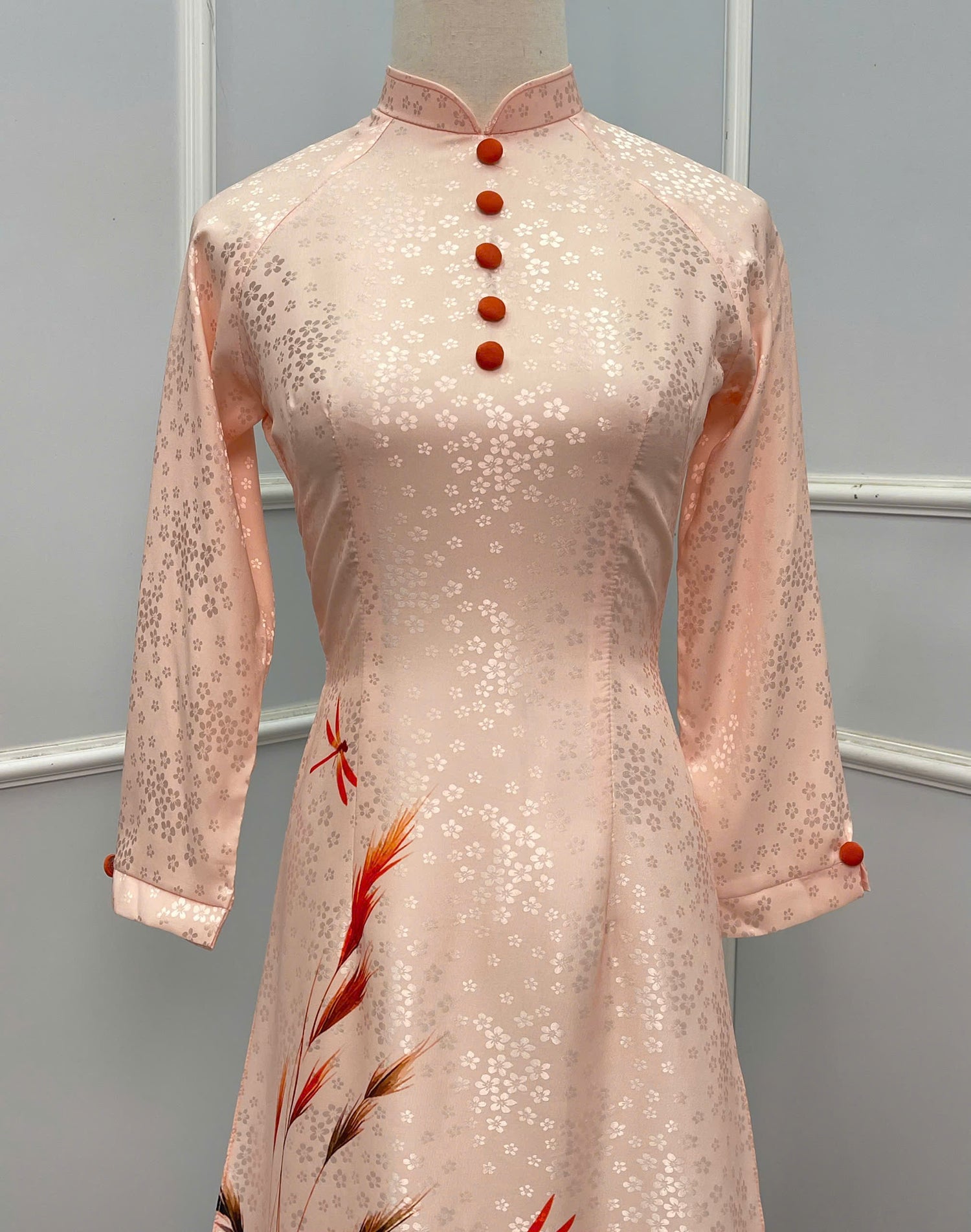 H254 1400 Áo + quần - Áo dài lụa hoa mai đính cúc bọc + quần