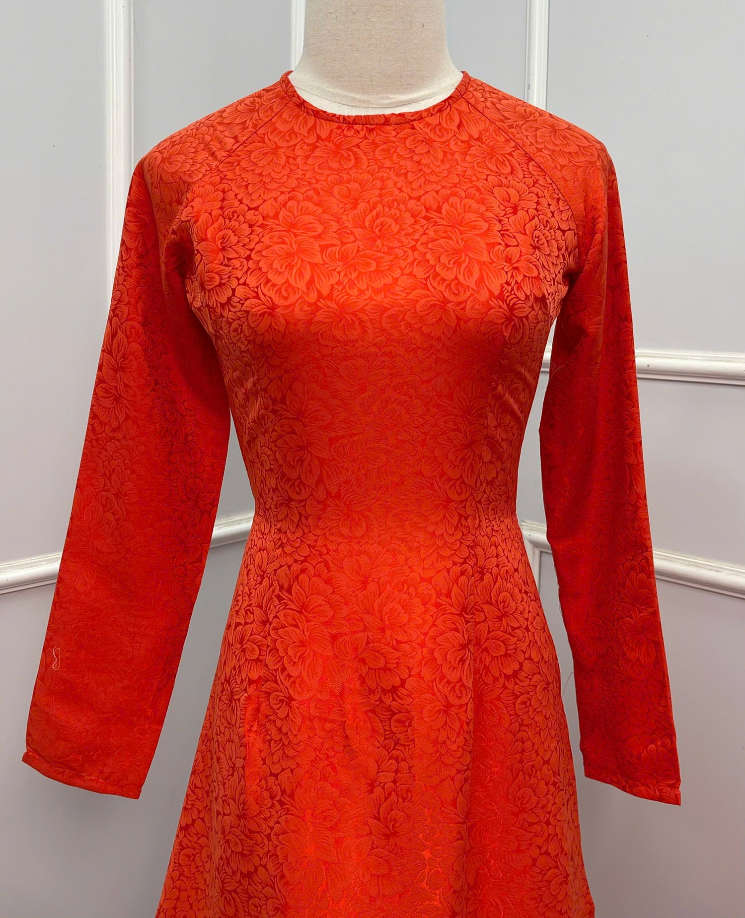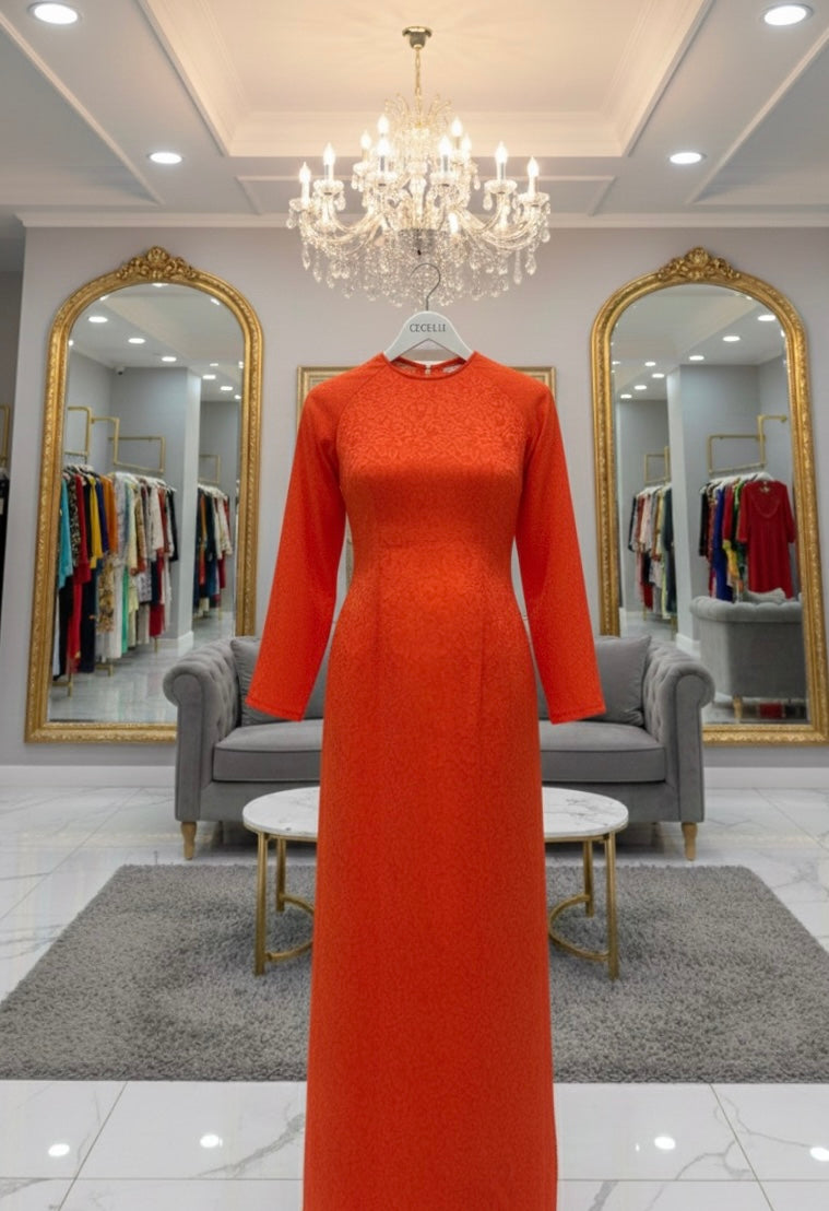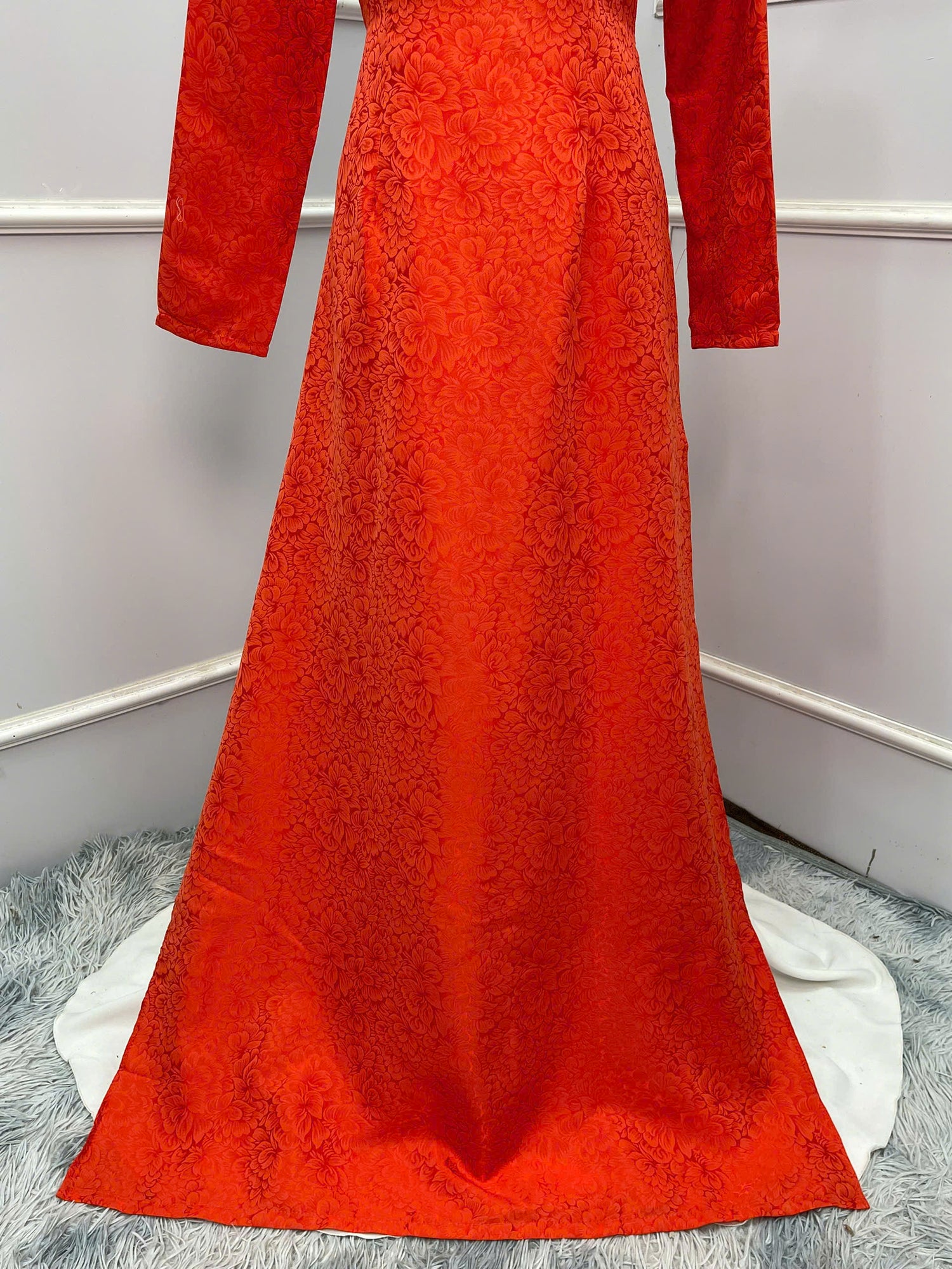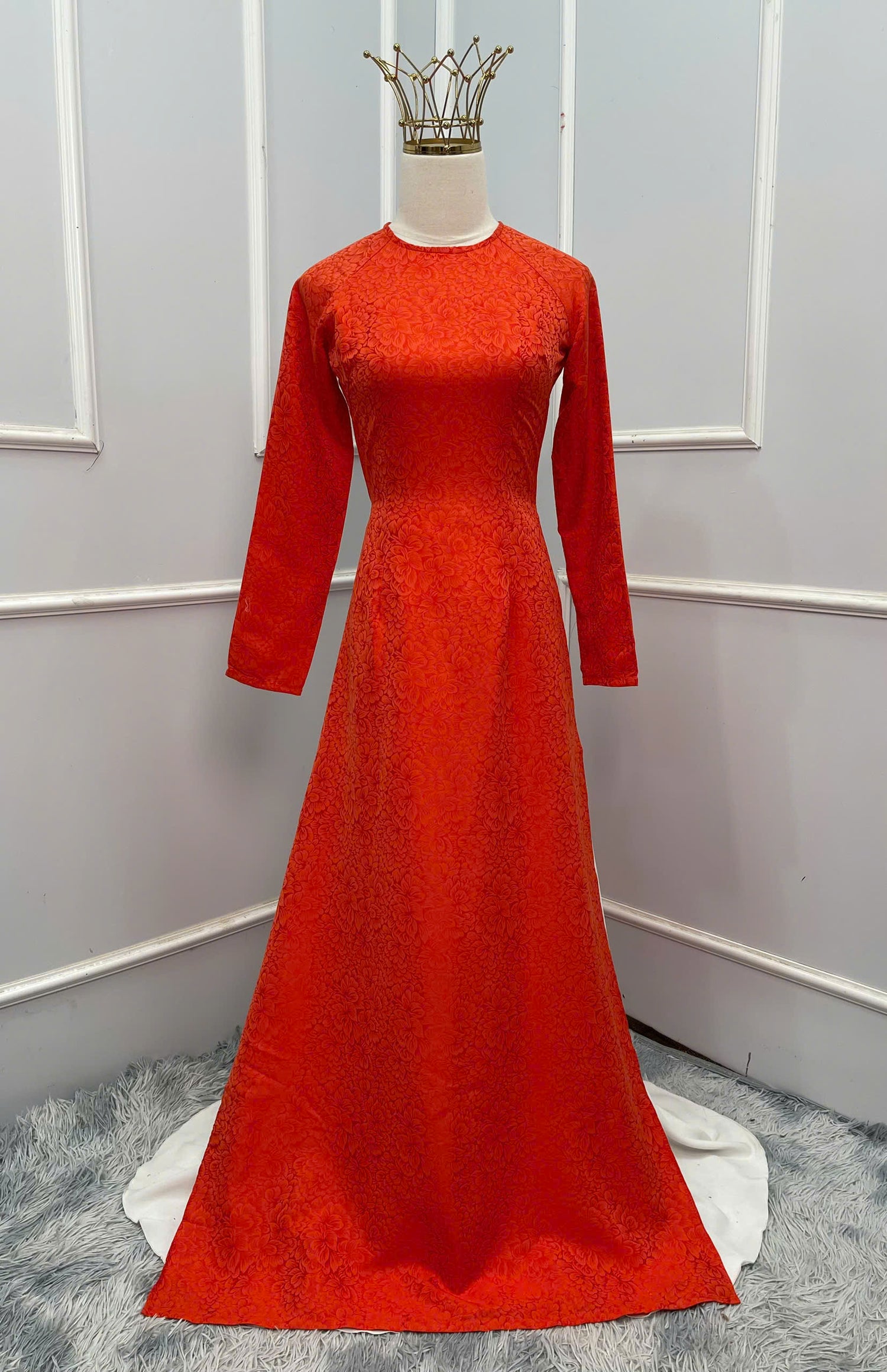 H270 1461 Áo only - Áo dài lụa gấm màu cam