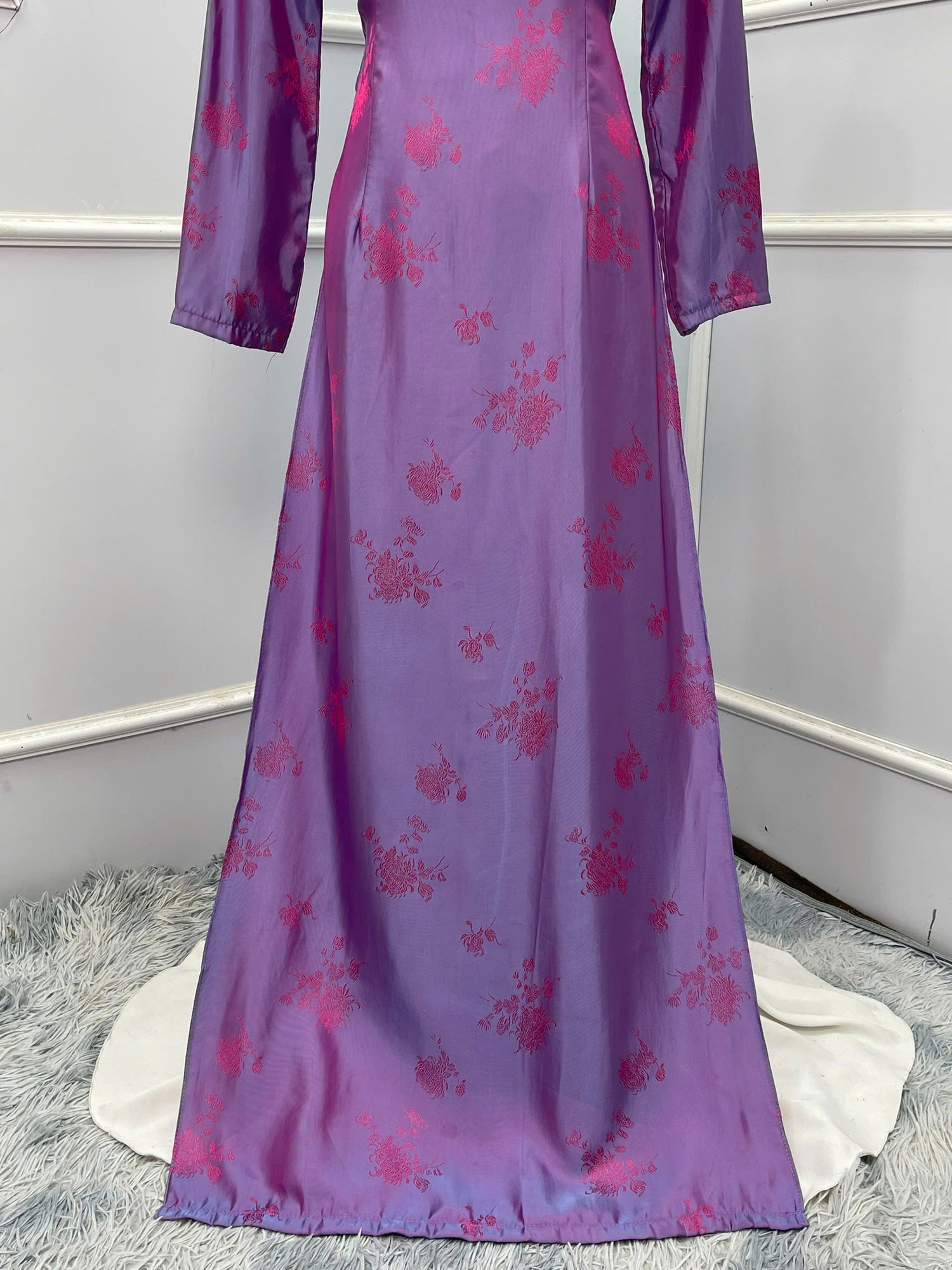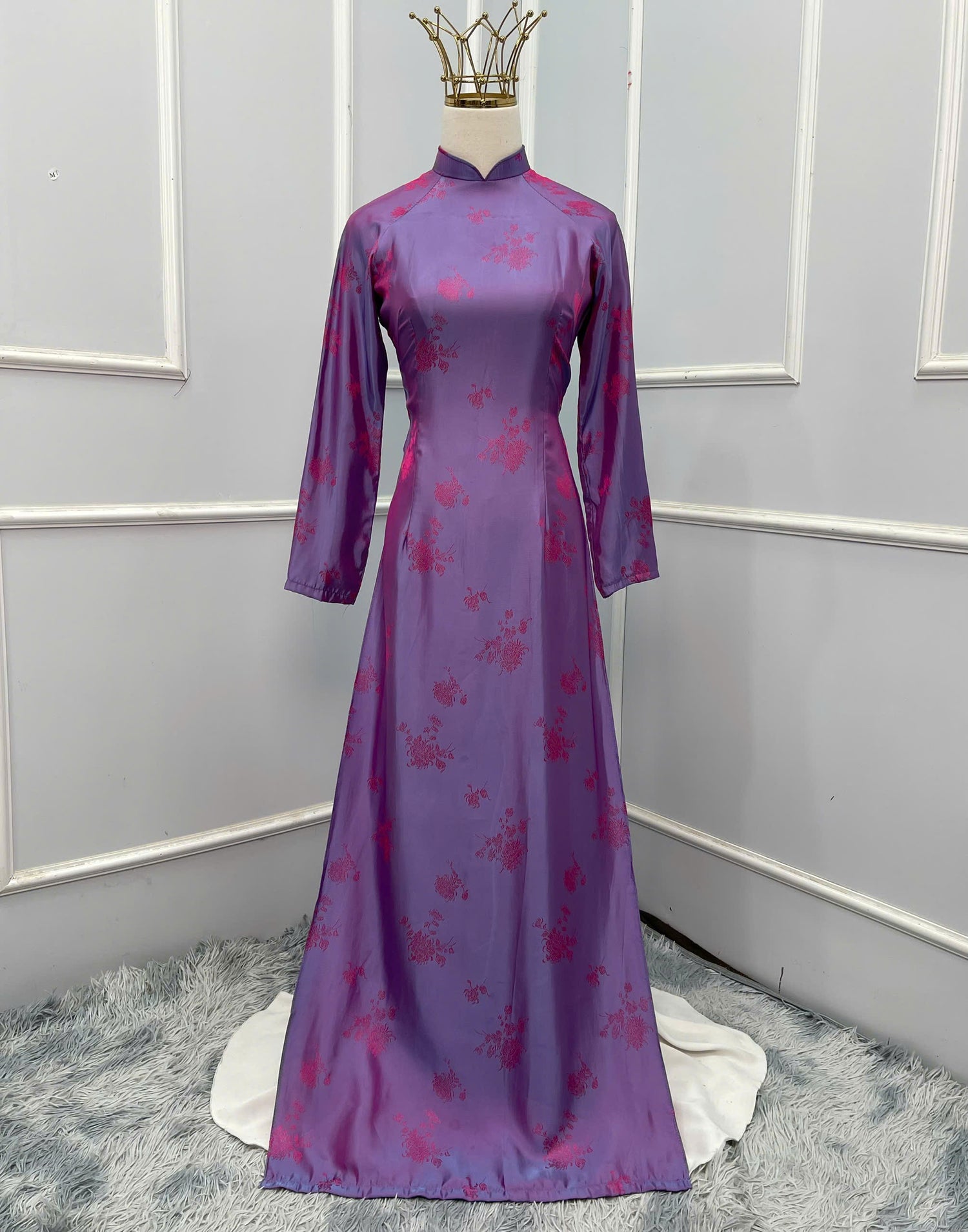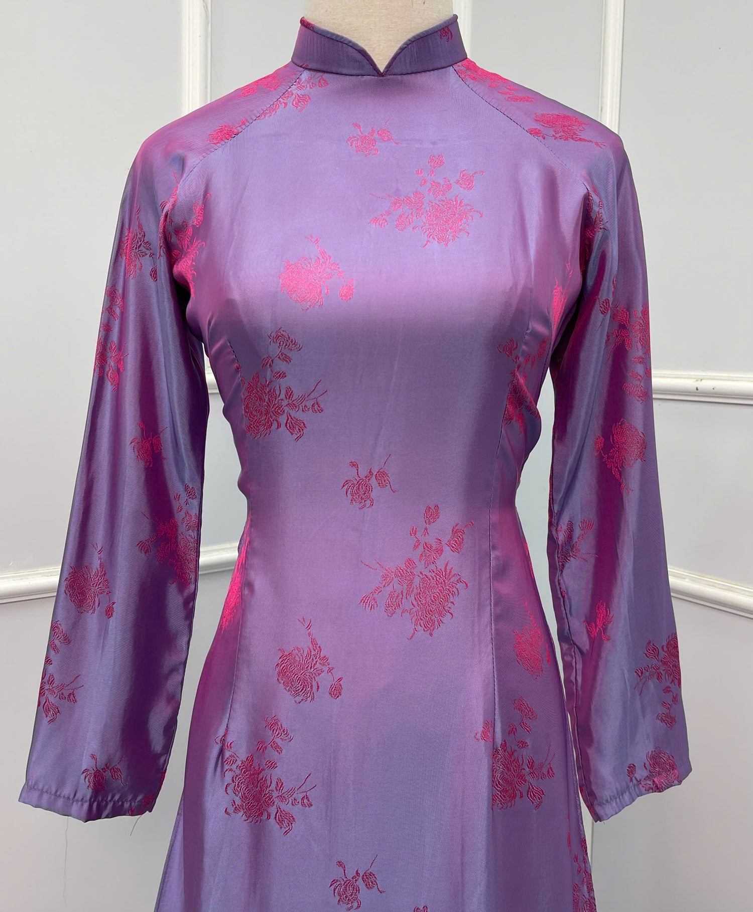 H273 1464 Áo only - Áo dài tơ tằm 2 da tím ánh hồng