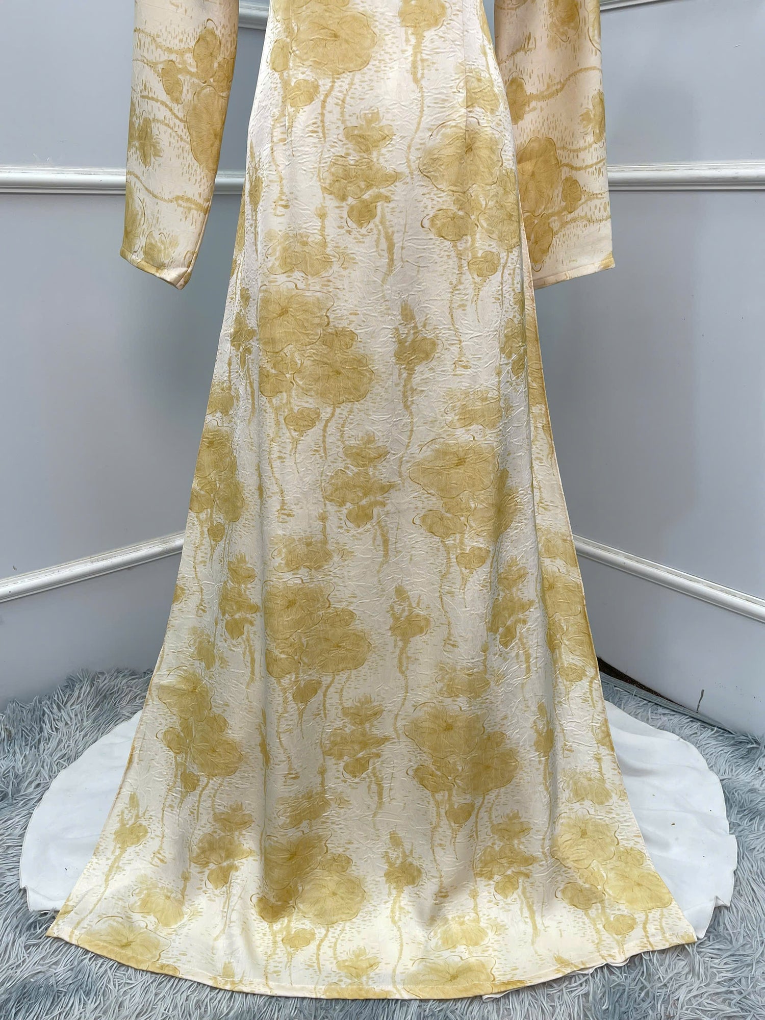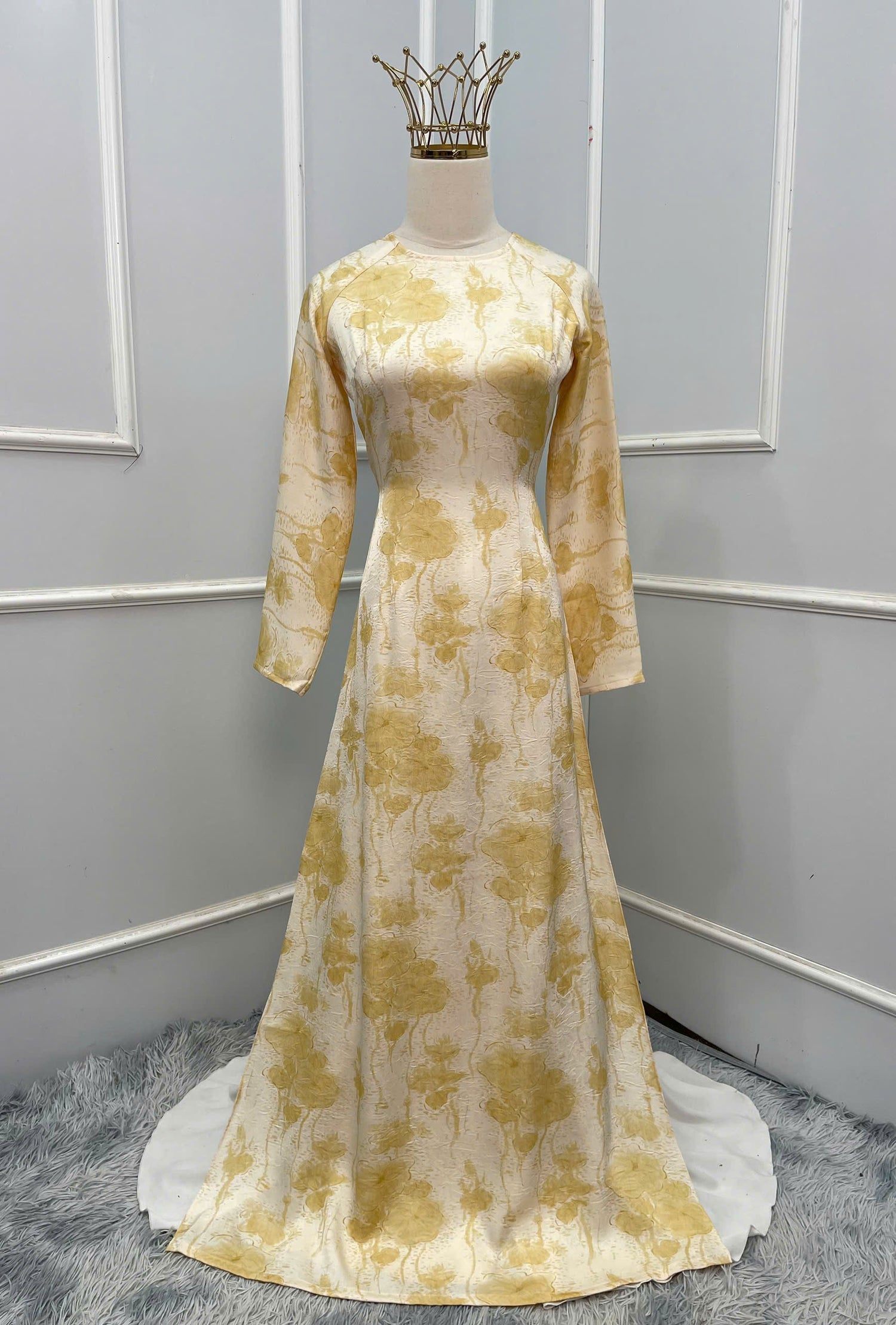 H278 1469 Áo only - Áo dài lụa vạn lý trường thành màu vàng