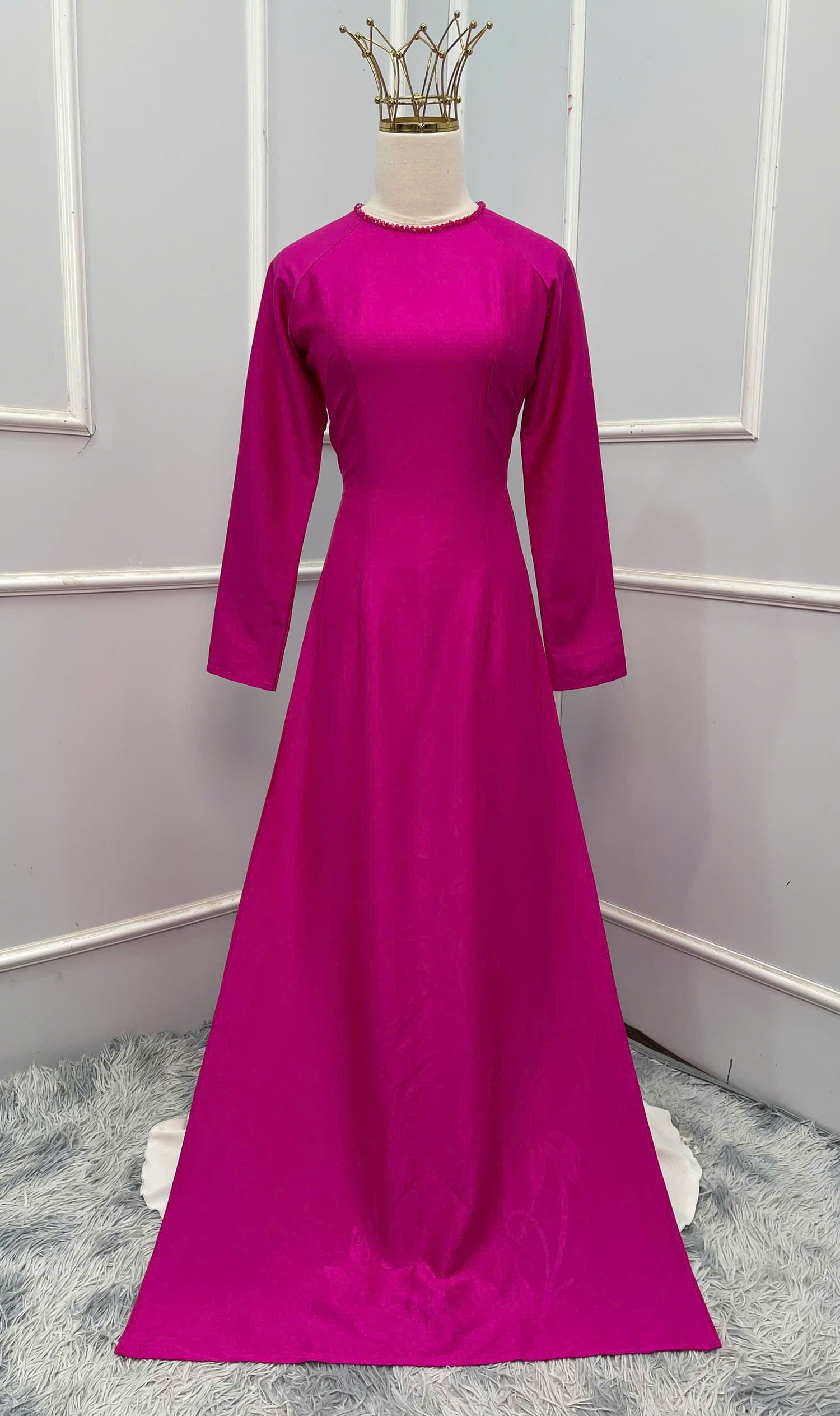H281 1472 Áo only - Áo dài lụa ánh sao 4D đính kết cổ