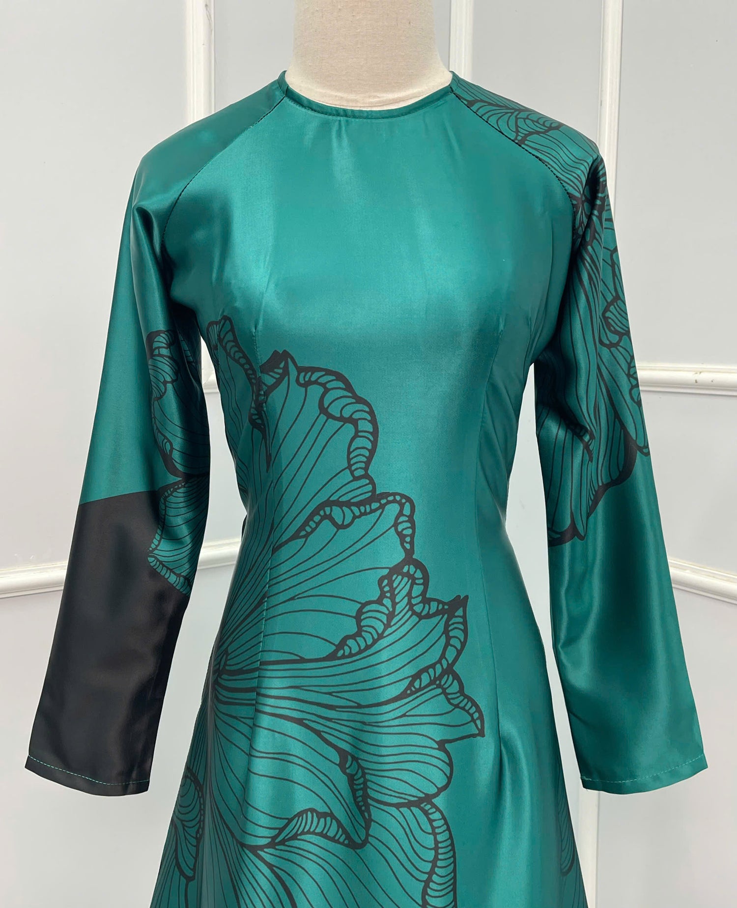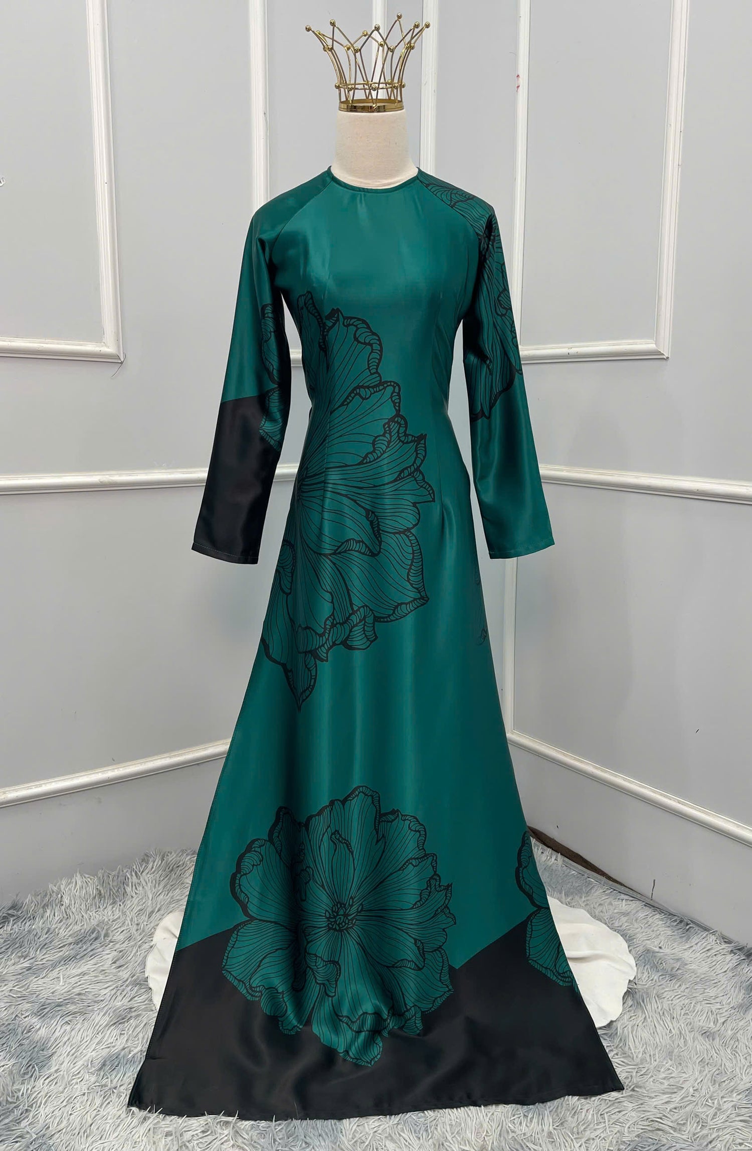 H286 Áo only - Áo dài lụa ánh sao thiết kế màu xanh két