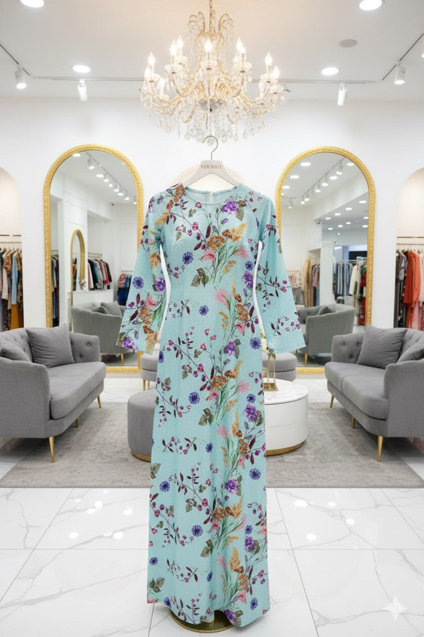 H289 1480 Áo only - Áo dài lụa gấm in 3D