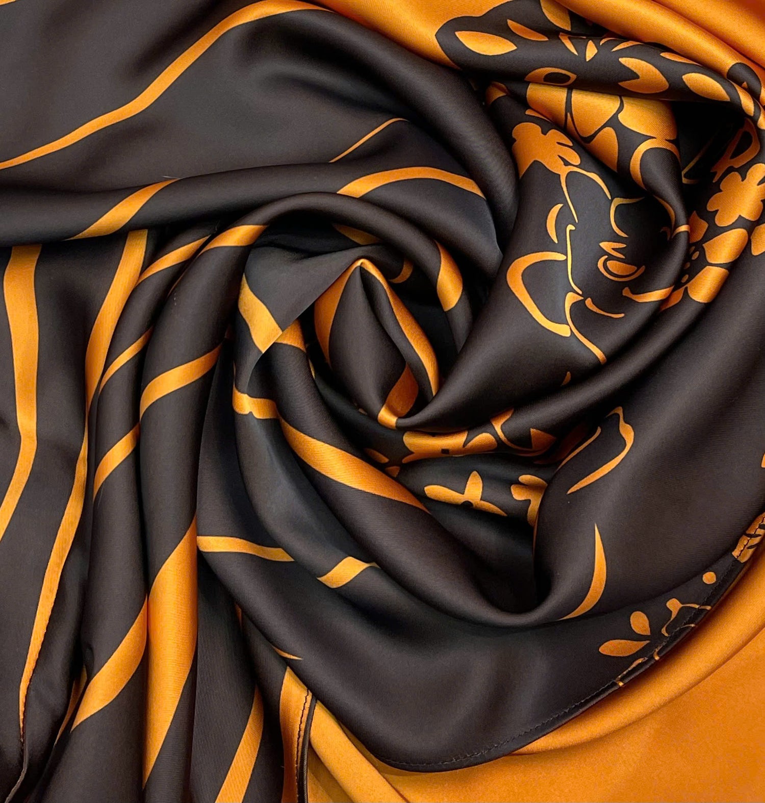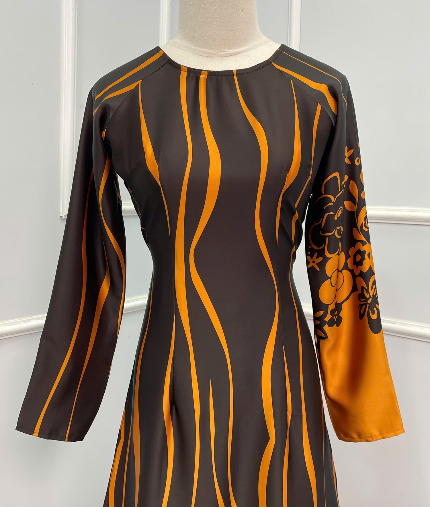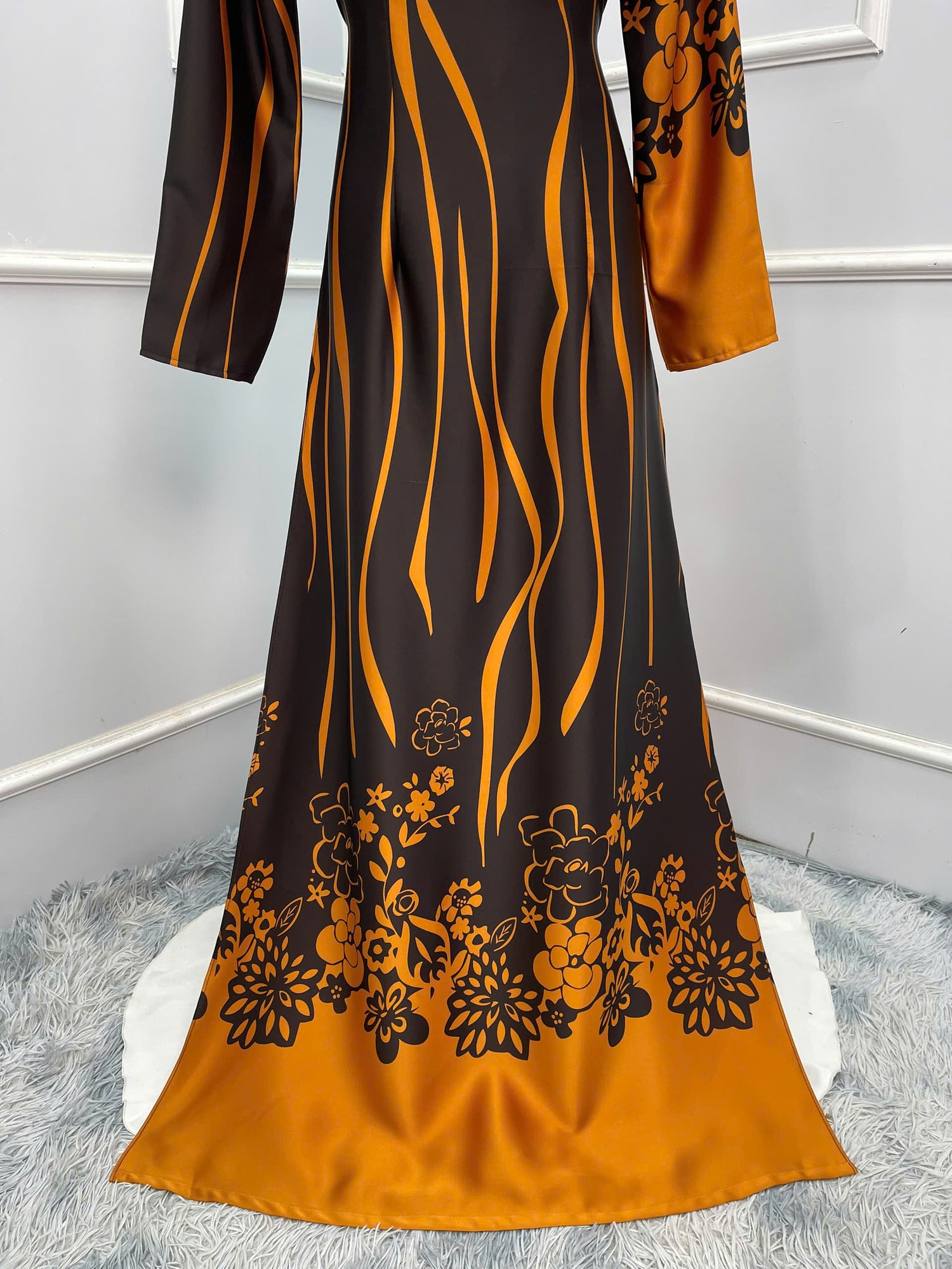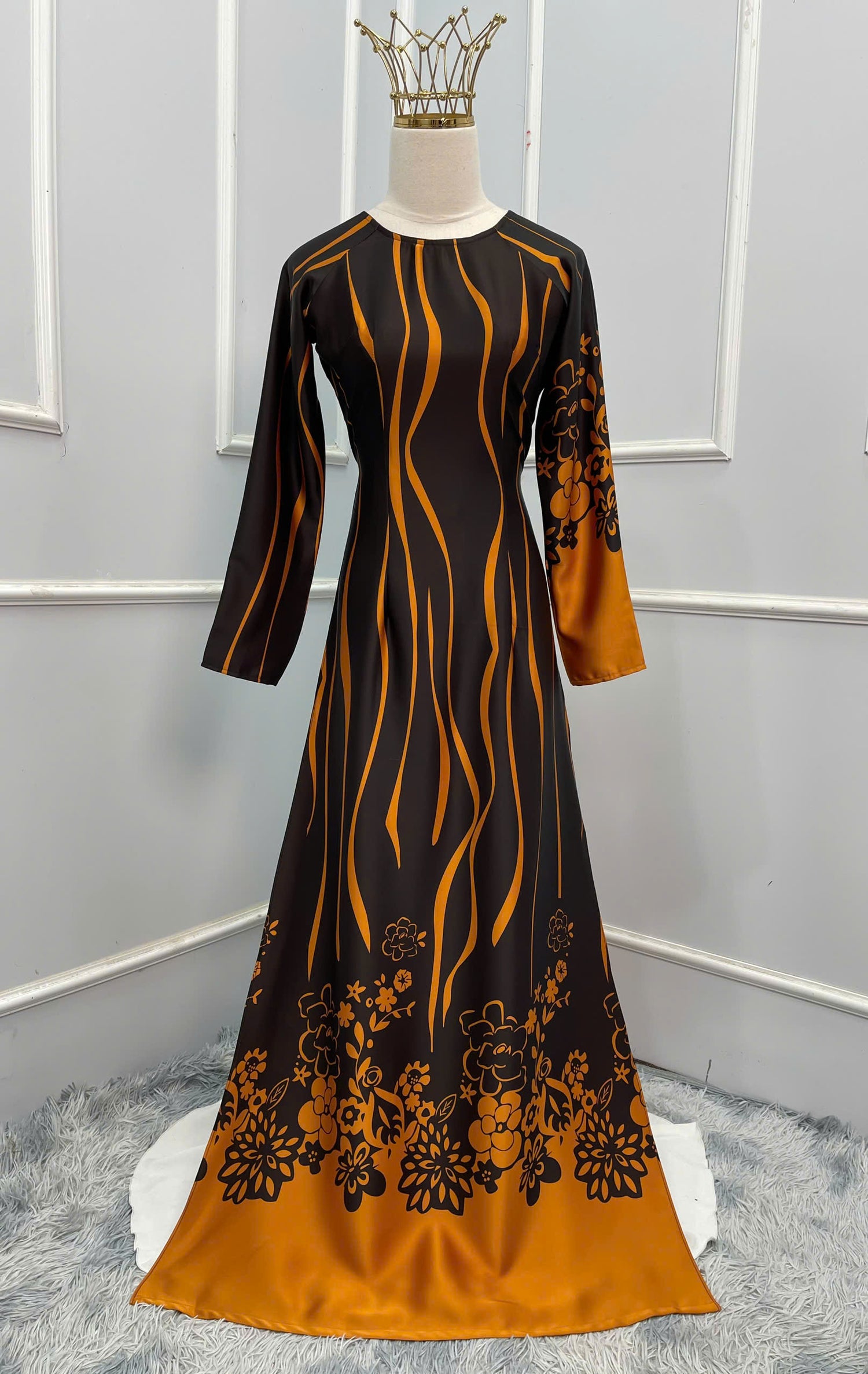 H307 1501 Áo only - Áo dài lụa ánh sao 2 da thiết kế màu đen cam