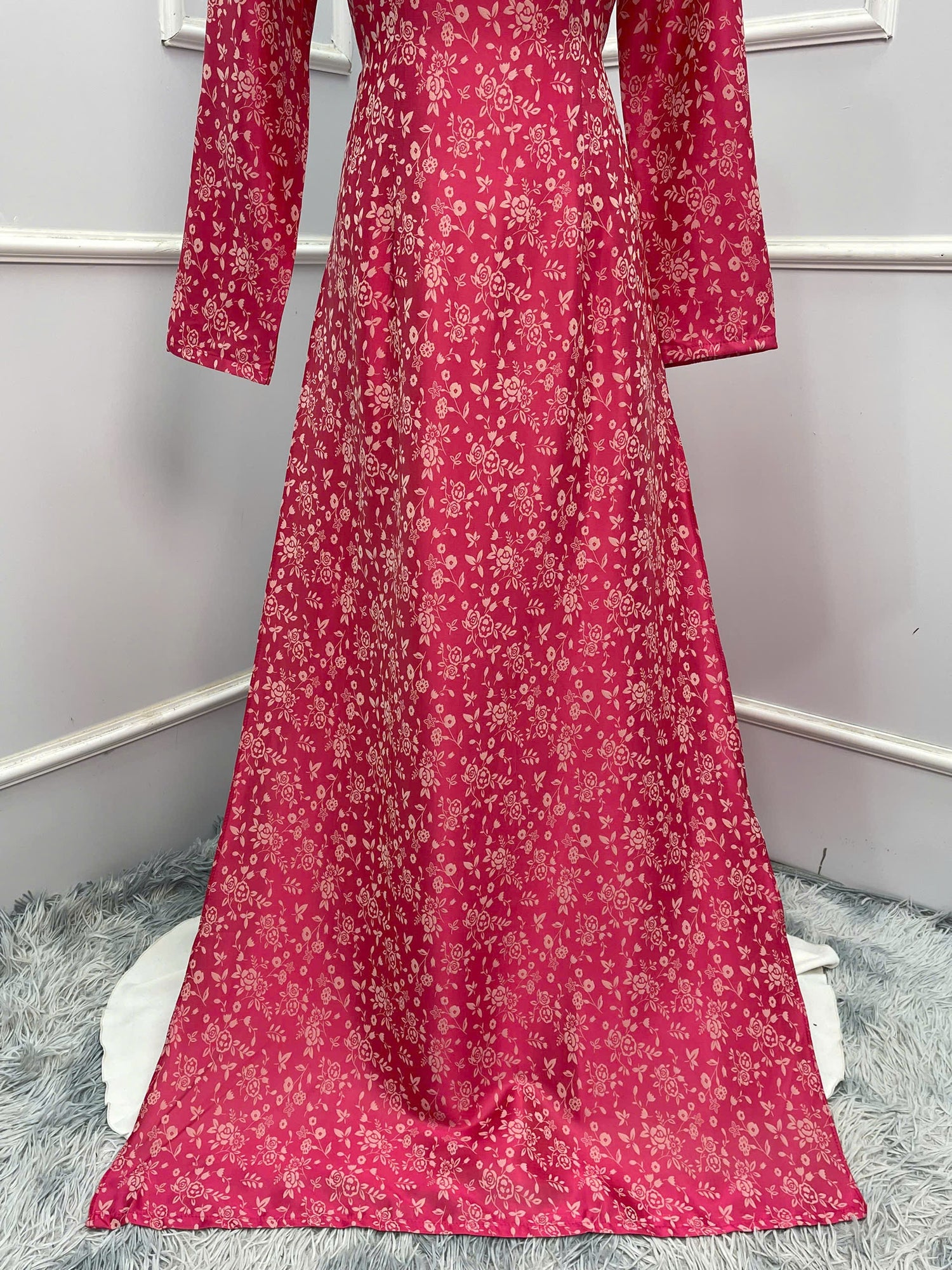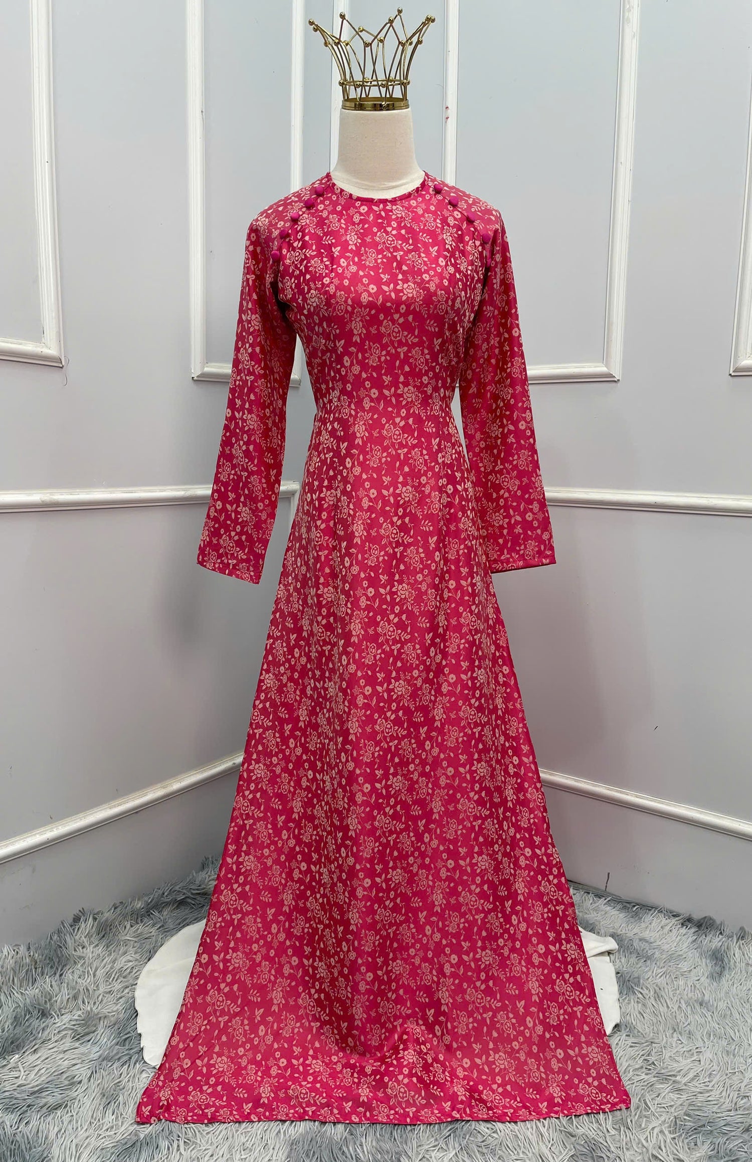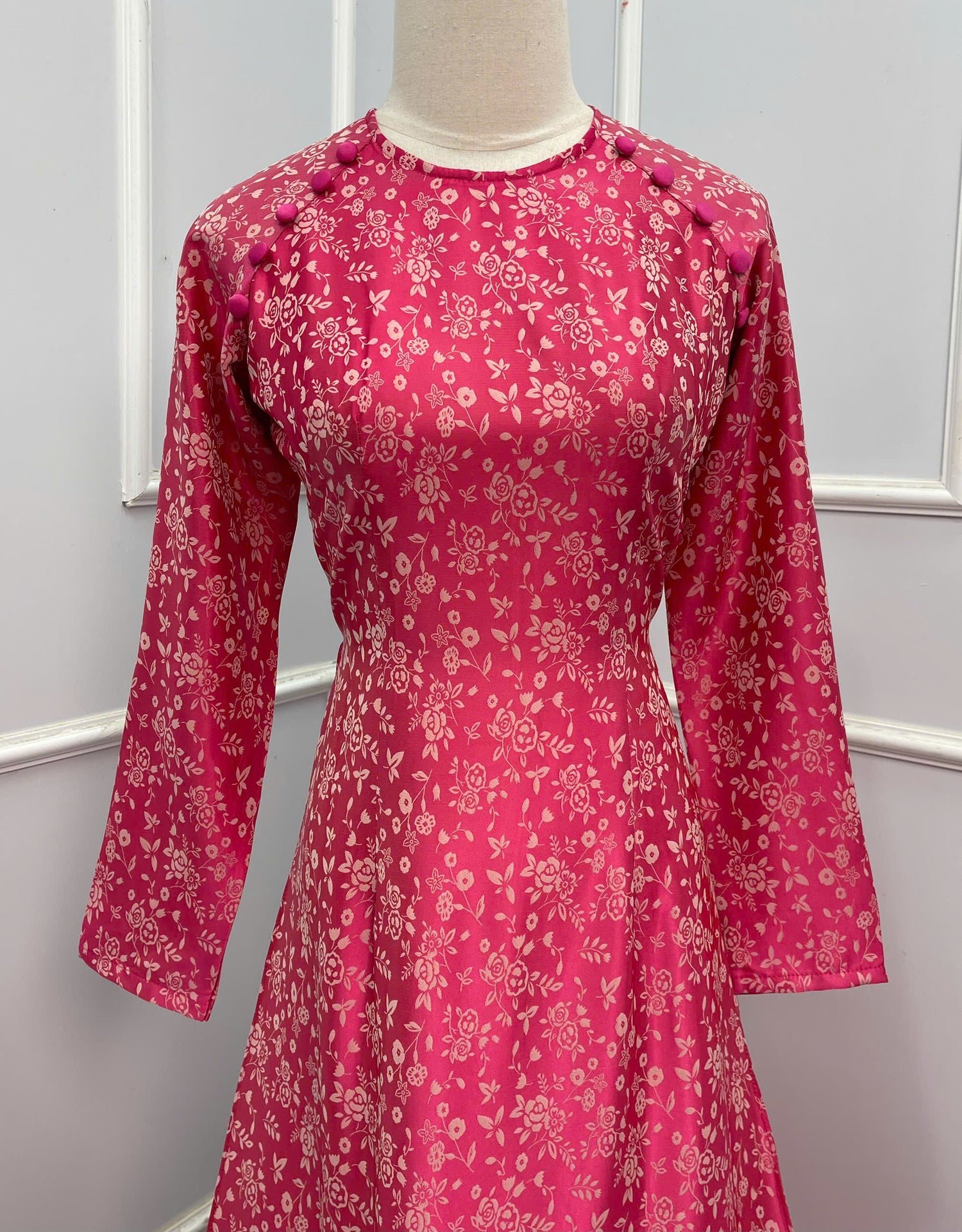 H314 1506 Áo only - Áo dài lụa 2 da đính cúc bọc màu hồng