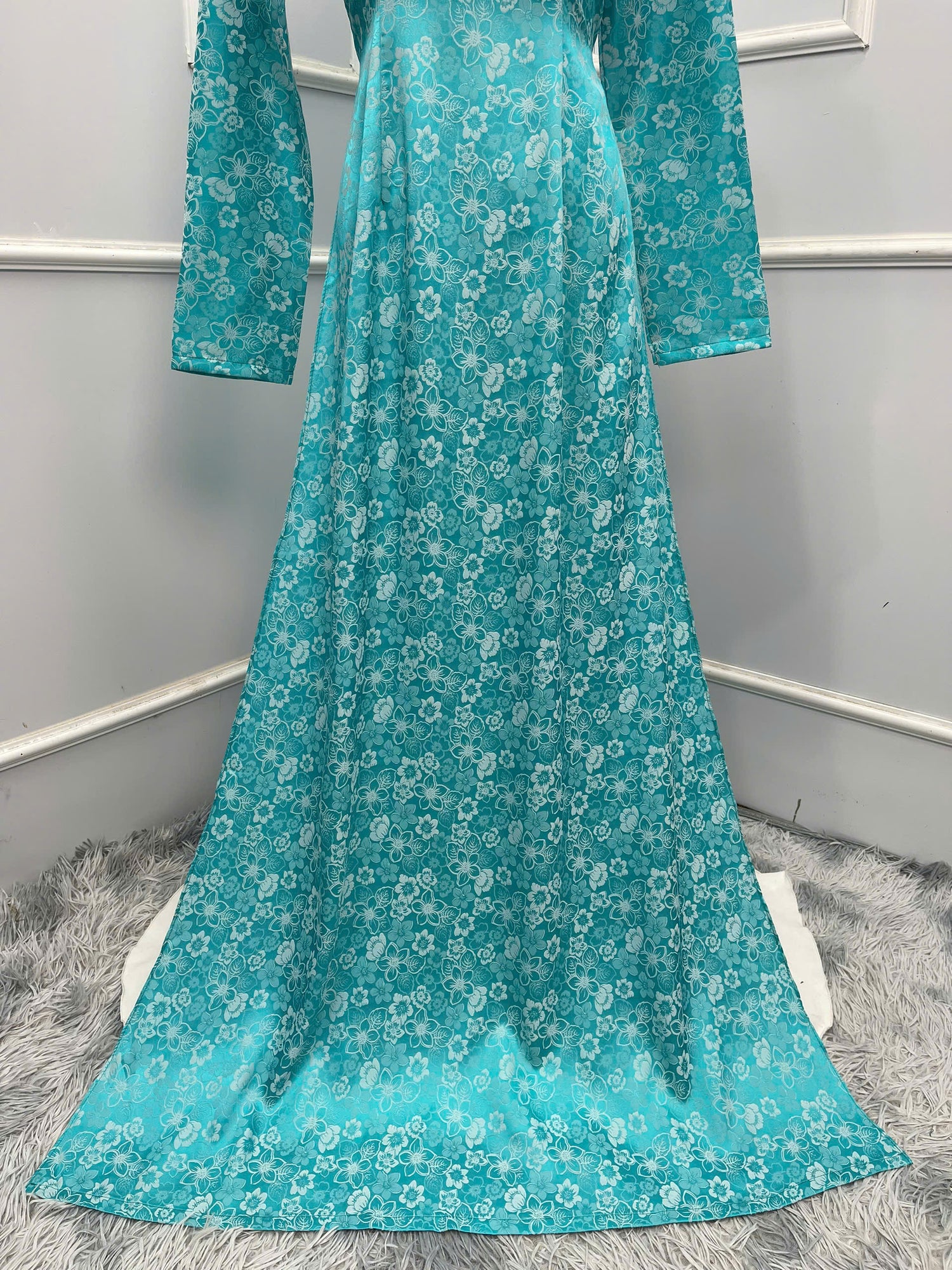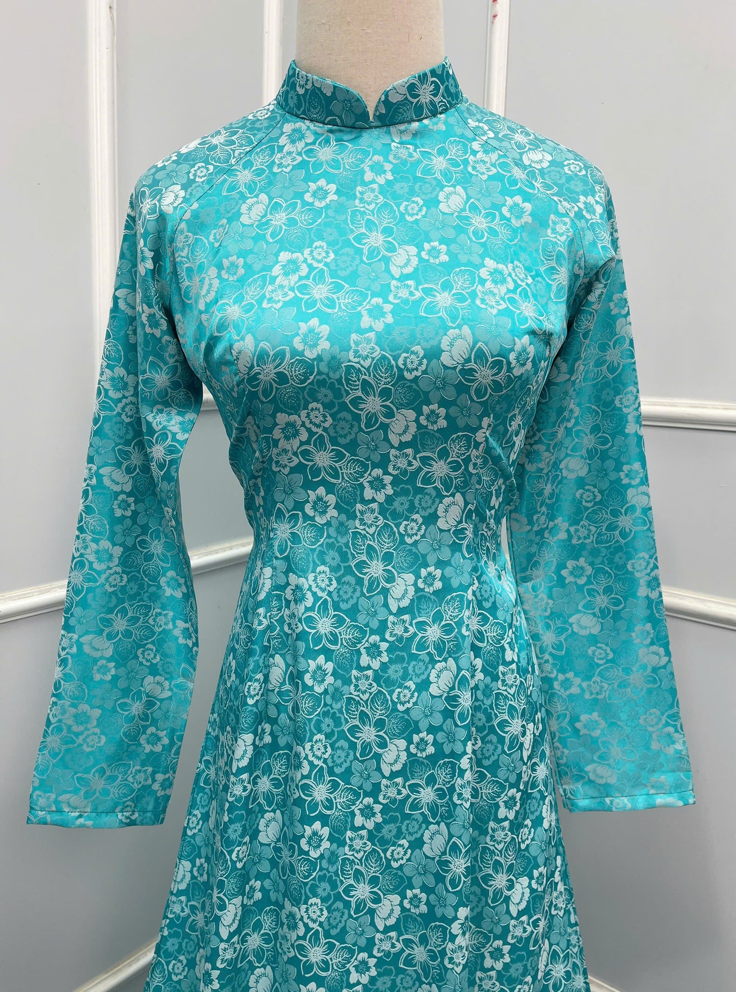 H315 1507 Áo only - Áo dài lụa 2 da màu xanh da trời