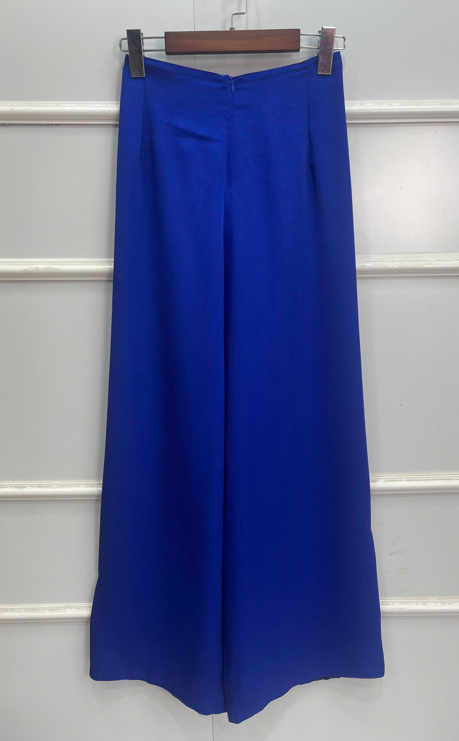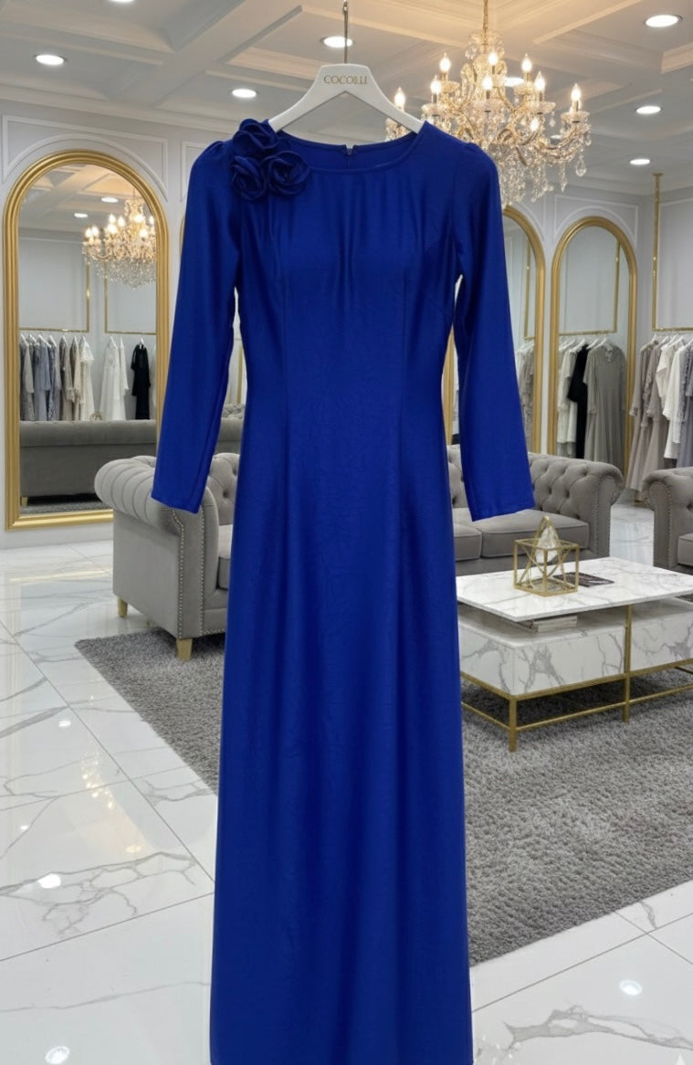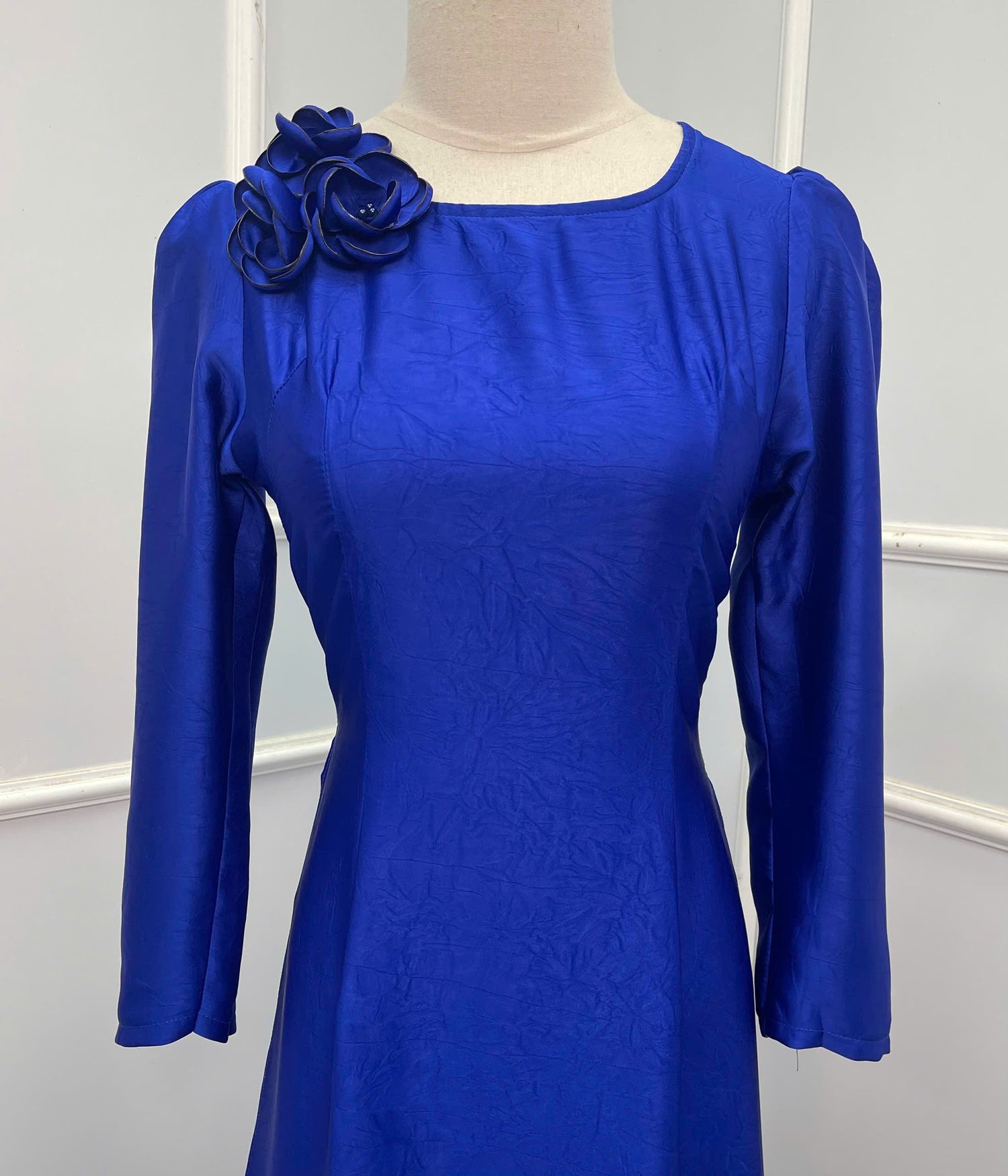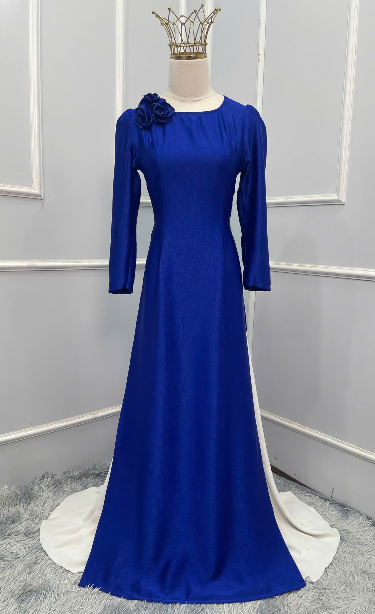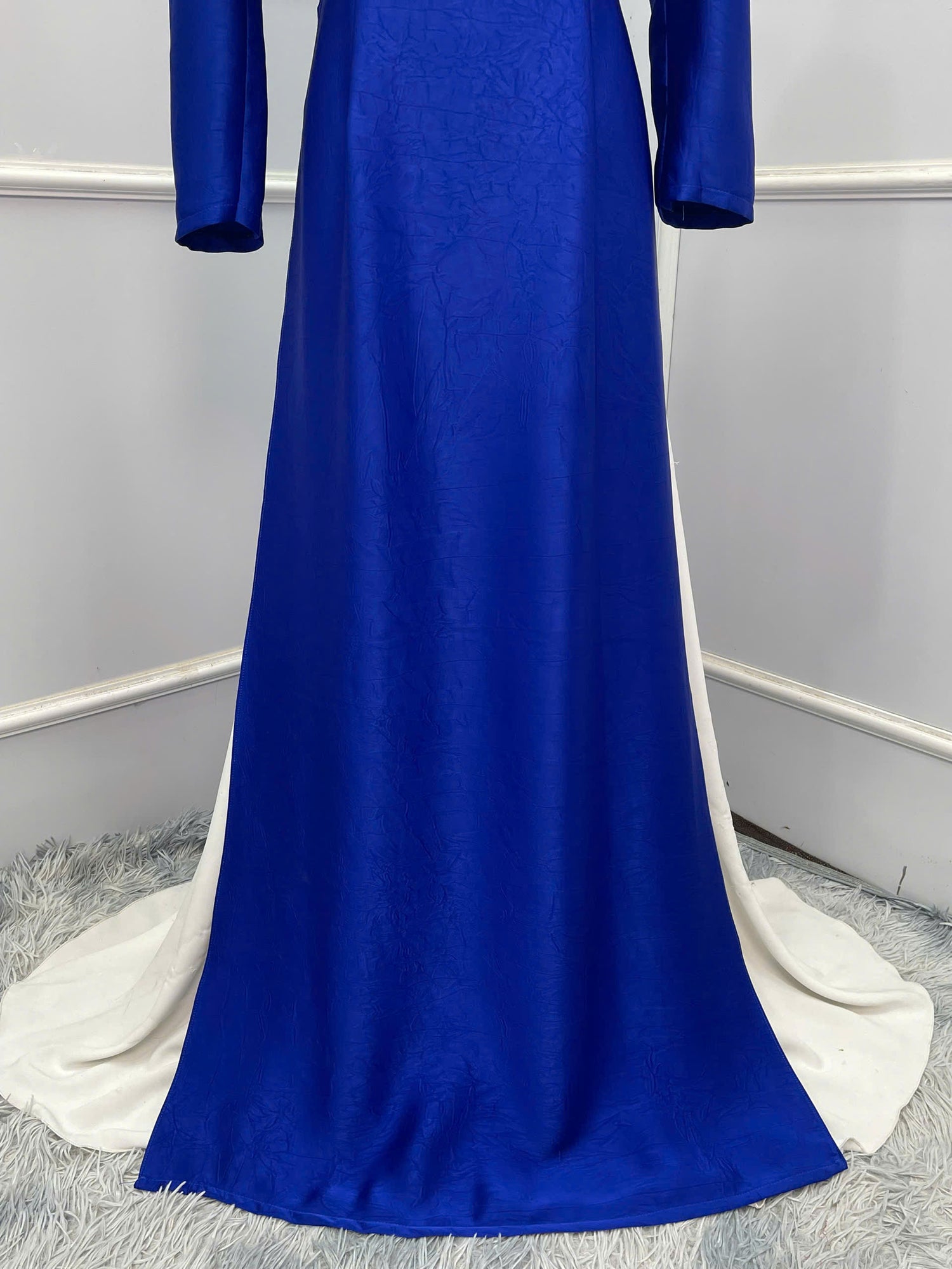 H318 1508 Áo + quần - Áo dài lụa hà lan đính hoa màu xanh coban