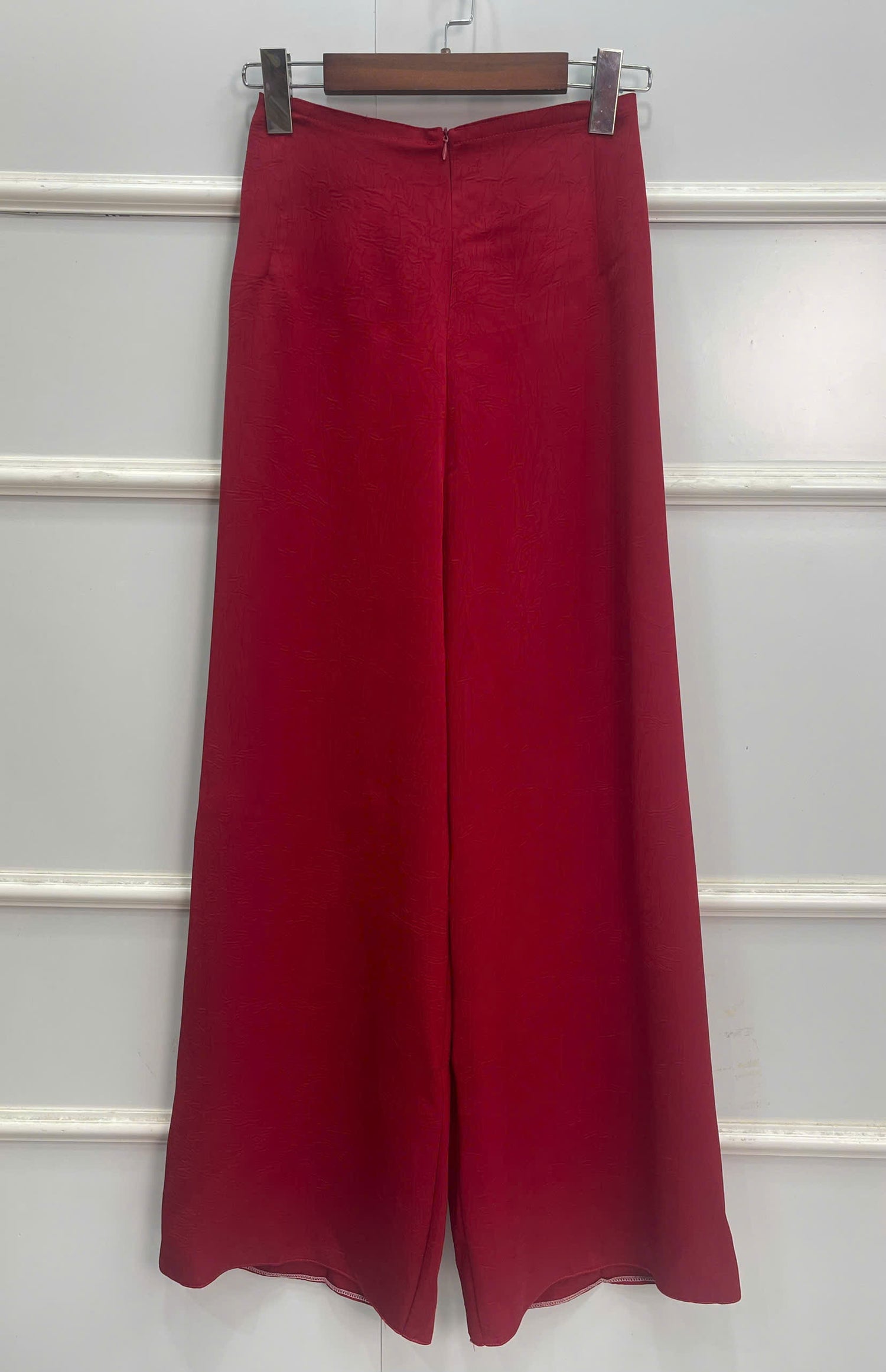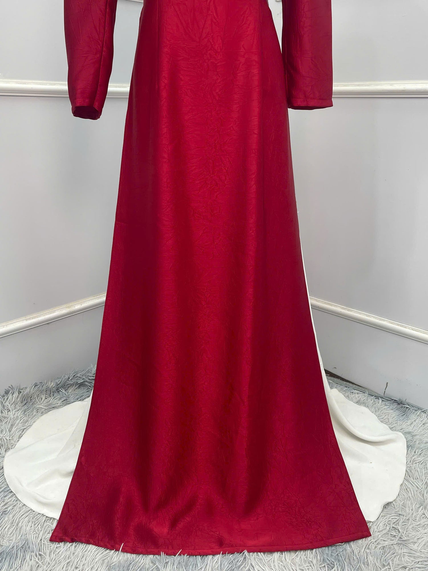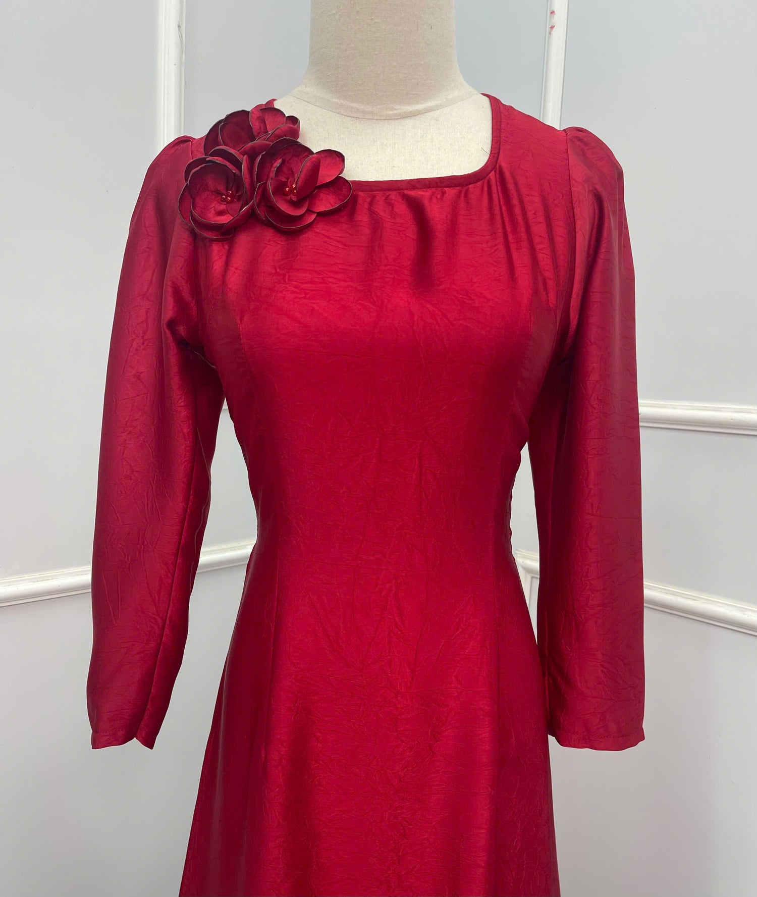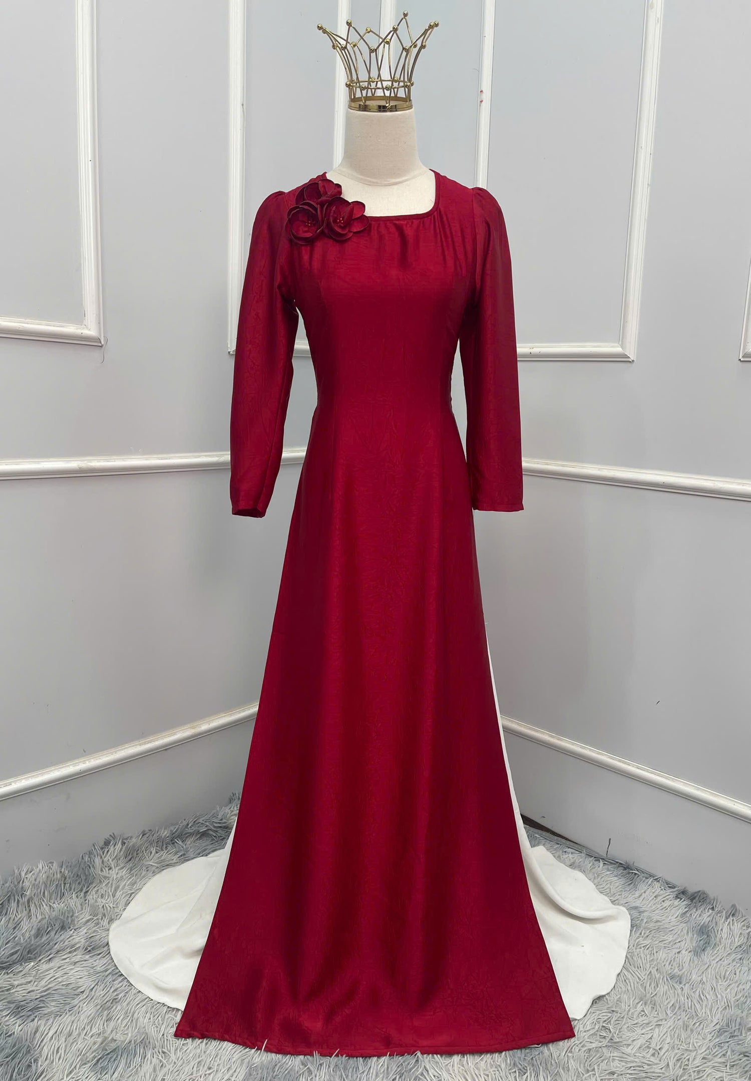 H319 1509 Áo + quần - Áo dài lụa hà lan đính hoa màu đỏ đậm