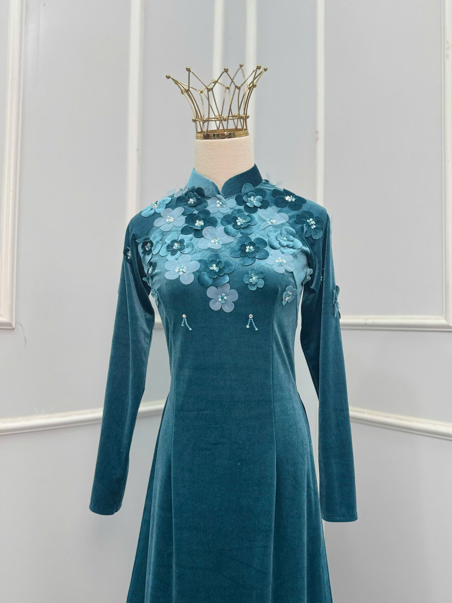 H321 Áo only - Áo dài nhung đính hoa nổi