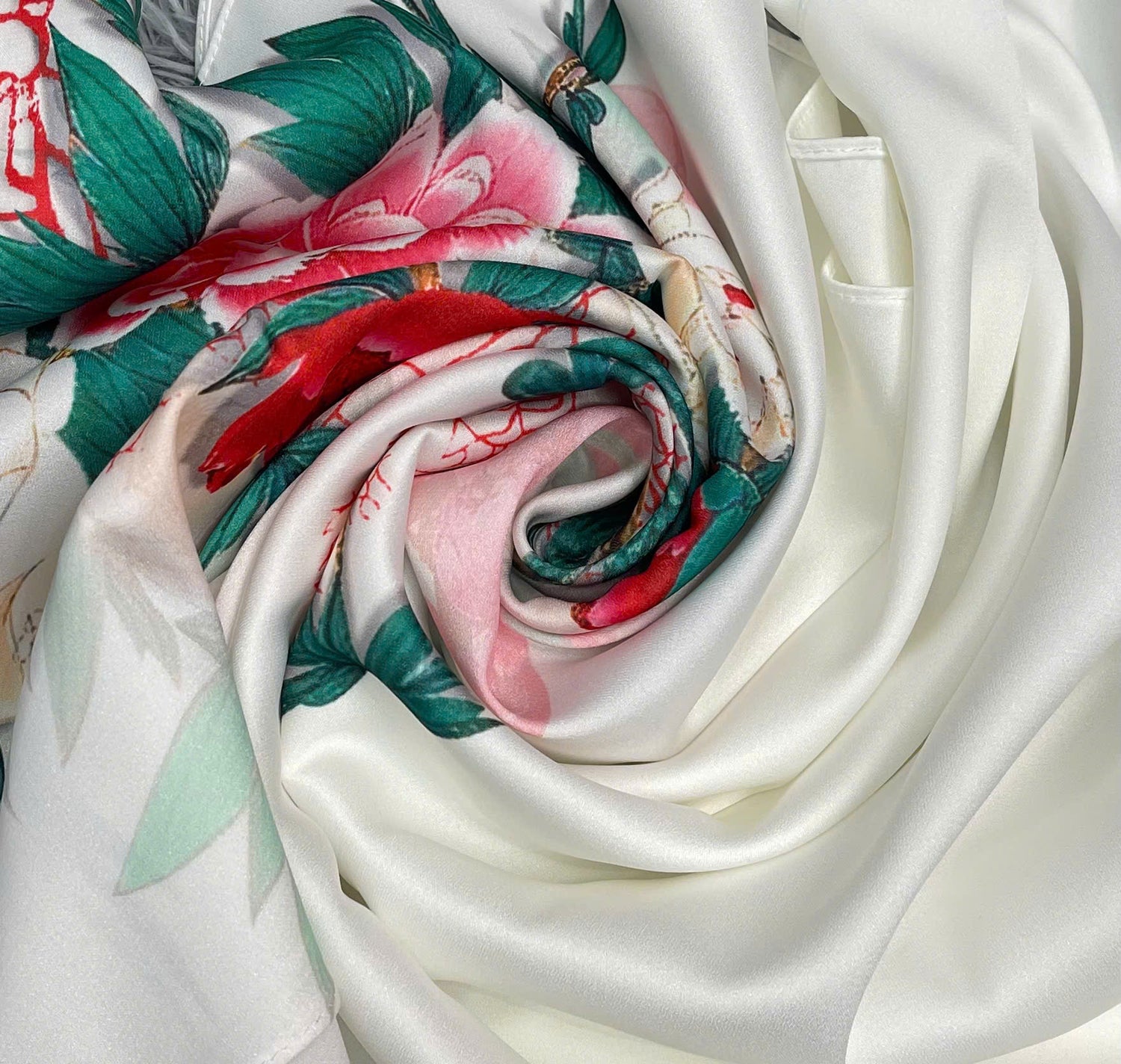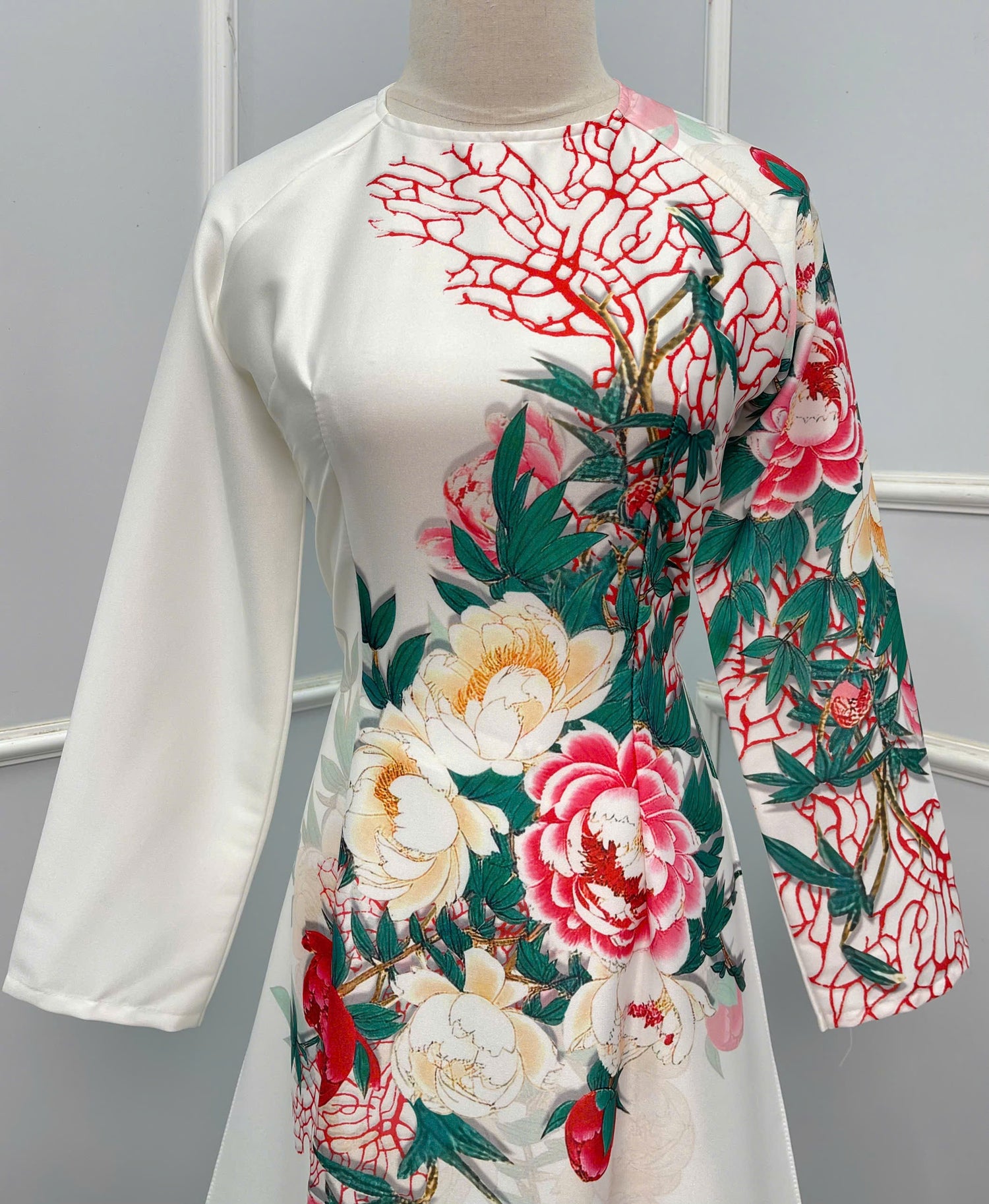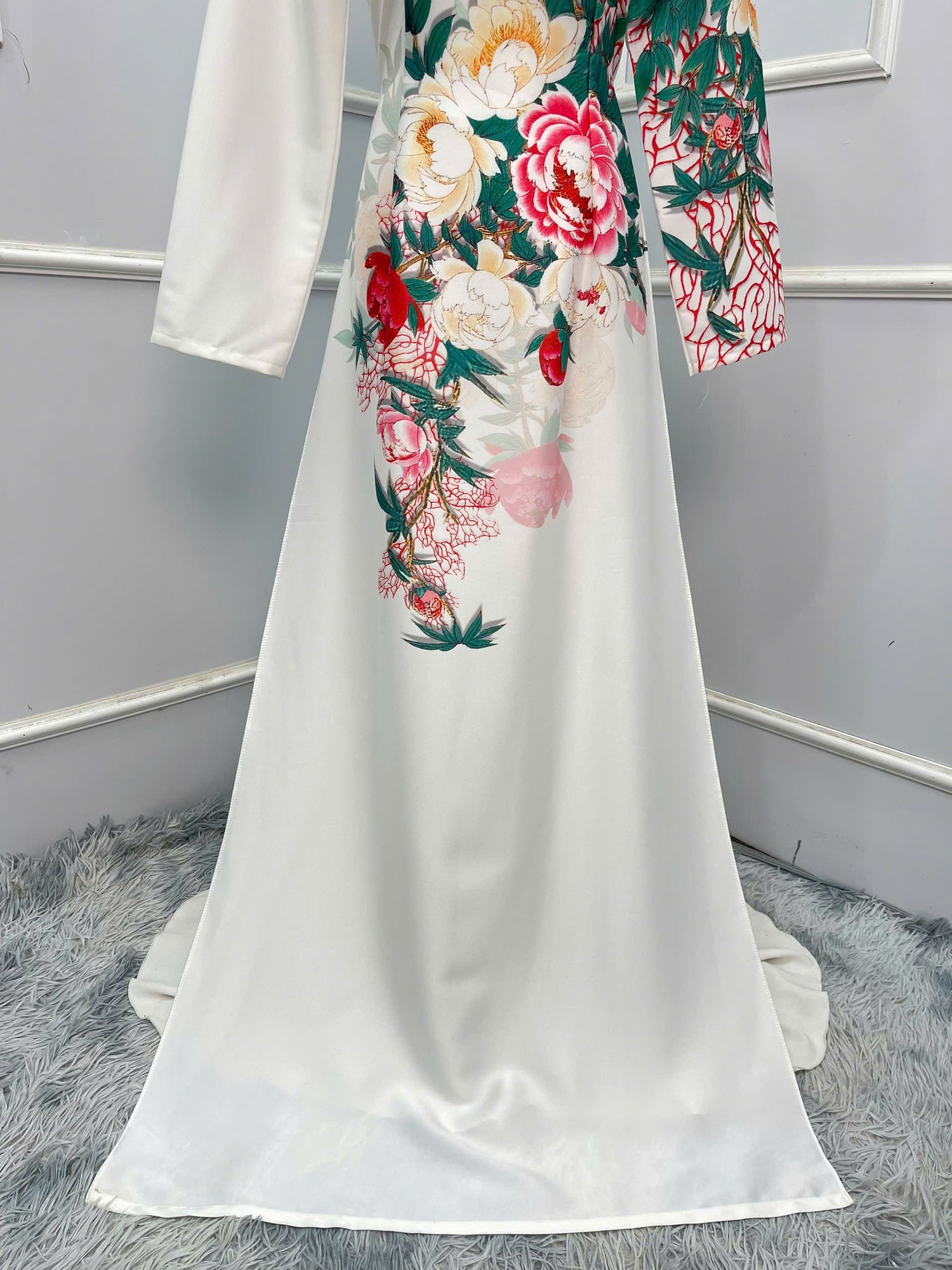 H391 1685 Áo only - Áo dài lụa ánh sao thiết kế hoa trắng