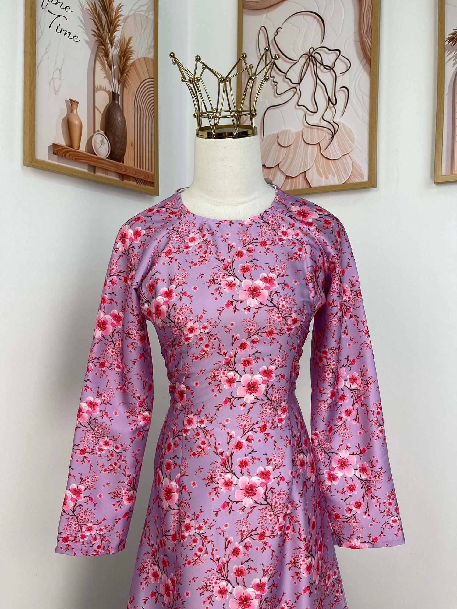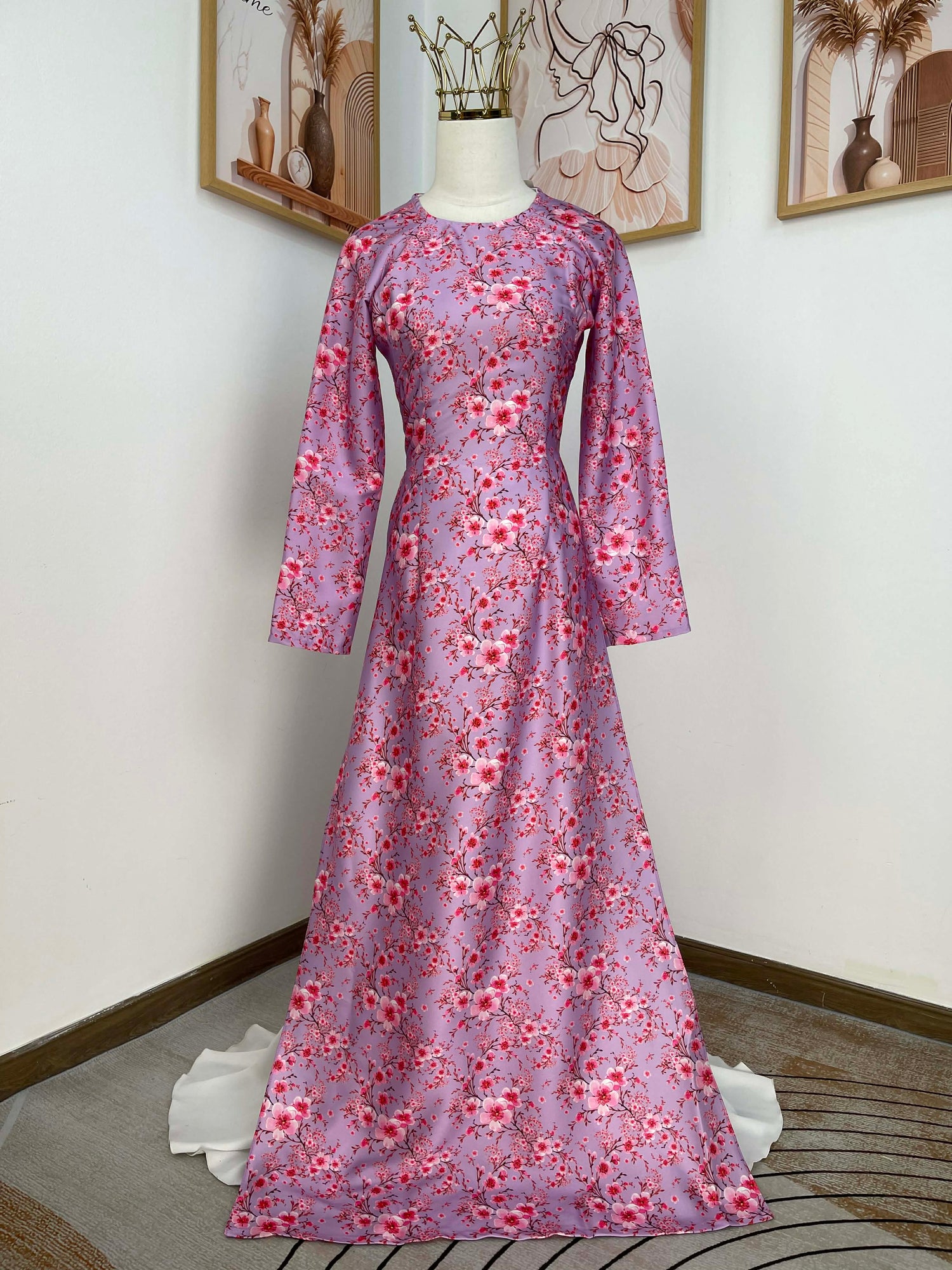 H422 1770 Áo only - Áo dài lụa kim sa phú quý hoa đào