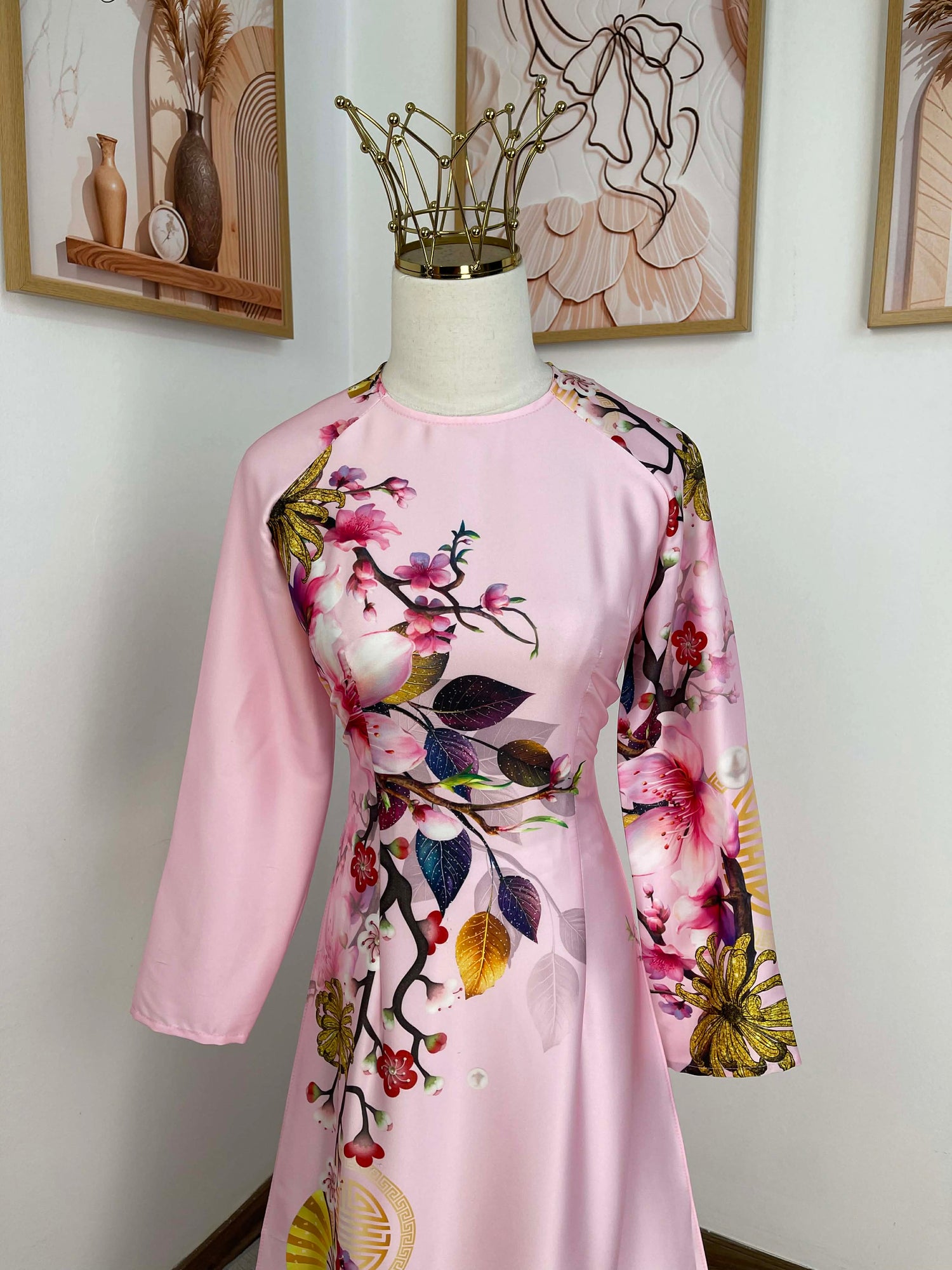H424 1771 Áo only - Áo dài lụa kim sa phú quý màu hồng